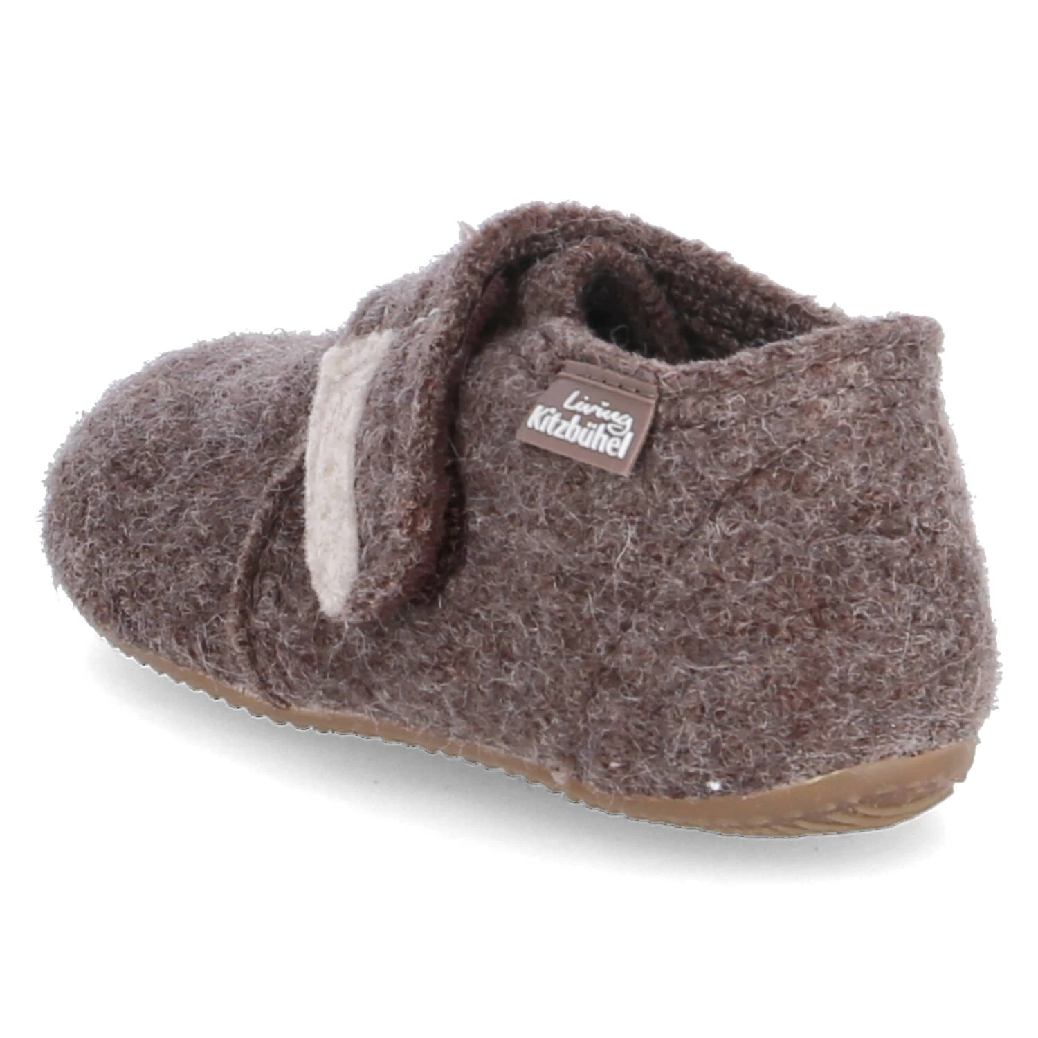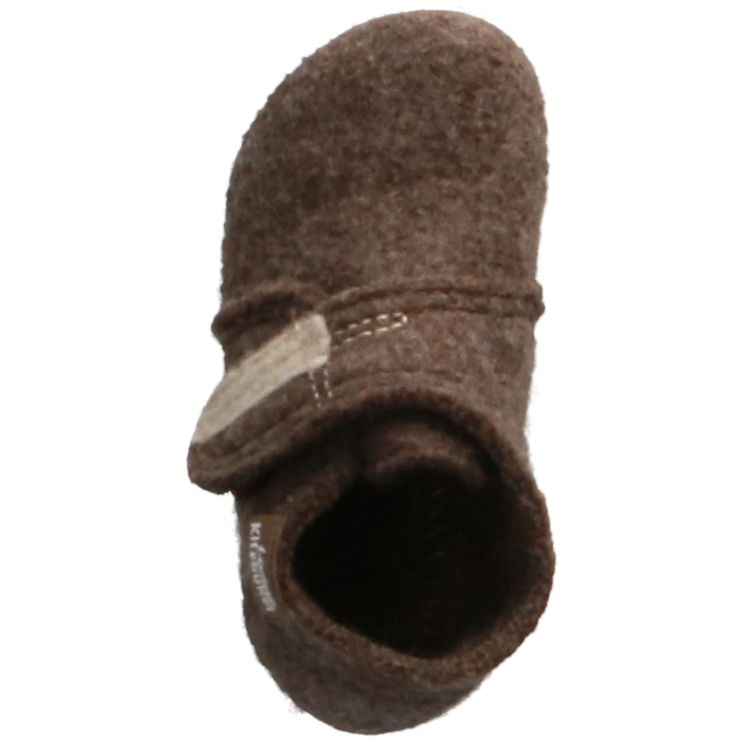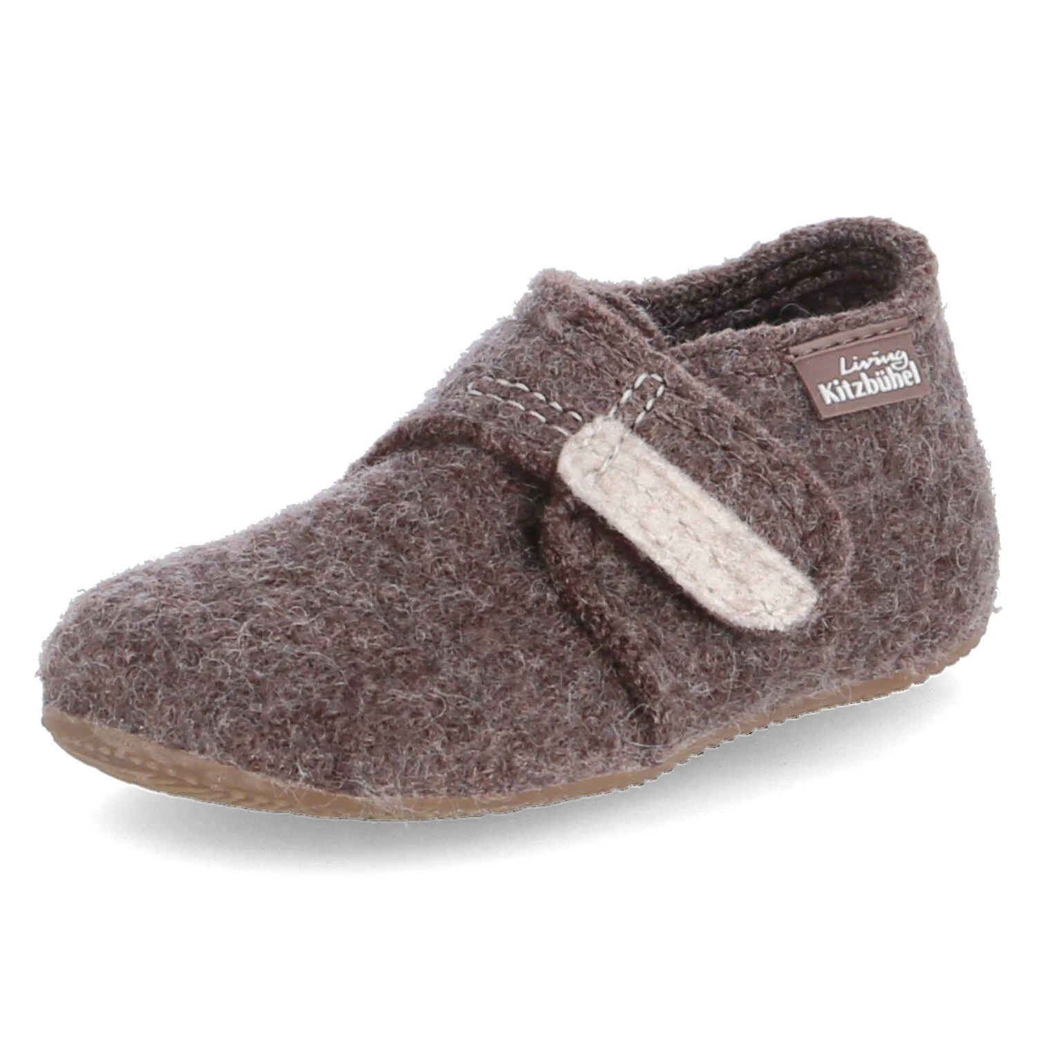 Living Kitzbühel Kinder Hausschuhe Braun Filz – praktischer Klettverschluss – Logo Aufnäher auf der Außenseite – flexible und ultraleichte Laufsohle mit rutschhemmenden Eigenschaften