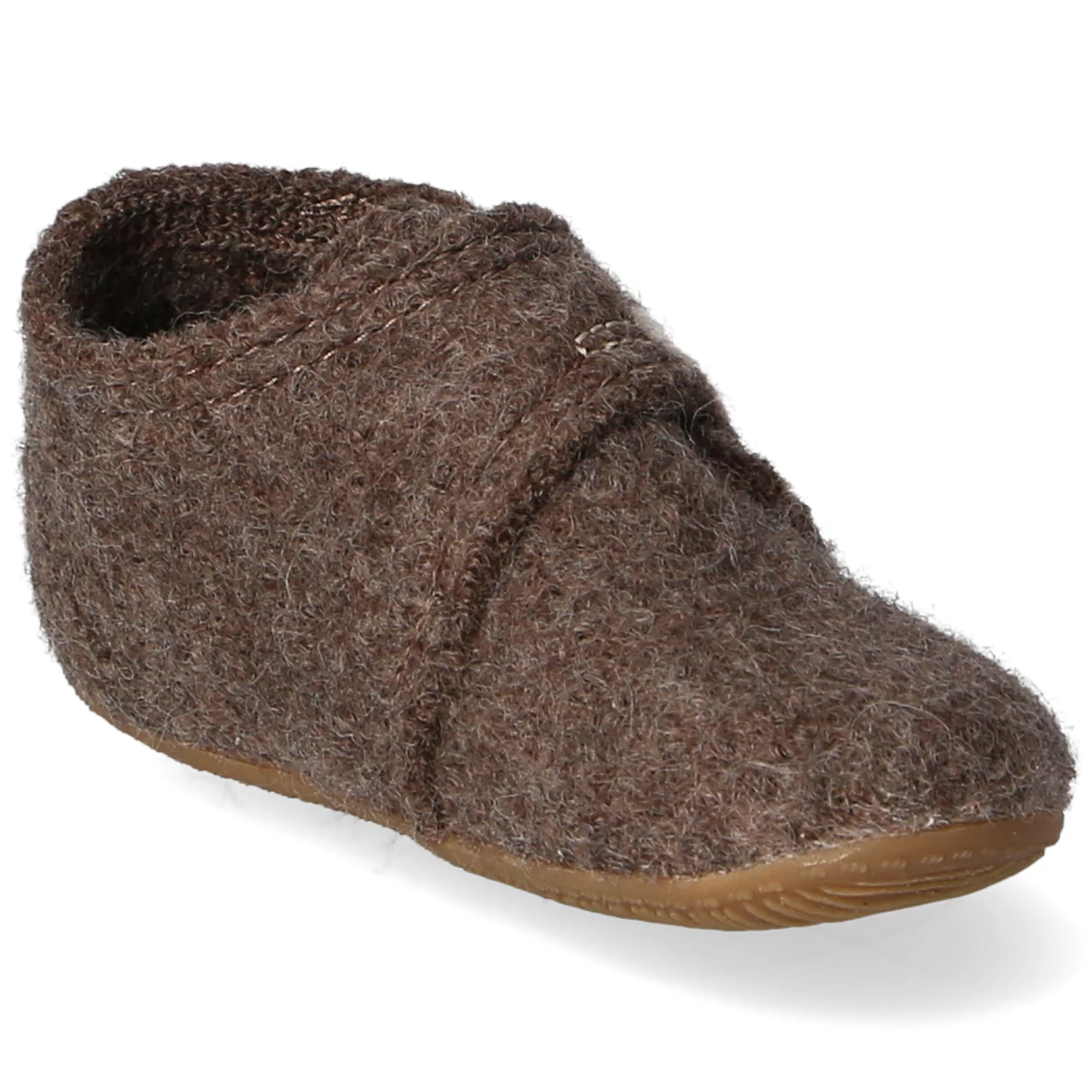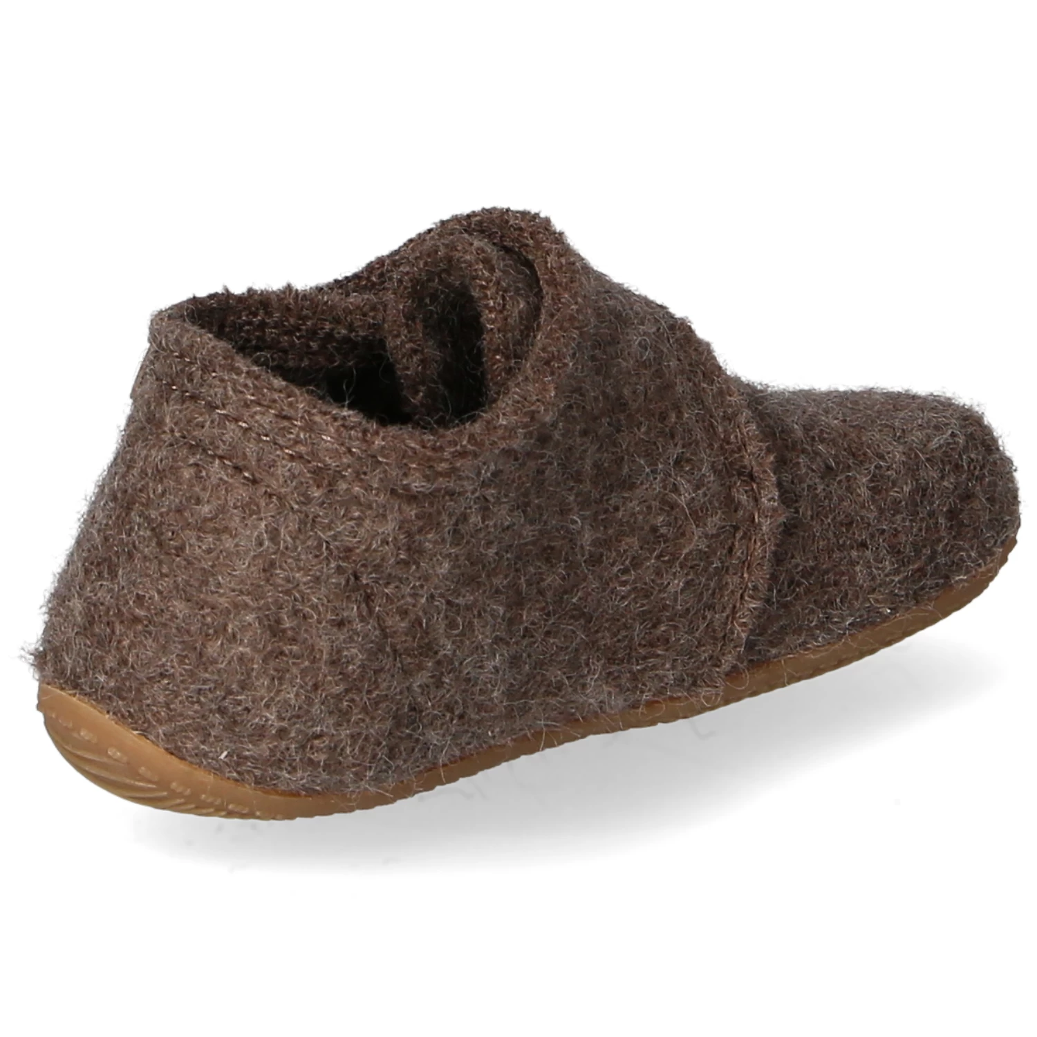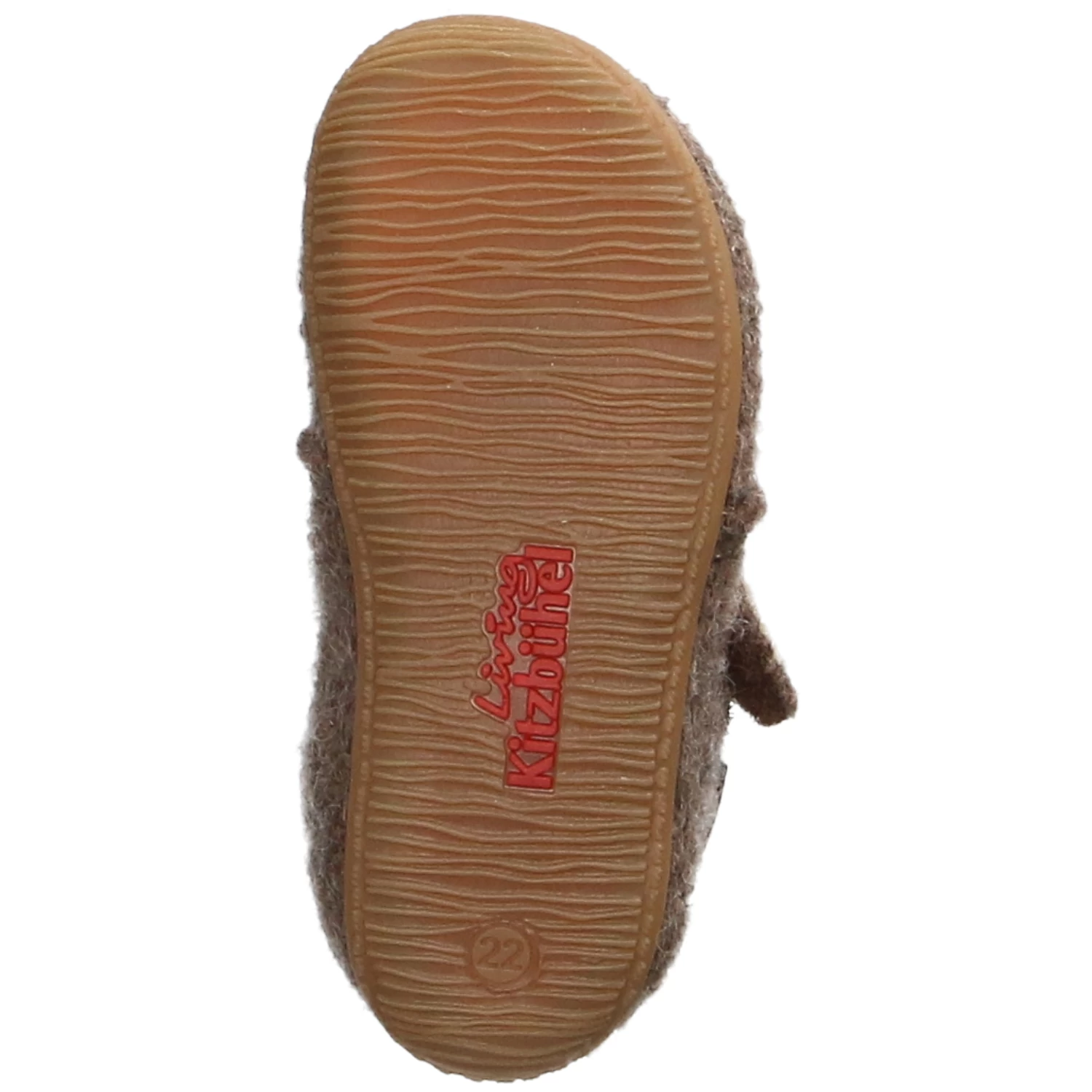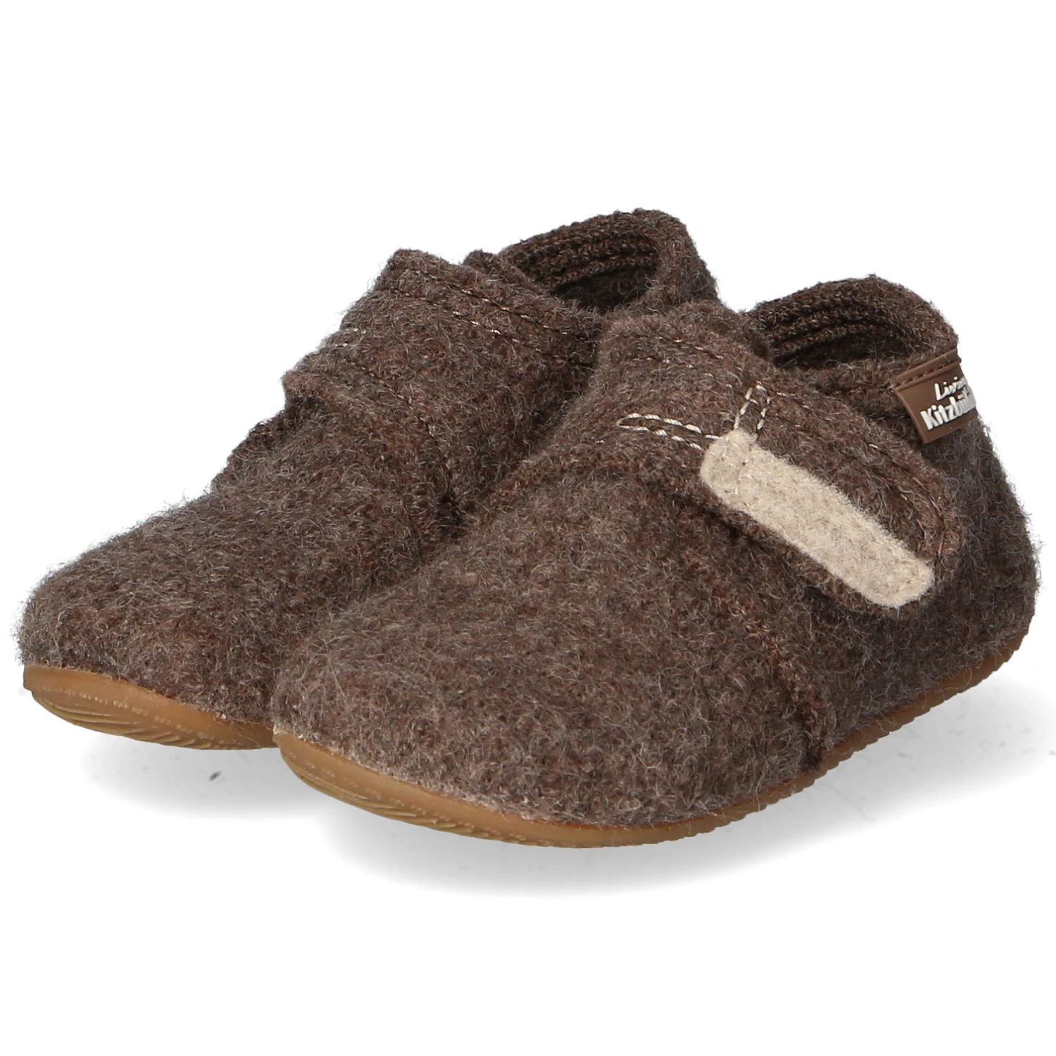 Living Kitzbühel Kinder Hausschuhe Braun Filz – praktischer Klettverschluss – Logo Aufnäher auf der Außenseite – flexible und ultraleichte Laufsohle mit rutschhemmenden Eigenschaften