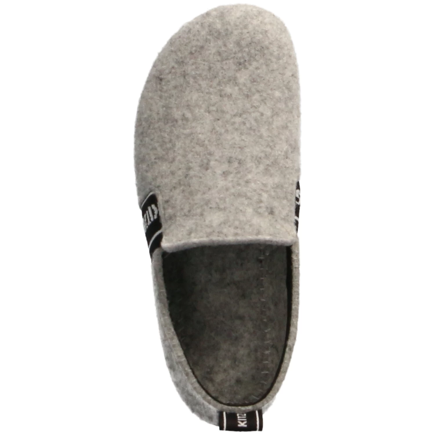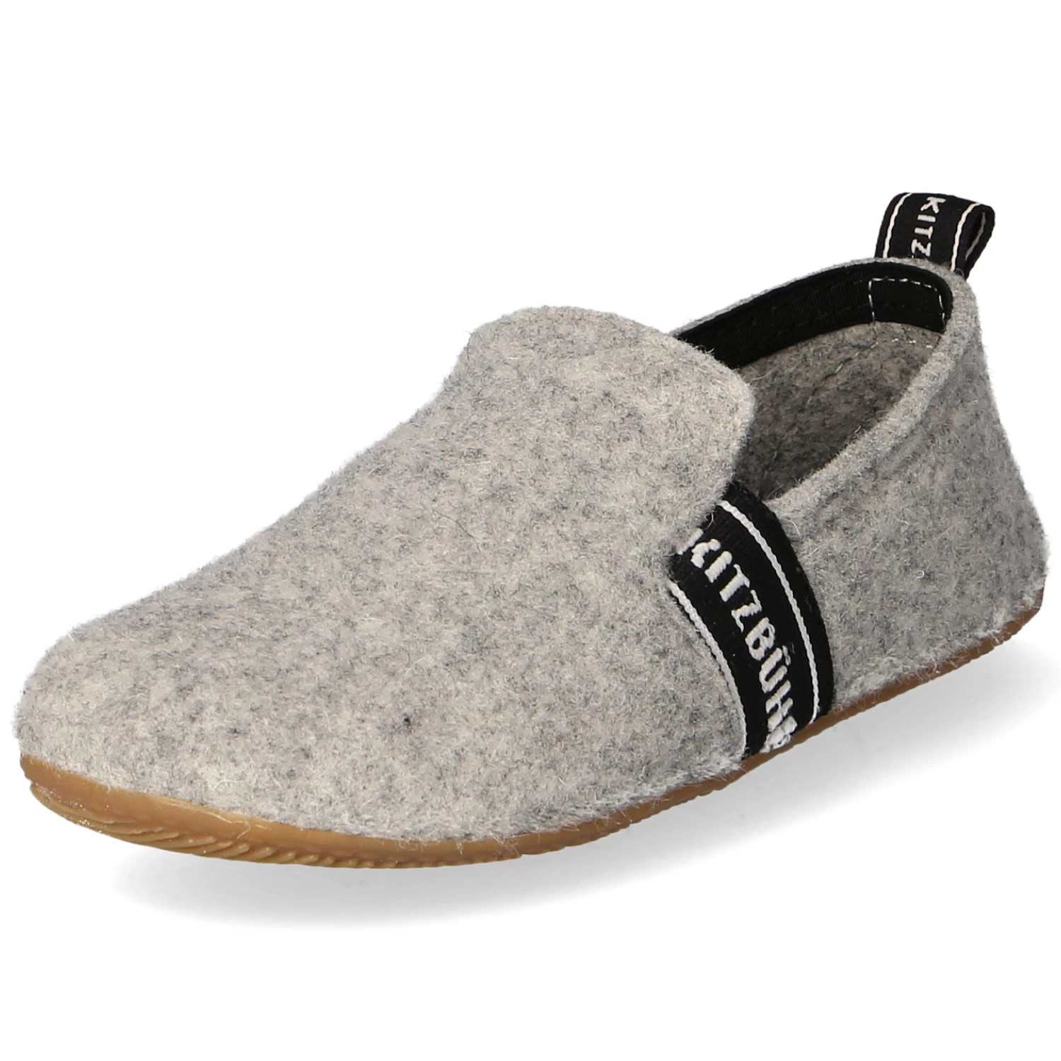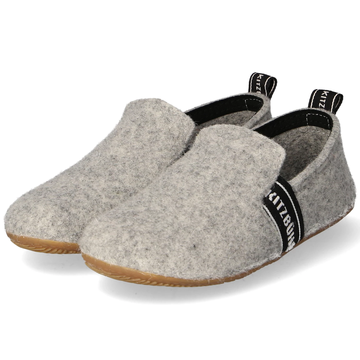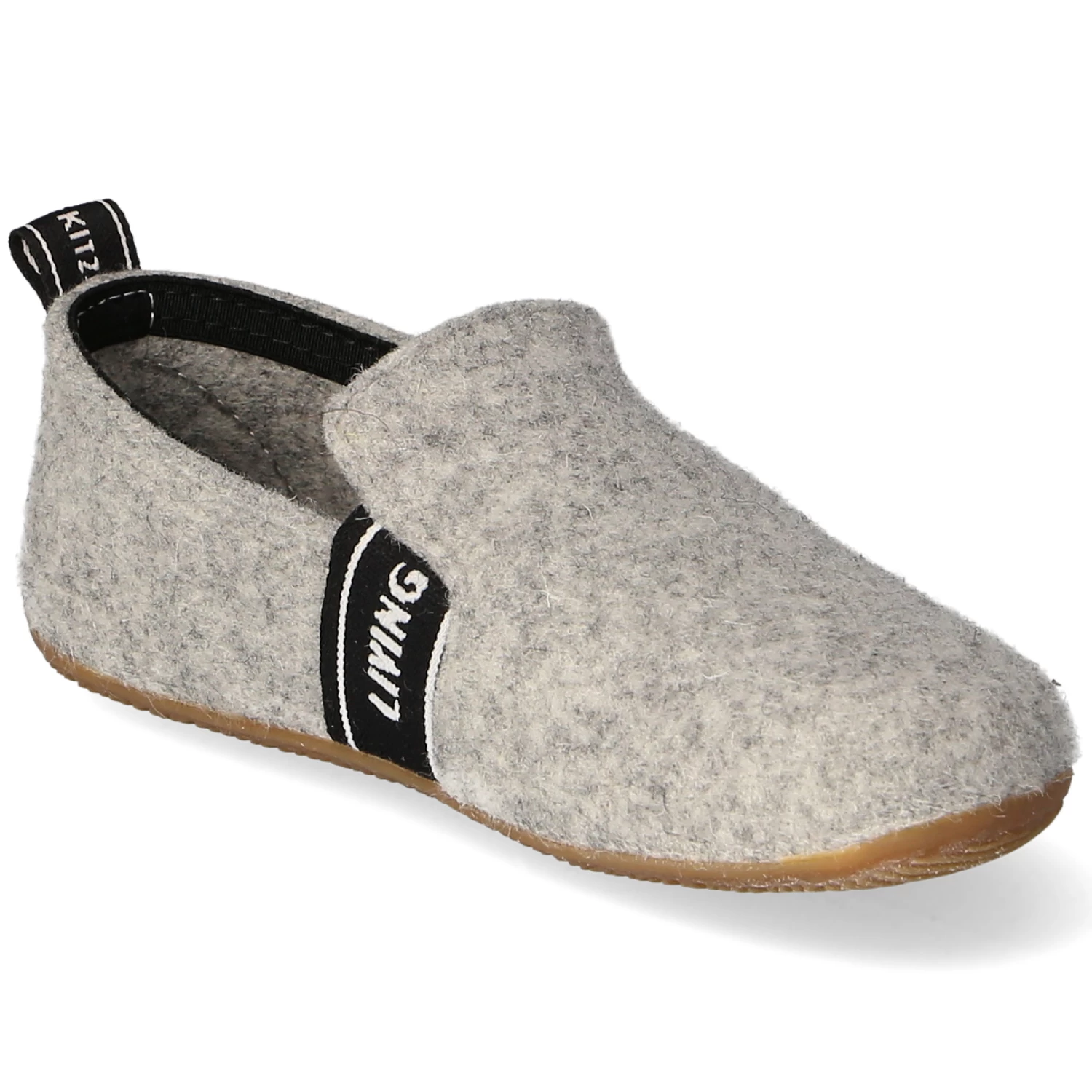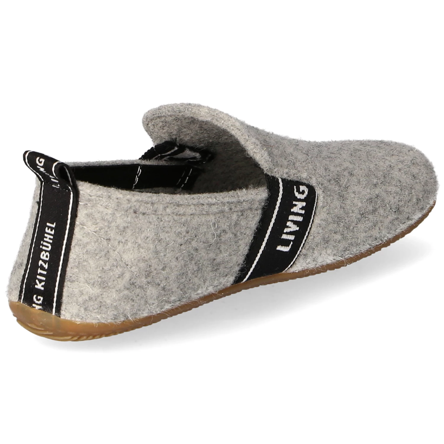 Living Kitzbühel Jungen Hausschuhe Grau Filz – elastische Bänder seitlich am Spann mit Logo Schriftzug – praktische Anziehlasche – flexible und ultraleichte Laufsohle mit rutschhemmenden Eigenschaften