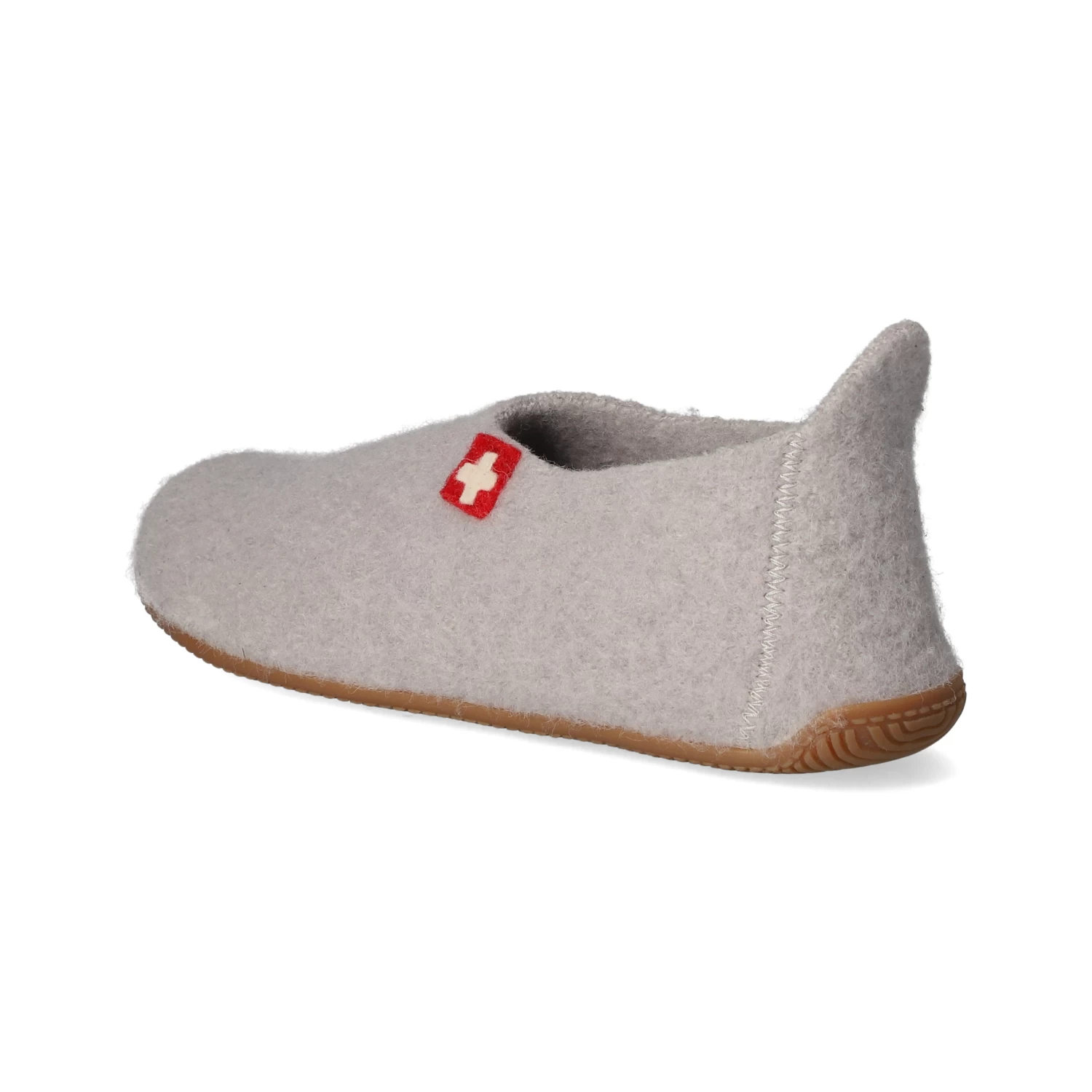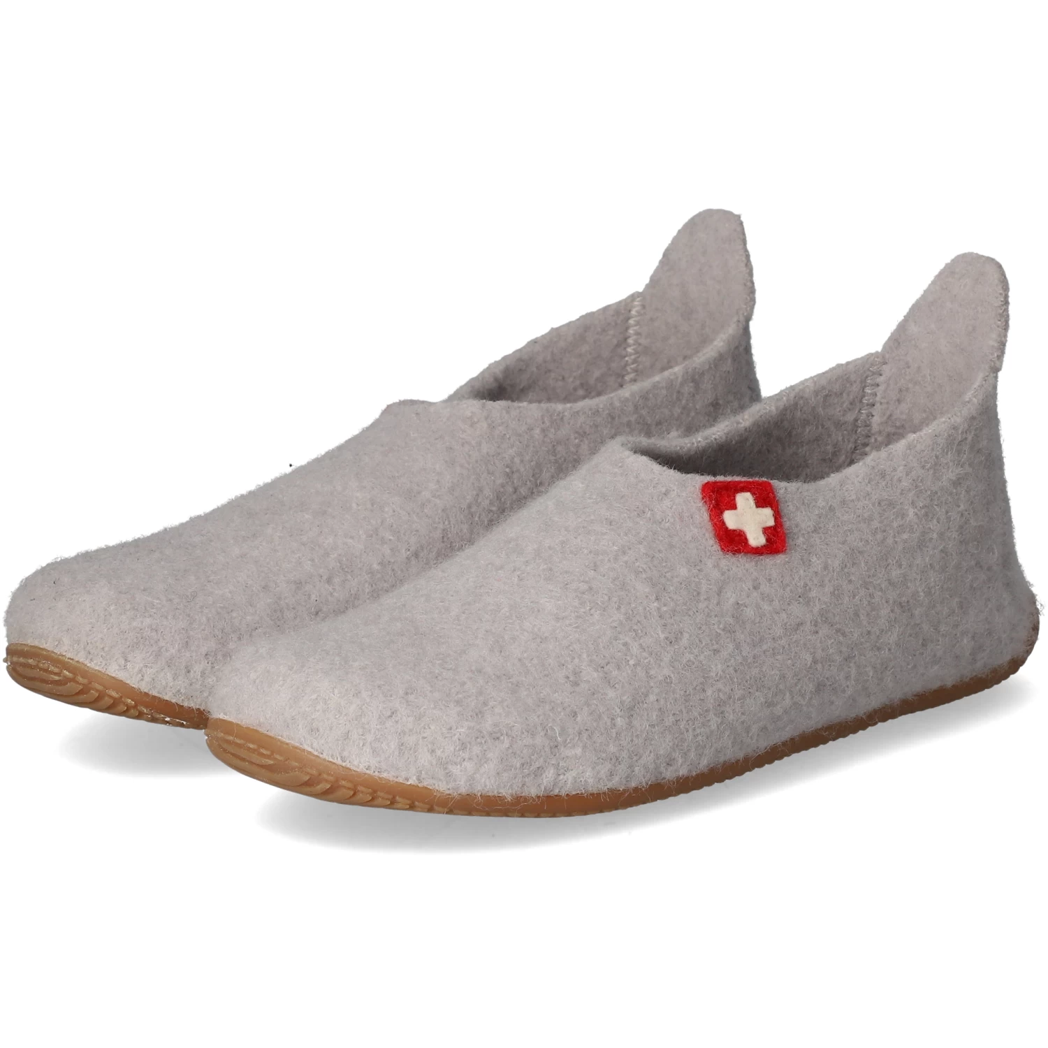 Living Kitzbühel Damen Hausschuhe / Homeslipper Grau Schurwolle – gefilztes Design – seitliches Kreuzmotiv – Anziehlasche – weiche Decksohle – extra flexible, rutschhemmende Laufsohle
