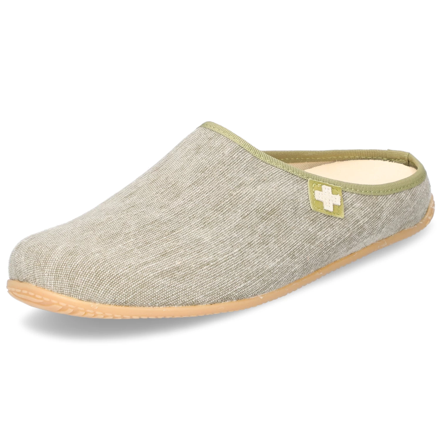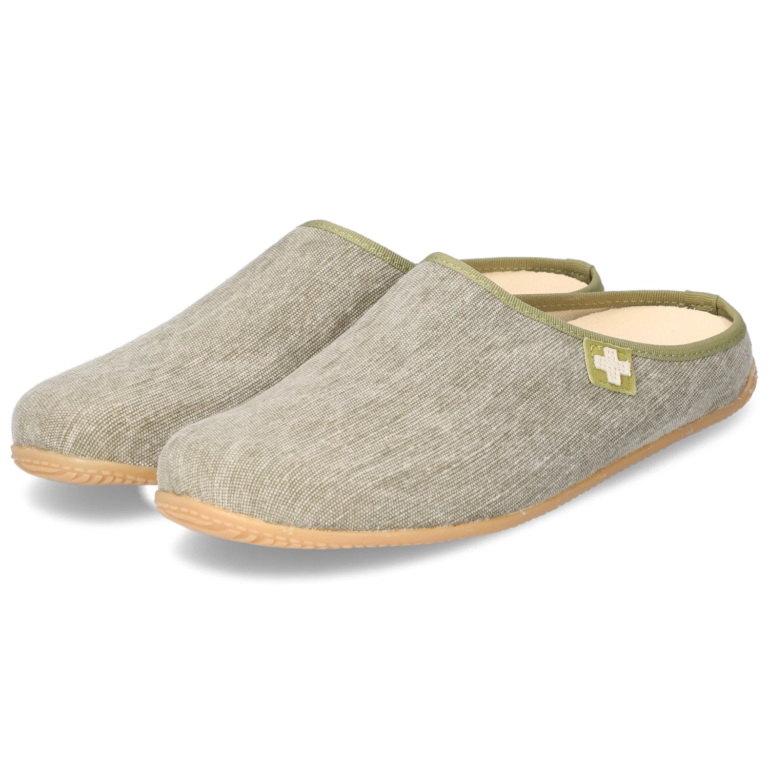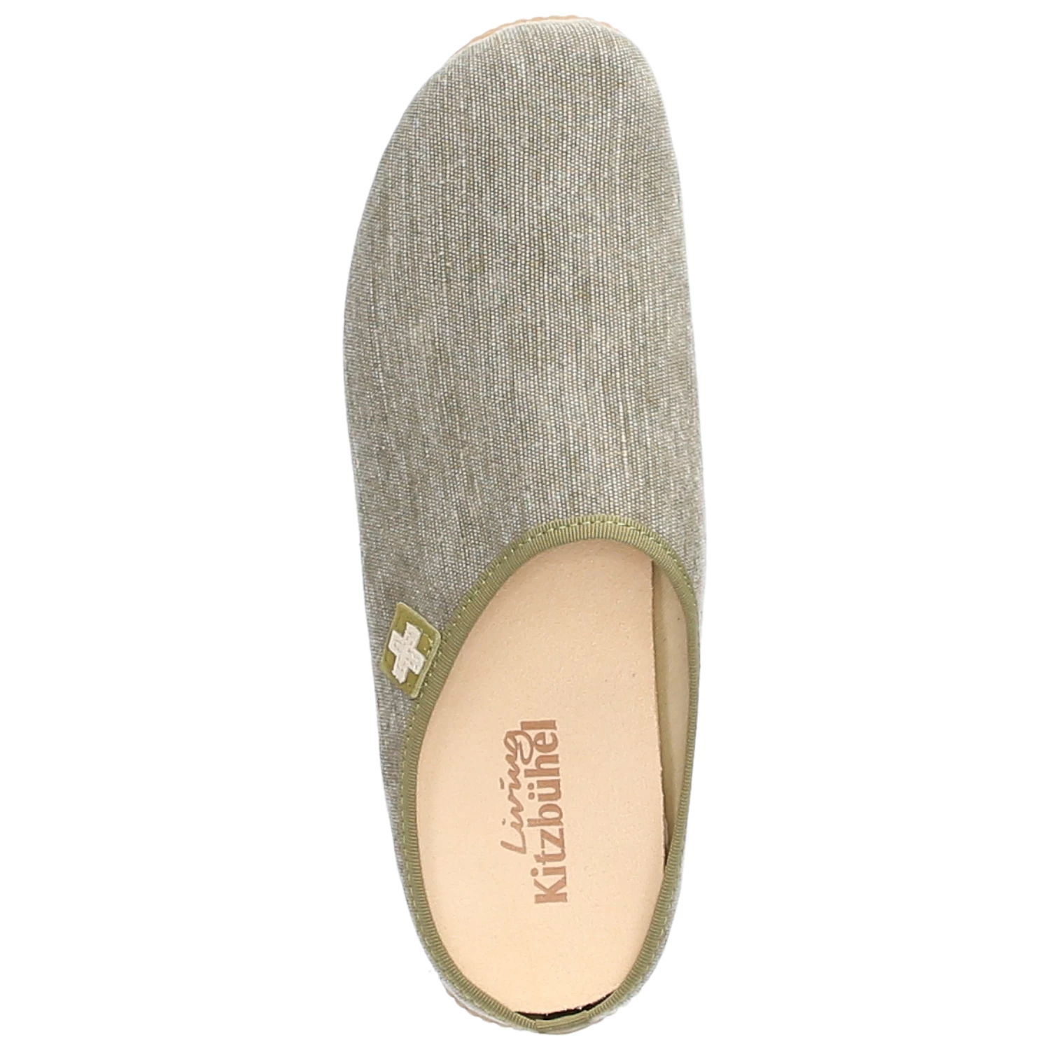 Living Kitzbühel Herren Hausschuhe Khaki Textil – Obermaterial gewebt – Logo auf der Außenseite – gepolsterte und herausnehmbare Decksohle – flexible, rutschhemmende Laufsohle