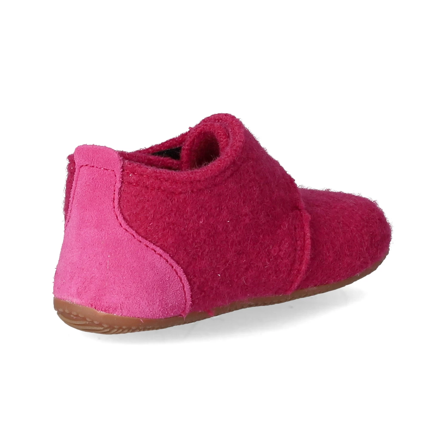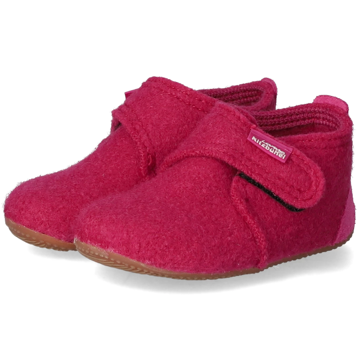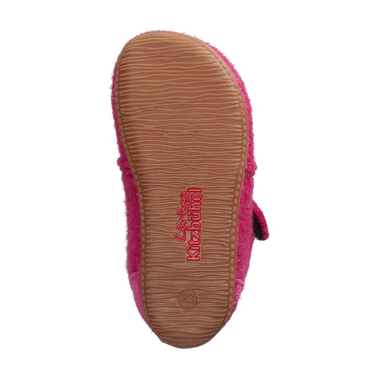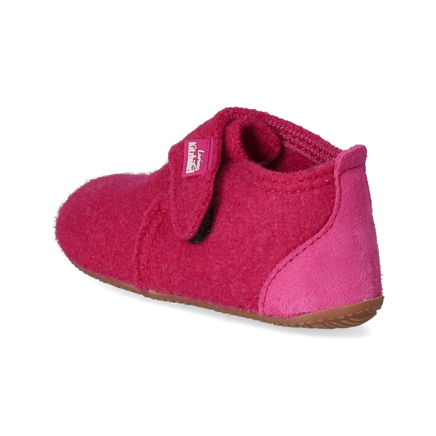 Living Kitzbühel Mädchen Hausschuhe Rot Leder-Filz-Mix – Klettverschluss – verstärkte Ferse – leicht vorgeformtes Tieffußbett – flexible, rutschhemmende Laufsohle