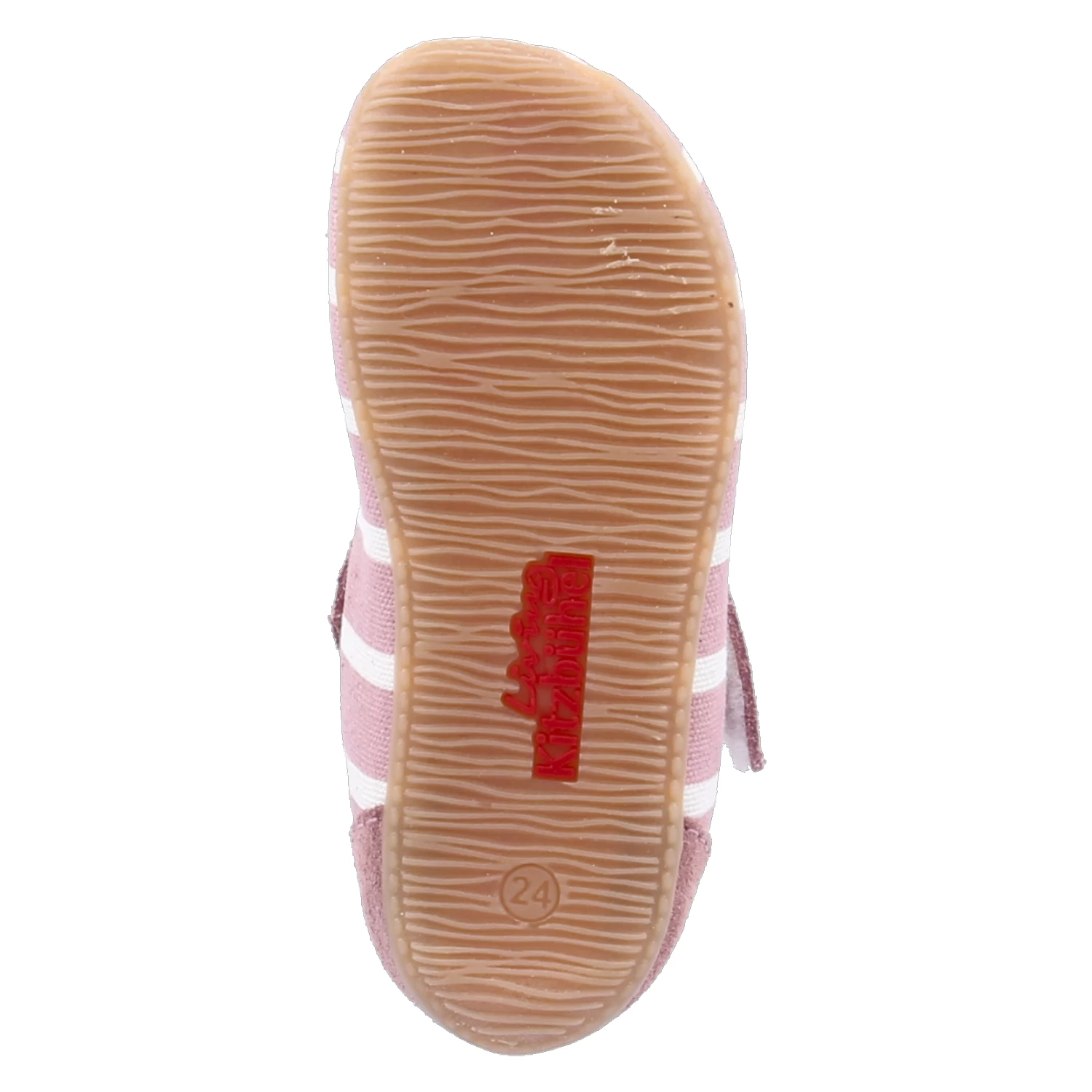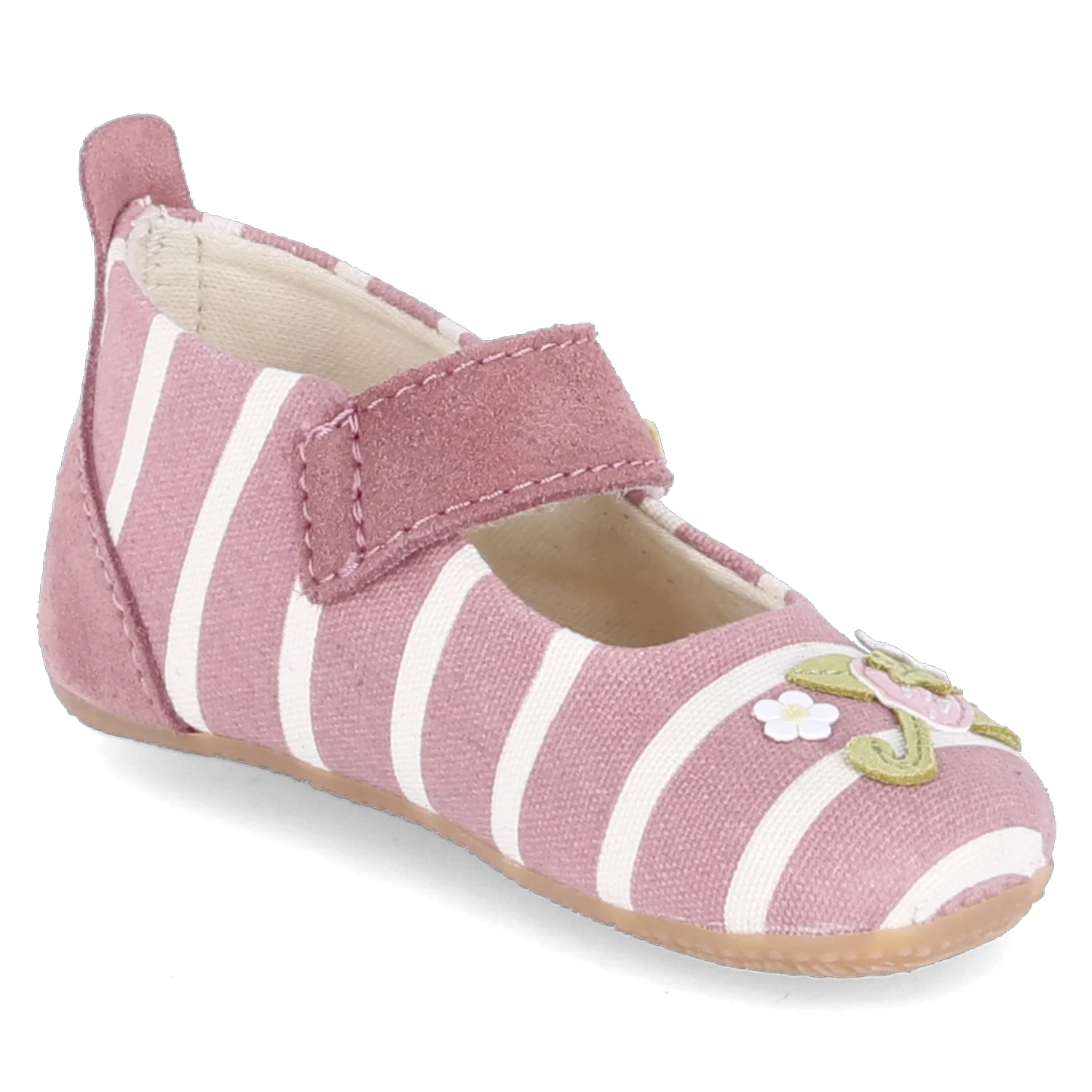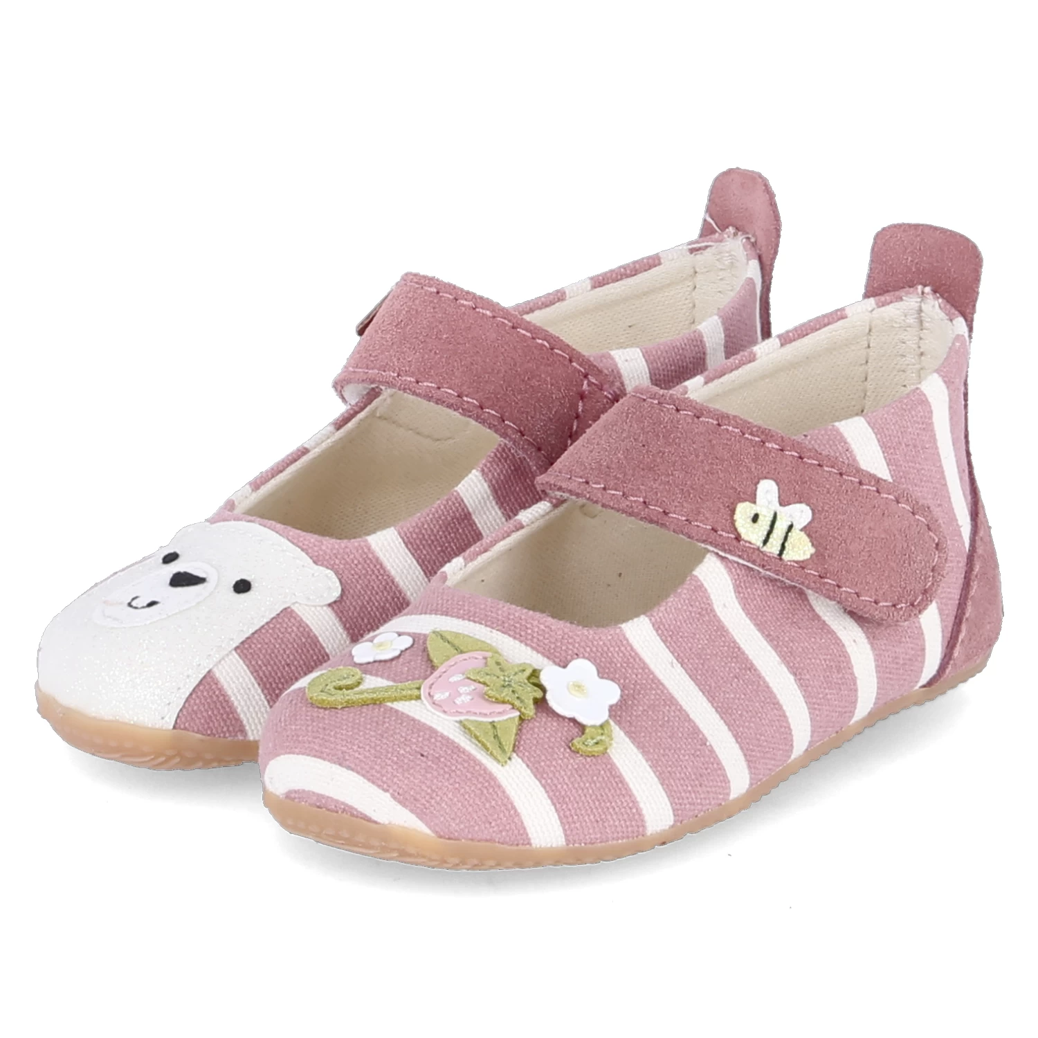 Living Kitzbühel Mädchen Ballerinas/ Hausschuhe Rosa Leder-Textil-Mix – Klettverschluss – gestreift – Bär, Biene und Erdbeer- Applikation – verstärkter Fersenbereich – flexible, rutschhemmende Laufsohle