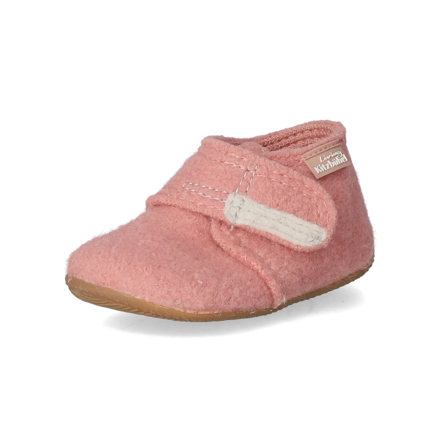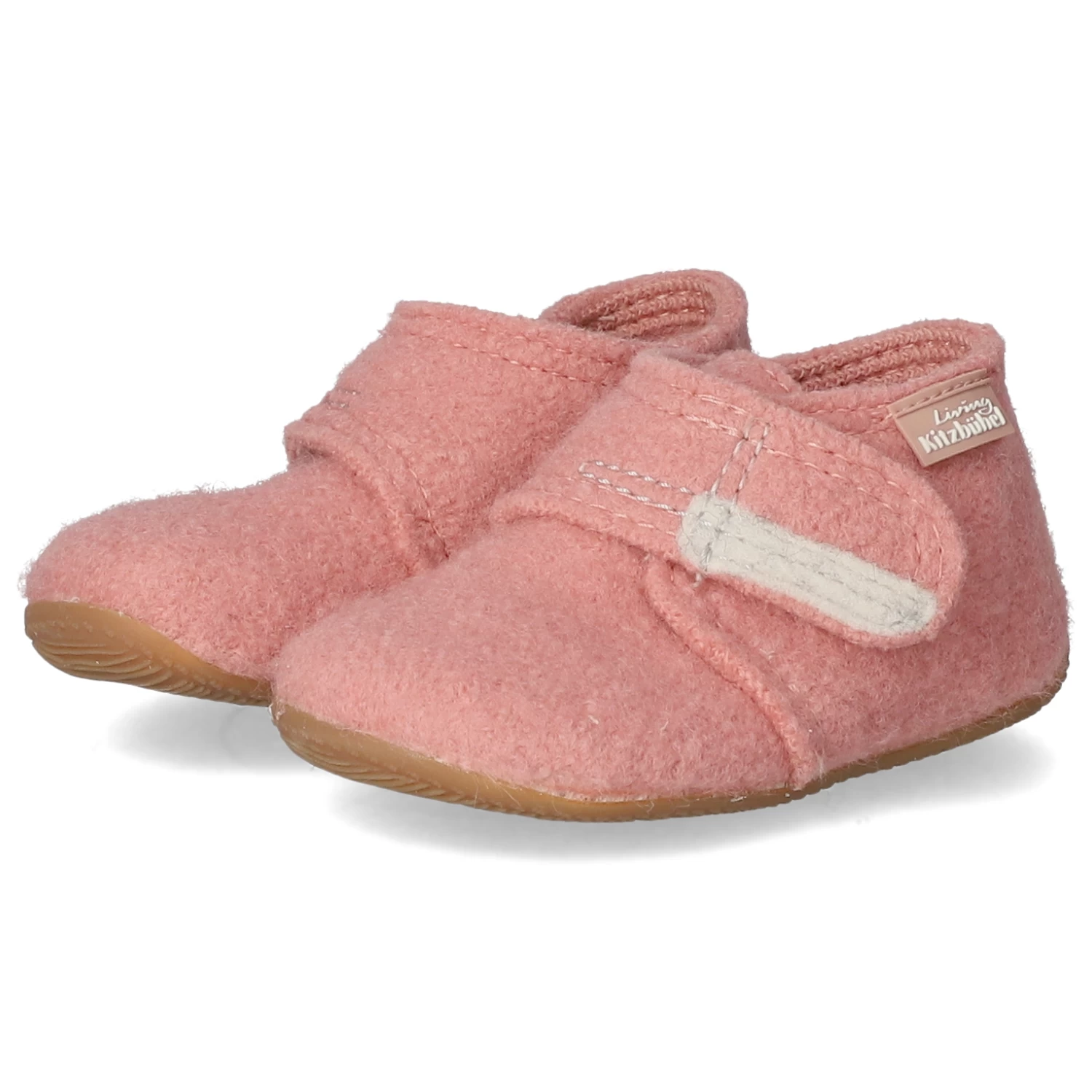 Living Kitzbühel Kinder Hausschuhe / Homeslipper Rosa Textil – gefilztes Design – Riemen mit Klettverschluss – typische Markendetails – leichte Decksohle – extra flexible, rutschhemmende Laufsohle mit leichtem Profil
