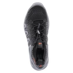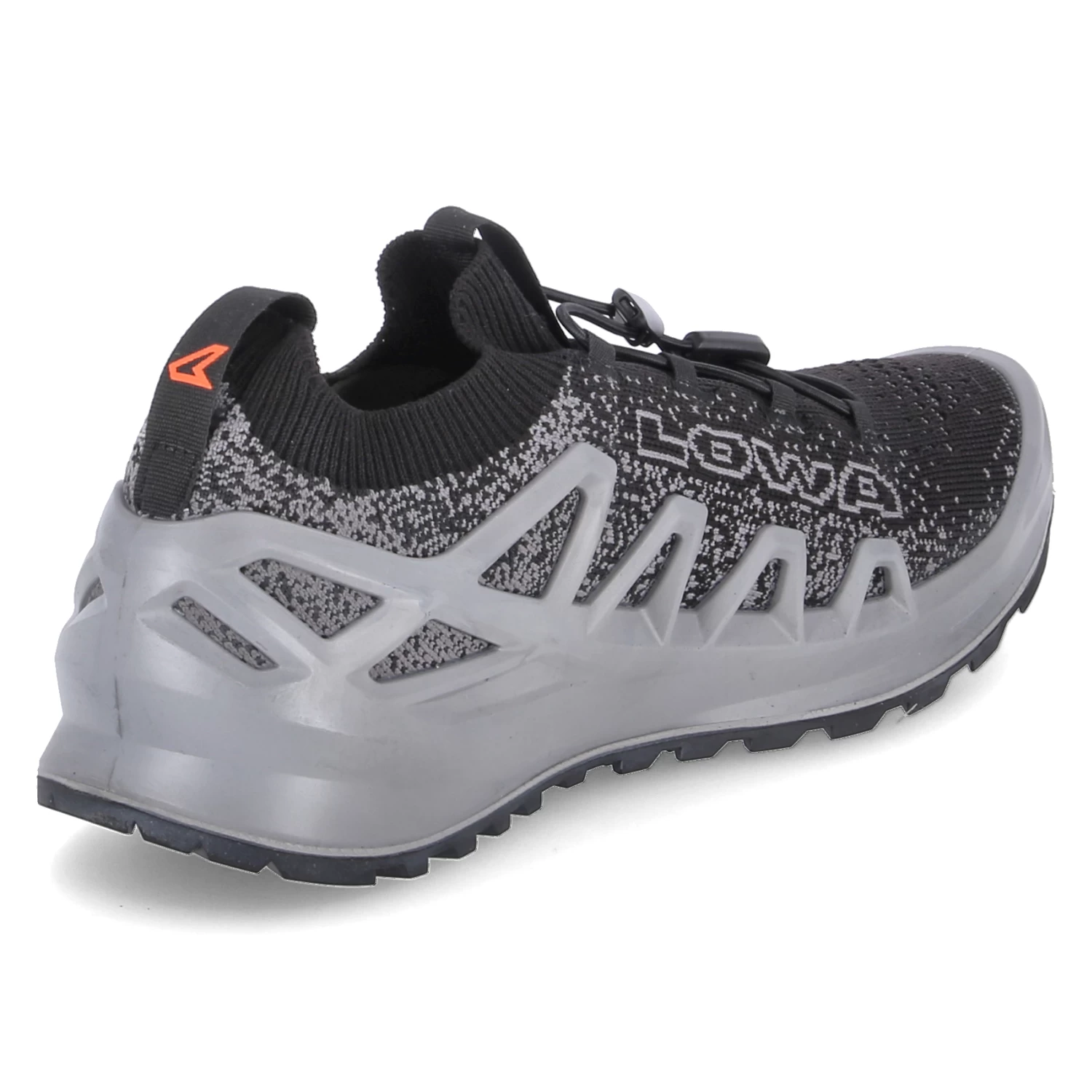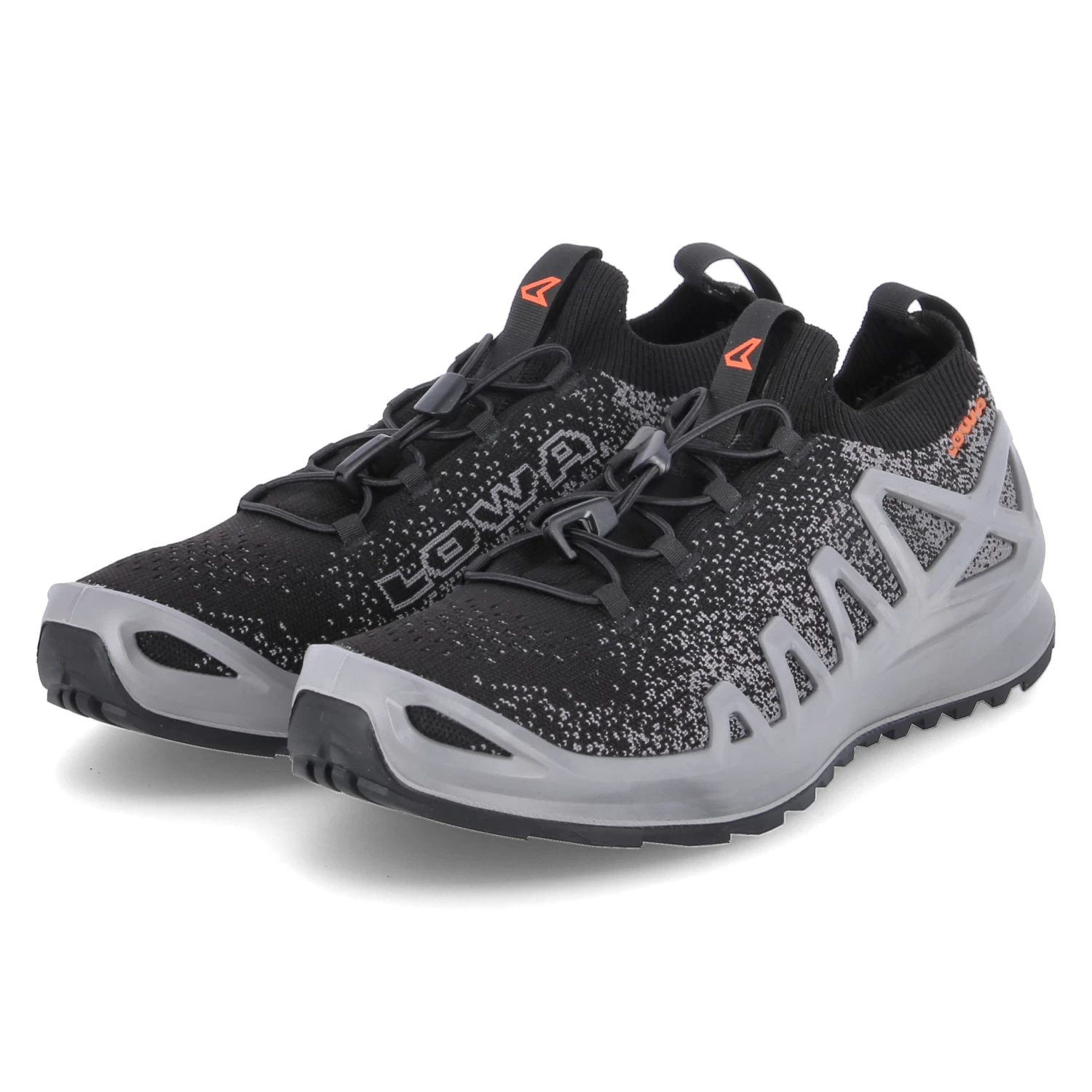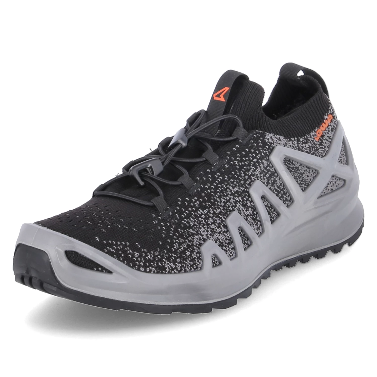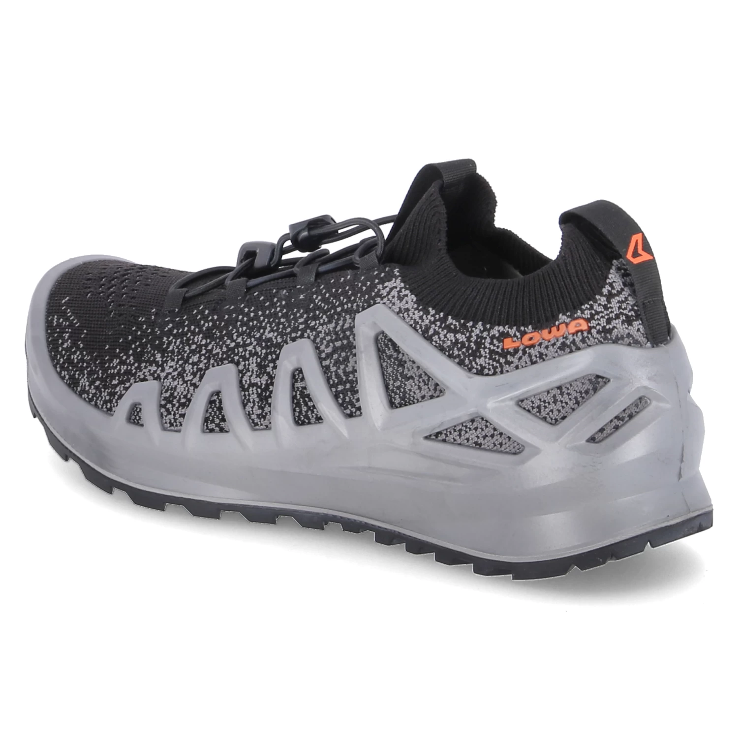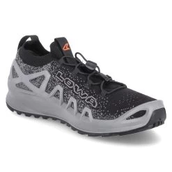 Lowa Herren Trailrunningschuhe/ Laufschuhe FUSION Schwarz/Grau Textil-Synthetik-Mix – Sprenkelmuster – praktische Anziehlaschen – elastischer Einstiegsbund und Schnellverschluss – dezente Markendetails – sportlicher Print – seitliche Verstärkung – gepolstertes WechselfuĂźbett – verstärkter Fersen- und Zehenbereich – flexible, rutschhemmende Profilsohle
