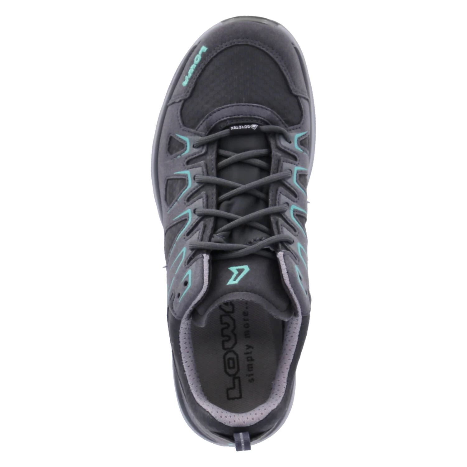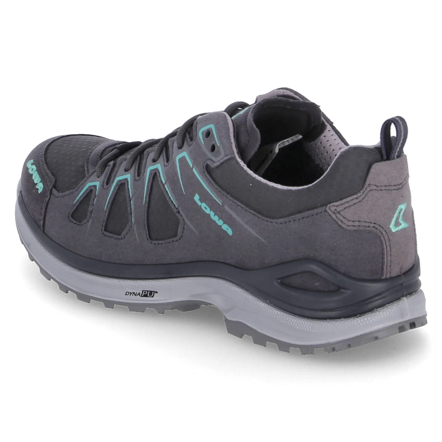 Lowa Damen Outdoorschuhe/ Trailrunningschuhe INNOX EVO GTX LO Grau Textil-Synthetik-Mix – wasserfest, winddicht und atmungsaktiv (GORE-TEX) – SchnĂĽrverschluss – Anziehlasche – minte Akzente – sportlichen Zierstreifen – gepolsterter Einstieg – verstärkter Fersen- und Zehenbereich – dezente Markendetails – gepolstertes WechselfuĂźbett – angenehmes Textilfutter – flexible, rutschhemmende „DynaPU“-Profilsohle