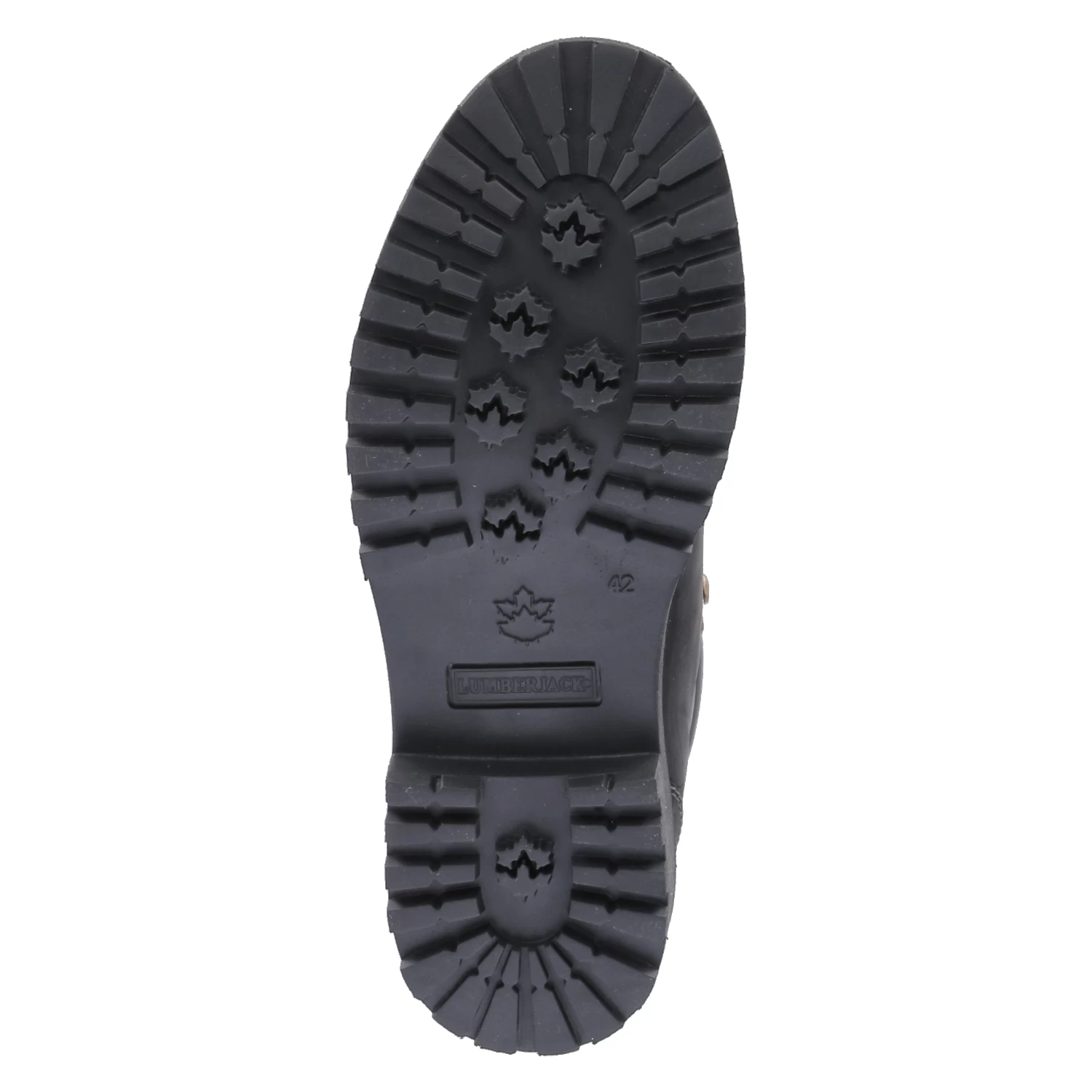 Lumberjack Herren Schnürboots RIVER Schwarz Leder – Schnürung mit Triangeln und Haken – Ziernähte – gepolsterter Einstieg in Querstepp – verstärkter Fersenbereich – flexible, rutschhemmende Laufsohle – gepolsterte Lederdecksohle