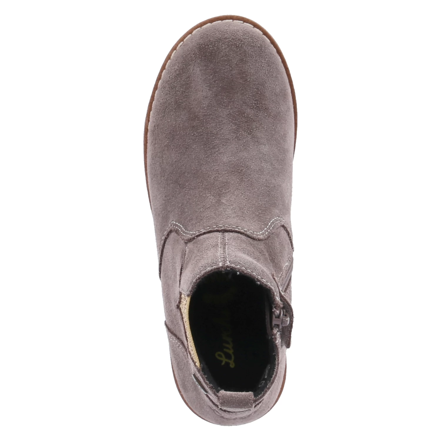 Lurchi Mädchen Chelsea Boots/ Stiefeletten FENJA-TEX Taupe Rauleder – wasserdicht, atmungsaktiv – ReiĂźverschluss und Elastikeinsatz – gepolsterter Einstieg – Ziernähte – verstärkter Fersenbereich – flexible, rutschhemmende Laufsohle – WechselfuĂźbett – leichtes, warmes Fleecefutter