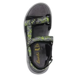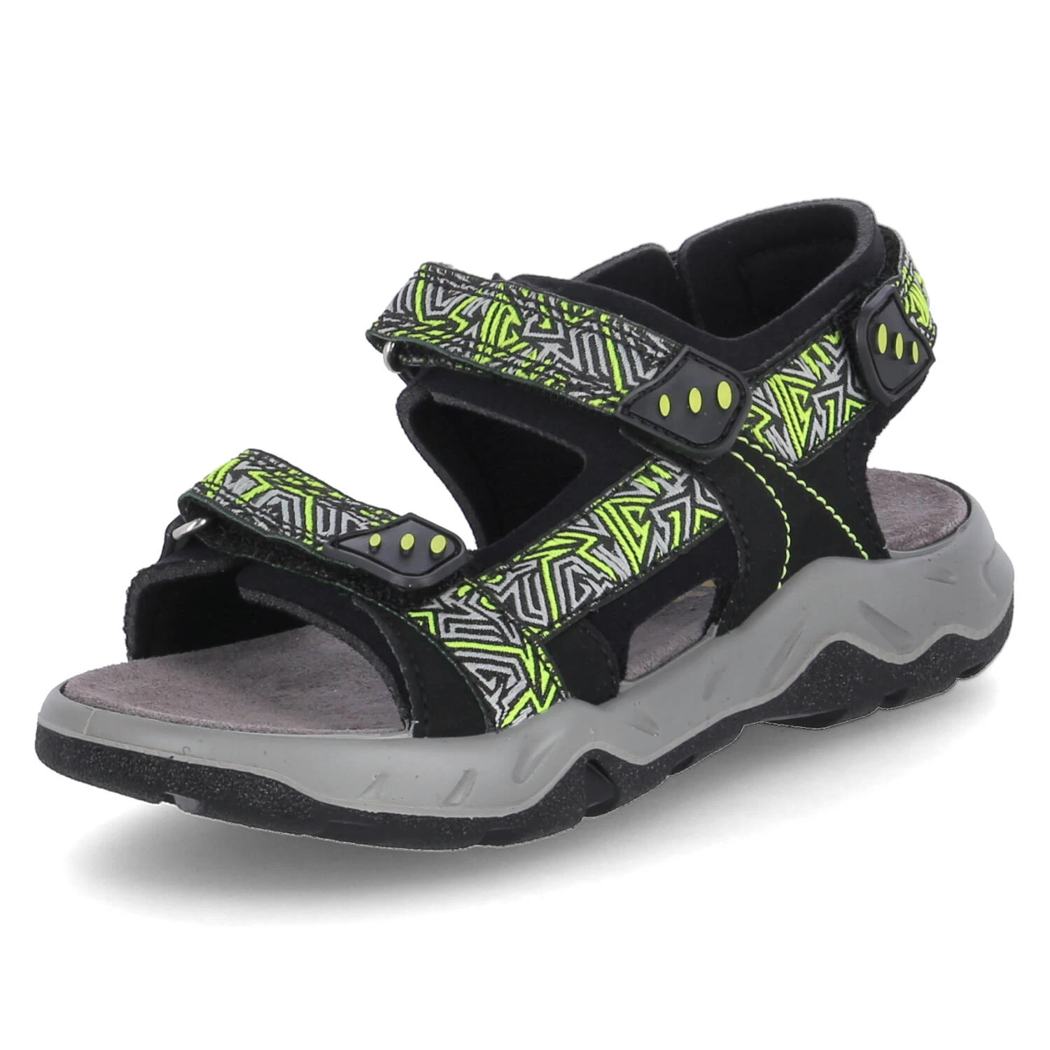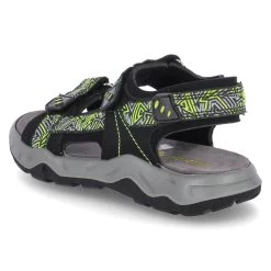 Lurchi Jungen Sandalen/ Outdoorsandalen ODONO Schwarz-GrĂĽn Textil-Synthetik-Mix – drei Klettriemen – Ziernähte – neoprenähnliches Futter – gepolstertes LederfuĂźbett – seitlicher Steg – flexible, rutschhemmende Profillaufsohle