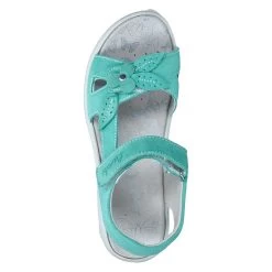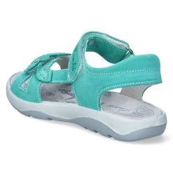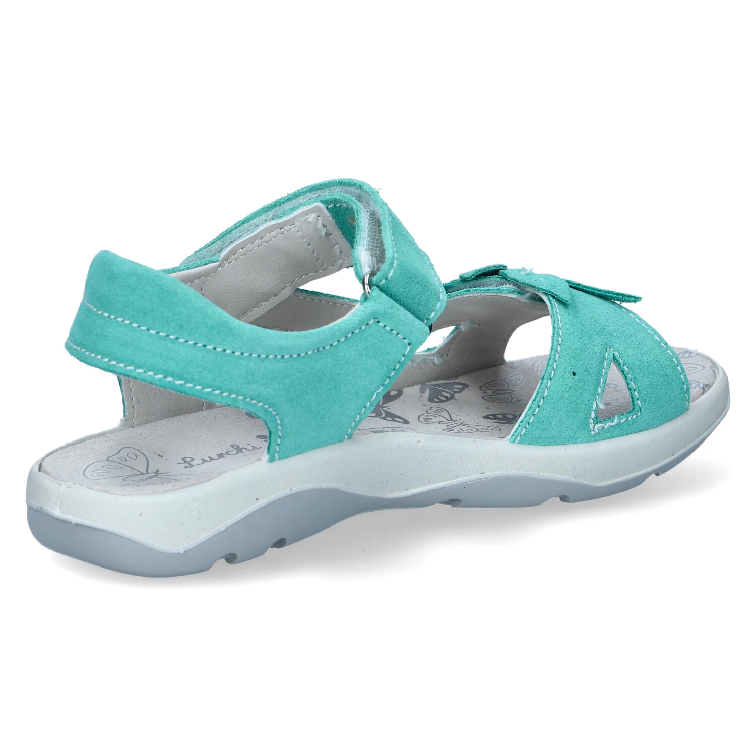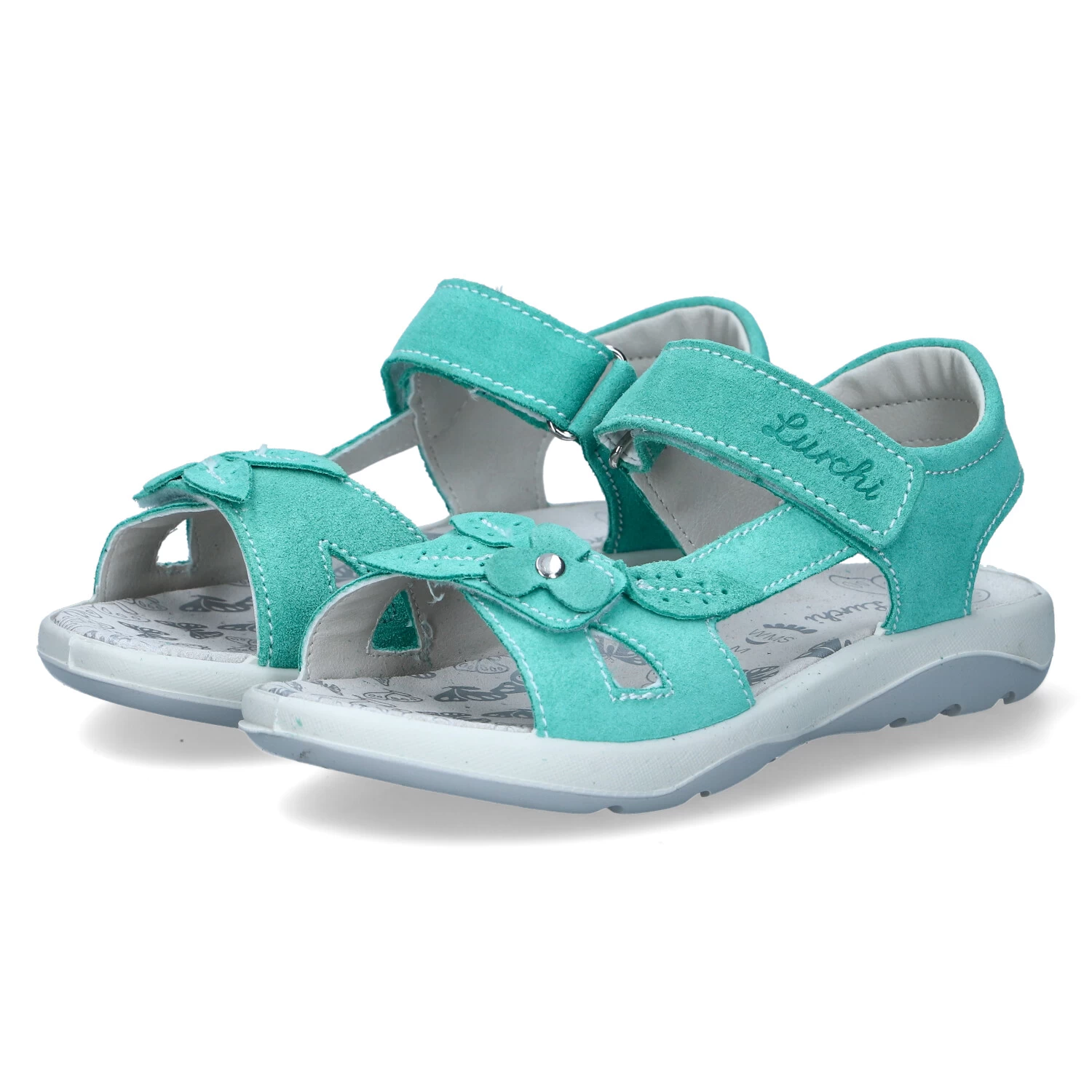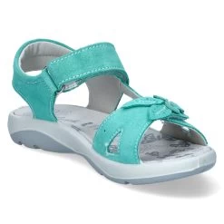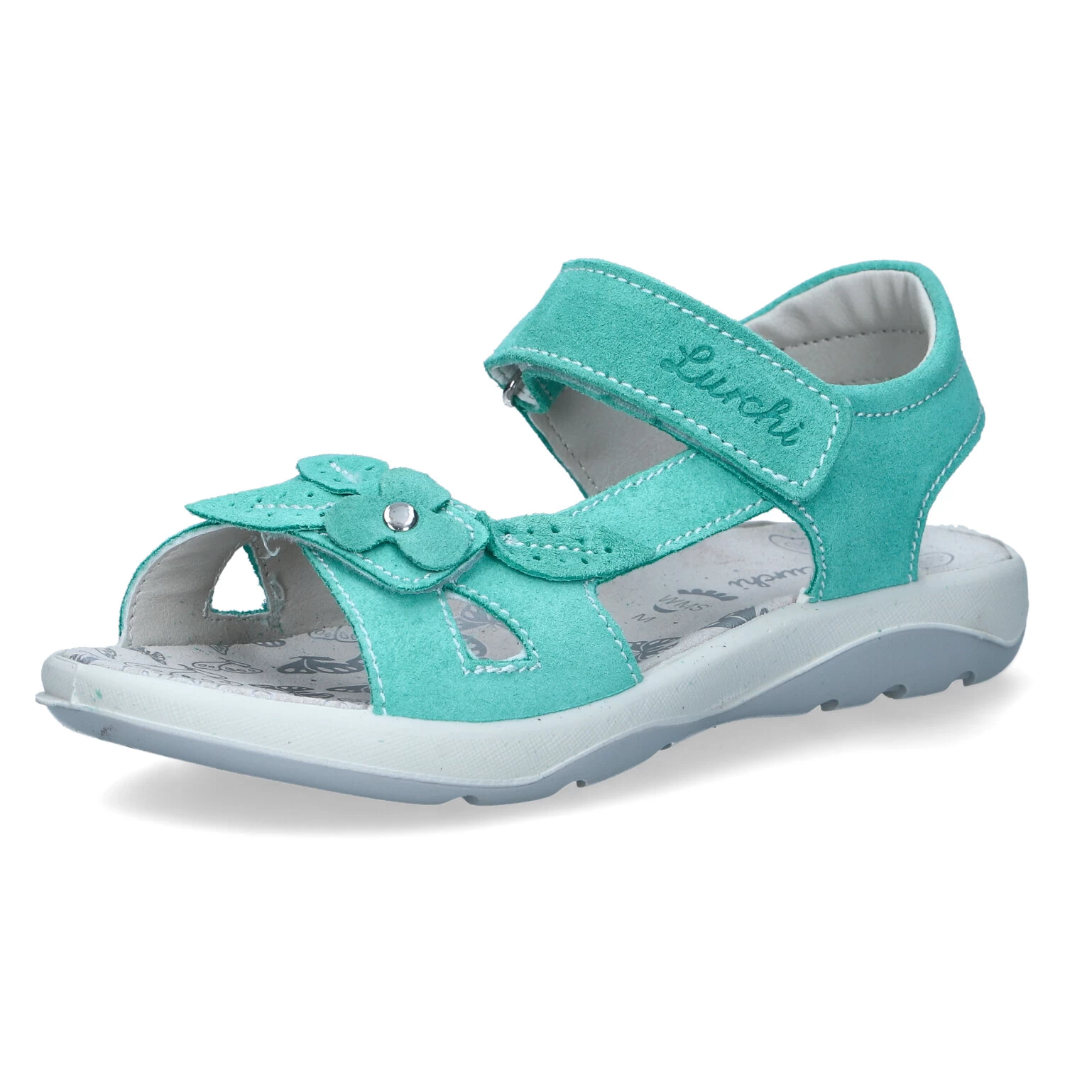 Lurchi Mädchen Sandalen FADIA TĂĽrkis Rauleder – zwei Riemen mit Klettverschluss (vorderer mit Blumen-Applikationen) – Lederfutter – leicht gepolsterte Lederdecksohle – flexible, rutschhemmende Laufsohle