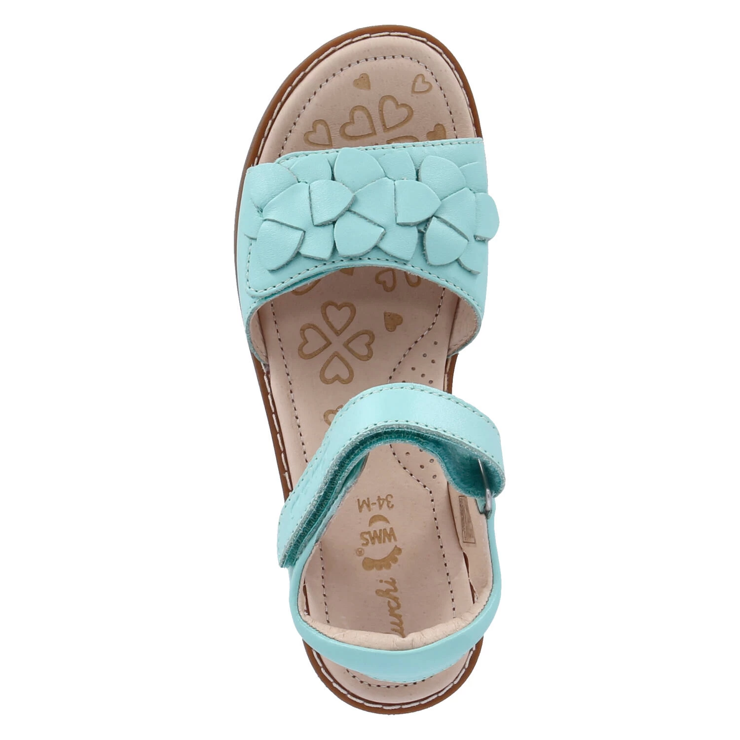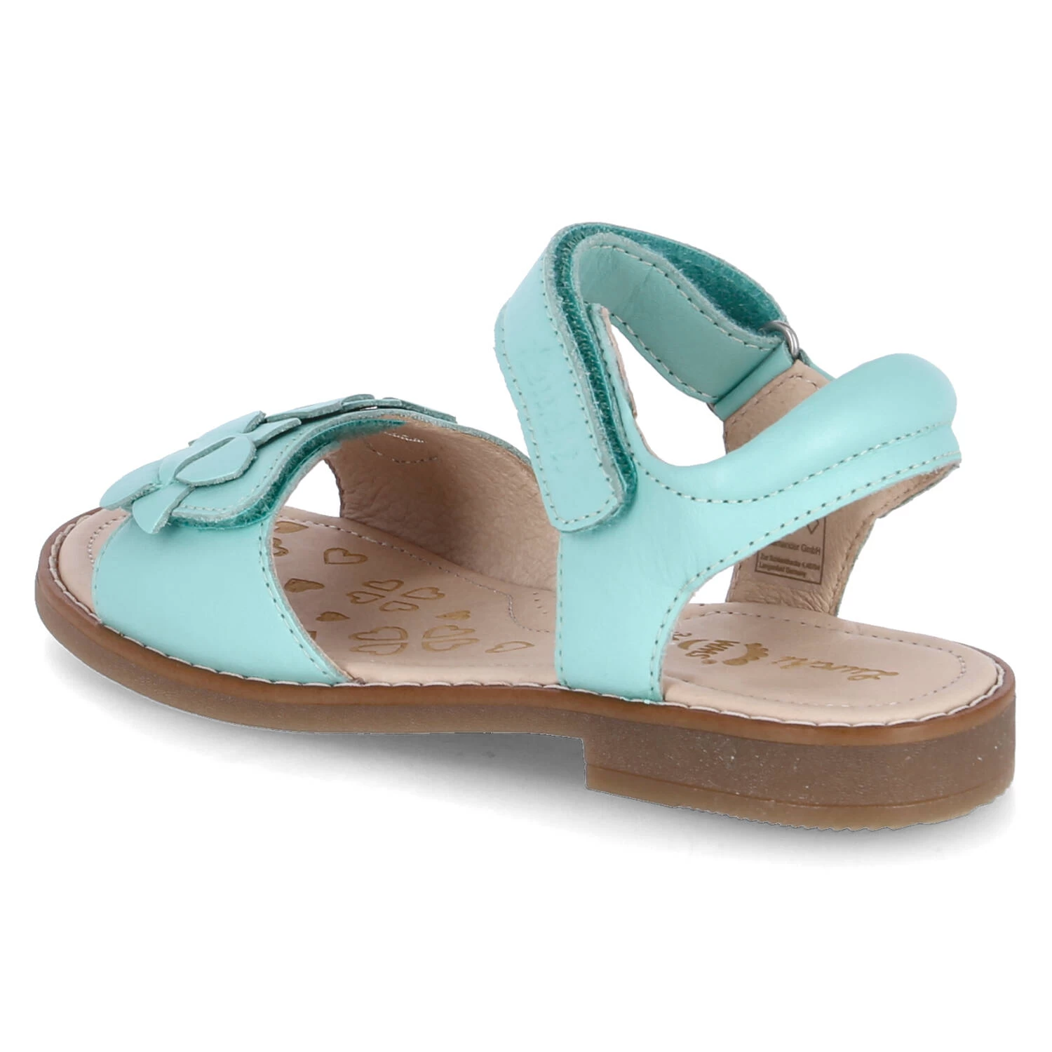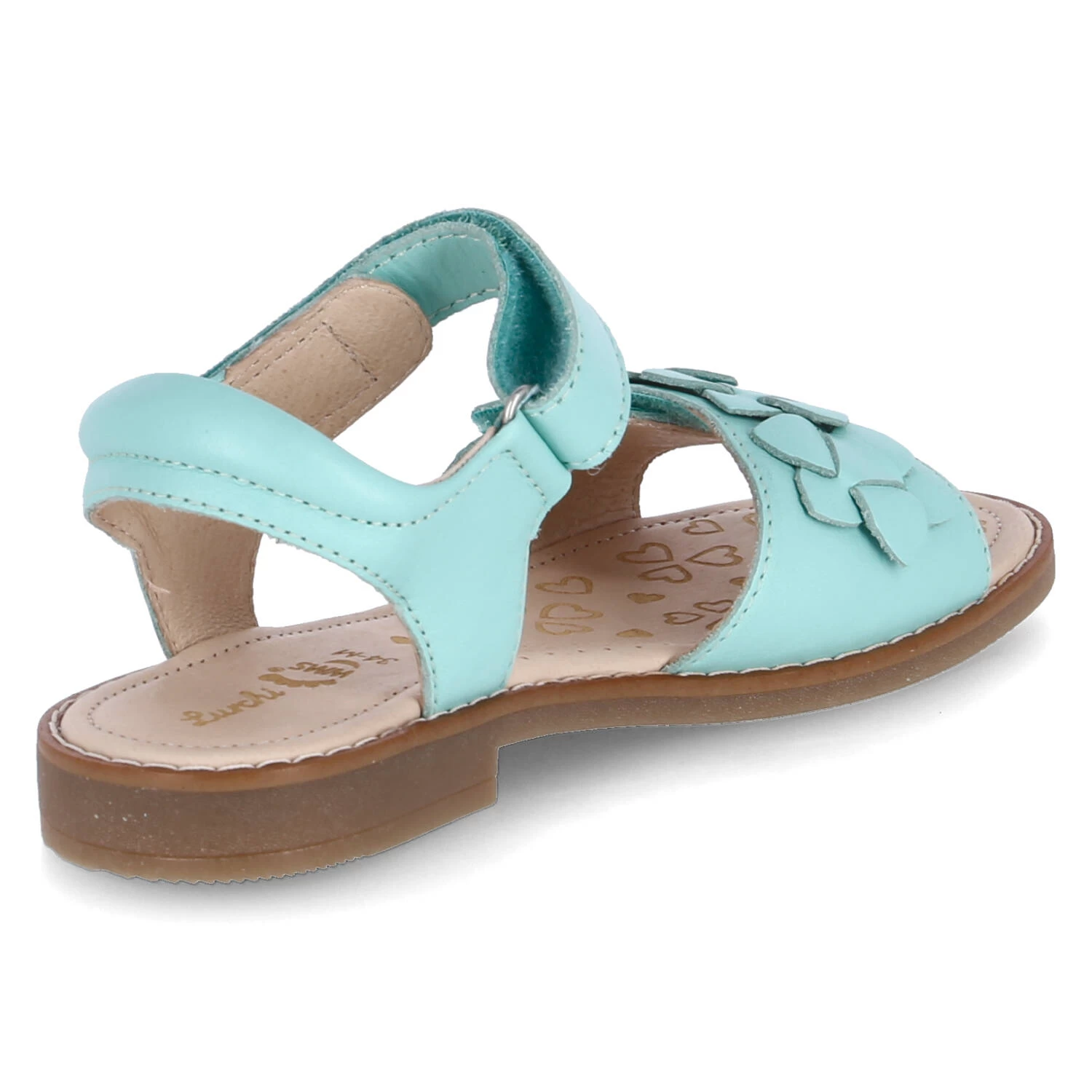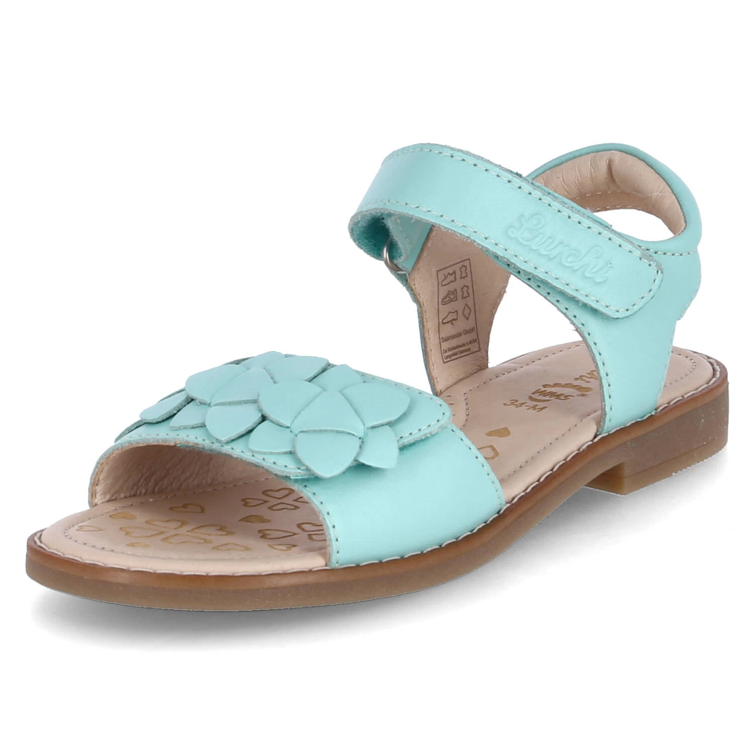 Lurchi Mädchen Sandalen ZEHRA GrĂĽn Glattleder – zwei Klettriemen – weiche Lederdecksohle – Riemen mit Fersenpolster – vorne mit Blumenapplikation – flexible, rutschhemmende Laufsohle