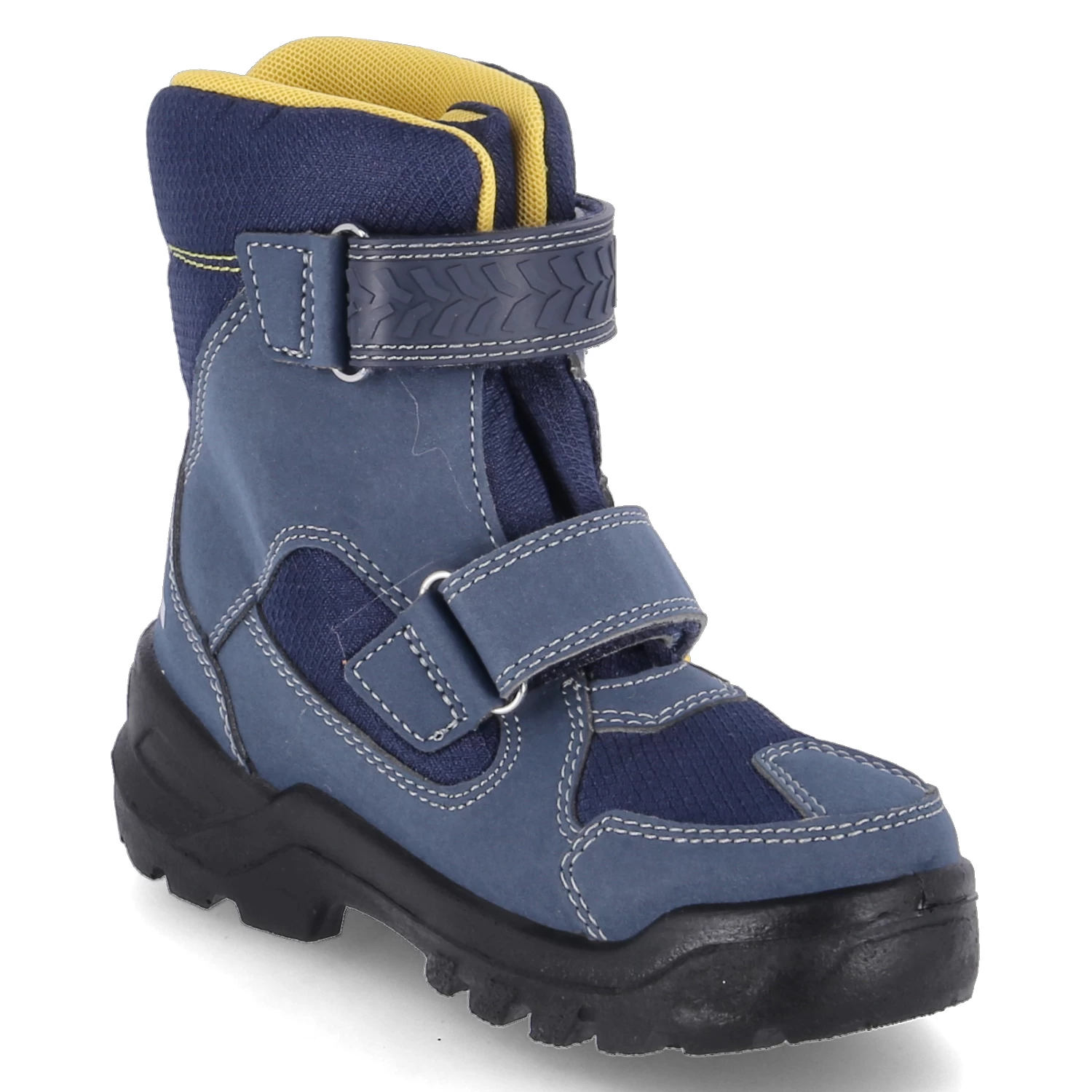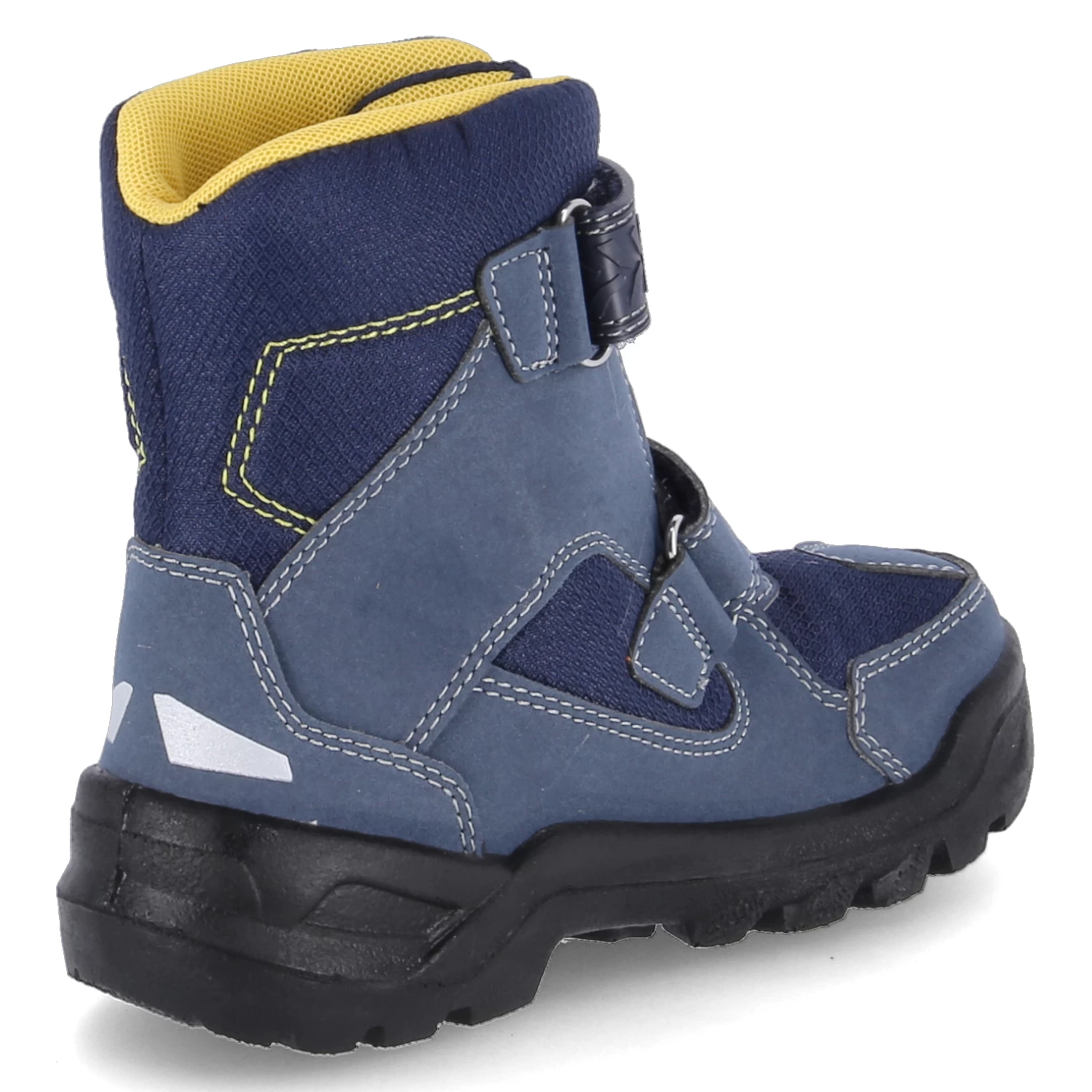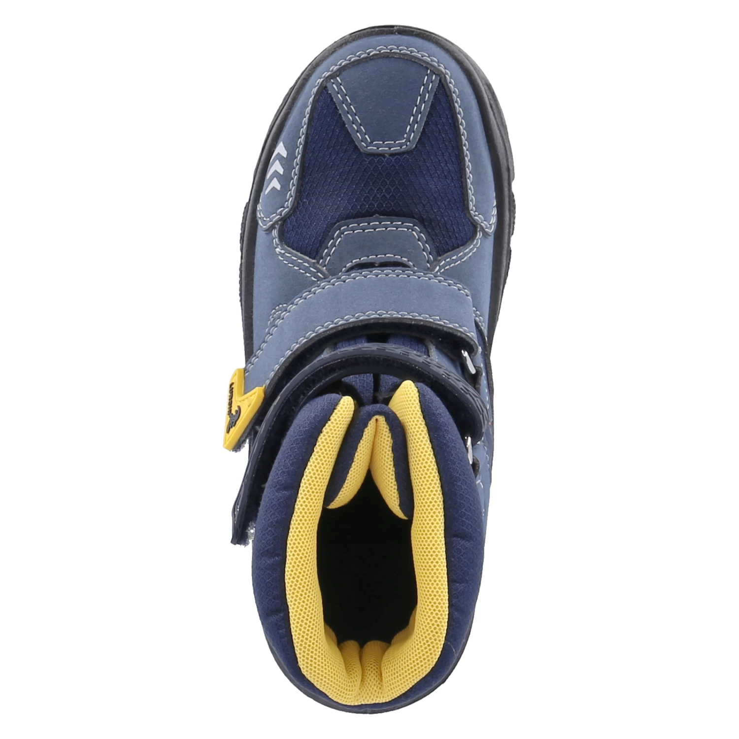 Lurchi Kinder Winterstiefel KAZIM Blau Textil-Synthetik-Mix – Klettverschluss – wasserfest, atmungsaktiv (Sympatex) – verstärkter Fersen- und Zehenbereich – Truck-Print mit vier blinkenden LEDs (nicht schaltbar) – gepolsterter Schaft – flexible Profillaufsohle – warmes Teddyfutter – WechselfuĂźbett