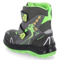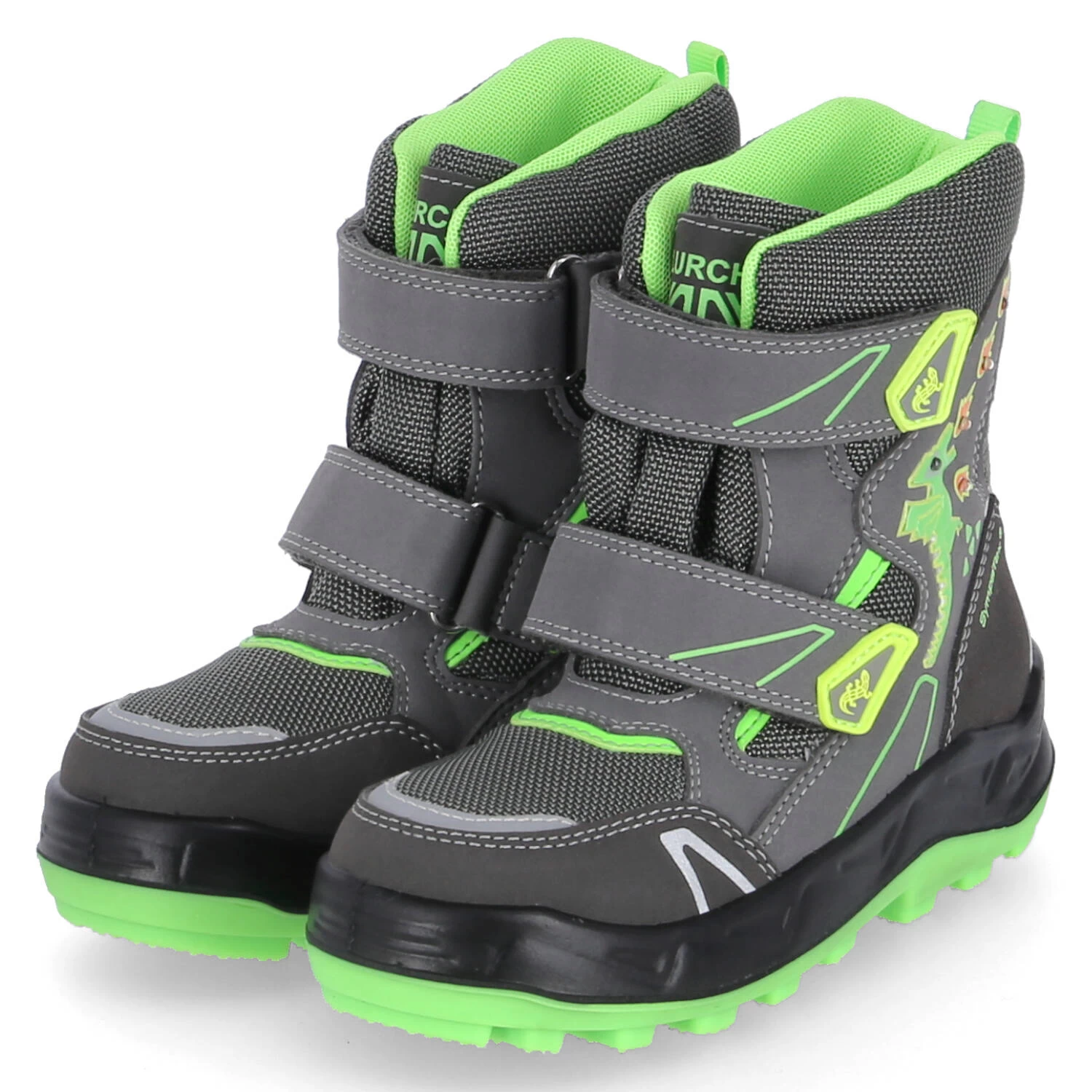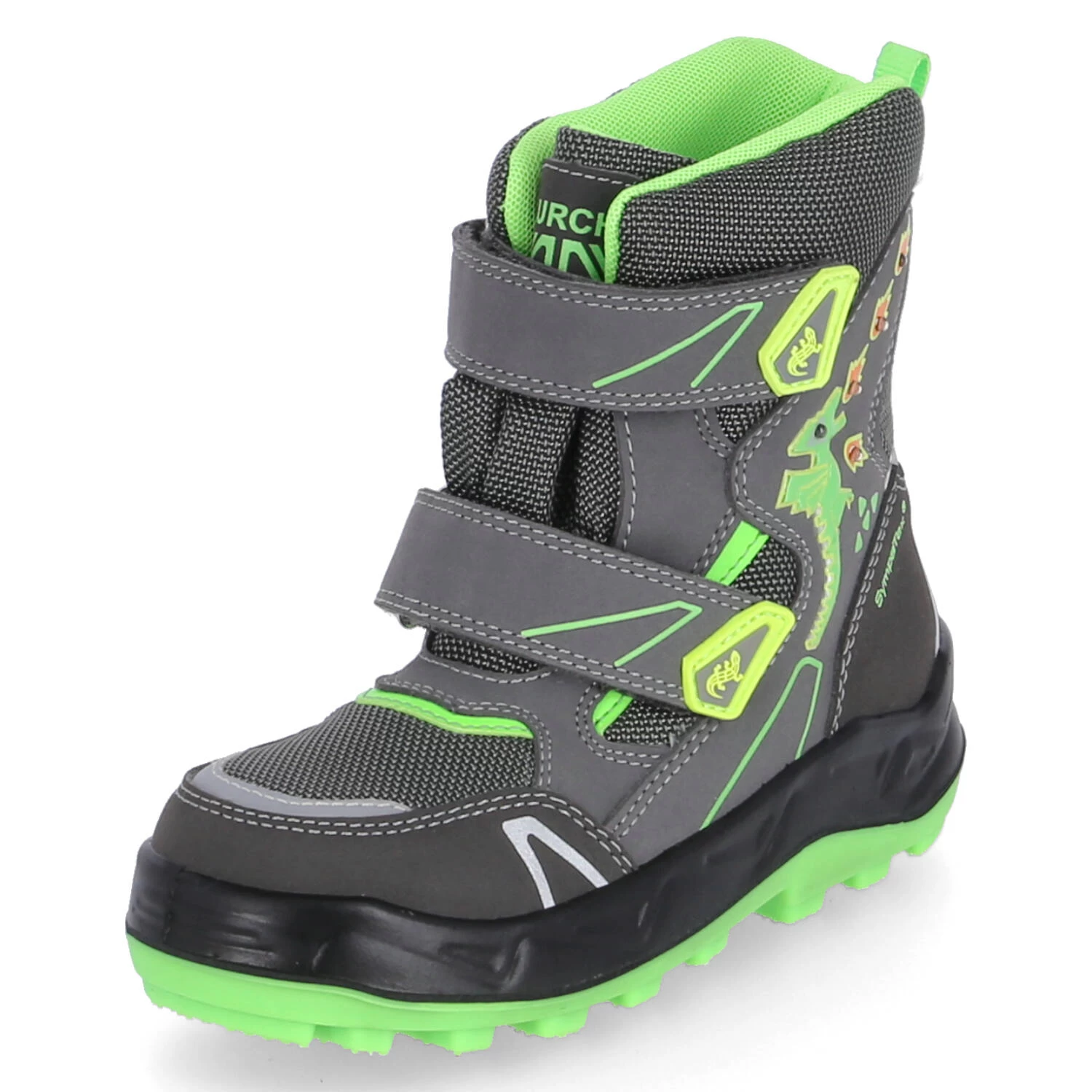 Lurchi Jungen Stiefeletten/ Winterstiefeletten KROLLI Grau Kunstleder-Textil-Mix – modische Ziernähte – Drachenmotiv – seitliche blinkende LEDs – Markendetails – wasserdicht, winddicht und atmungsaktiv (SympaTex) – Klettverschluss – warmes Textilfutter – leicht gepolsterte Wechseldecksohle – flexible und rutschhemmende Profilsohle