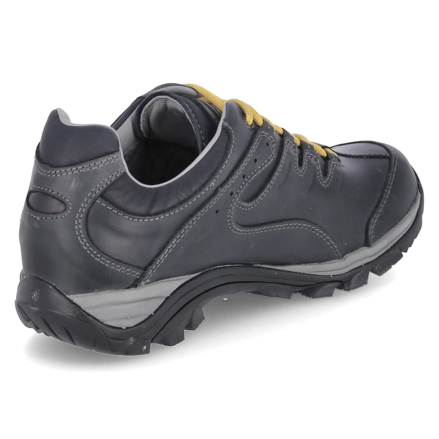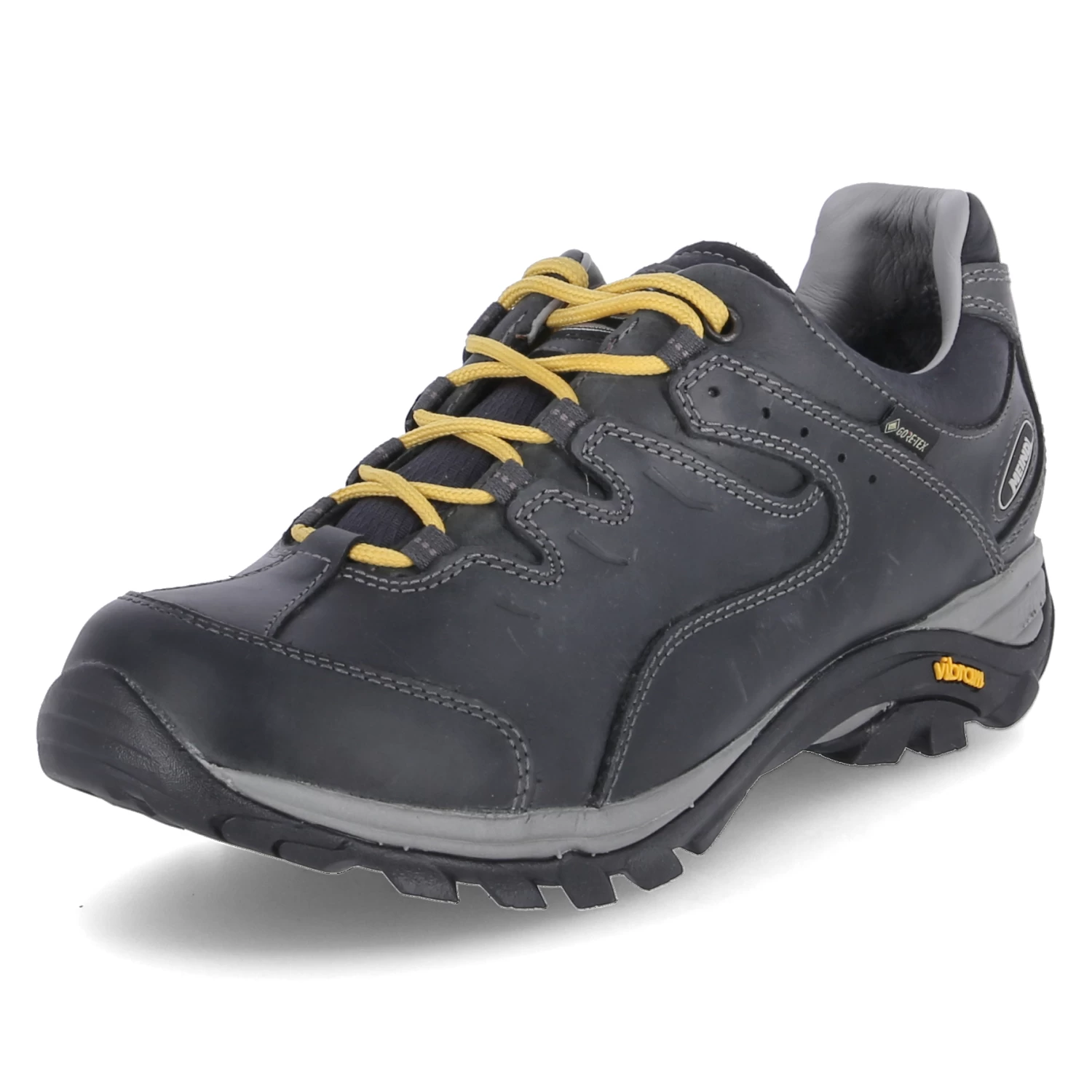 Meindl Herren Outdoorschuhe/ Wanderschuhe CARACAS GTX Schwarz Glattleder – wasserfest und atmungsaktiv (GORE-TEX) – Anziehlasche – gelbe Akzente – dezente Markendetails – verstärkter Zehen- und Fersenbereich – gepolsterter Einstieg – gepolstertes Wechselfußbett – flexible, rutschhemmende Profilsohle