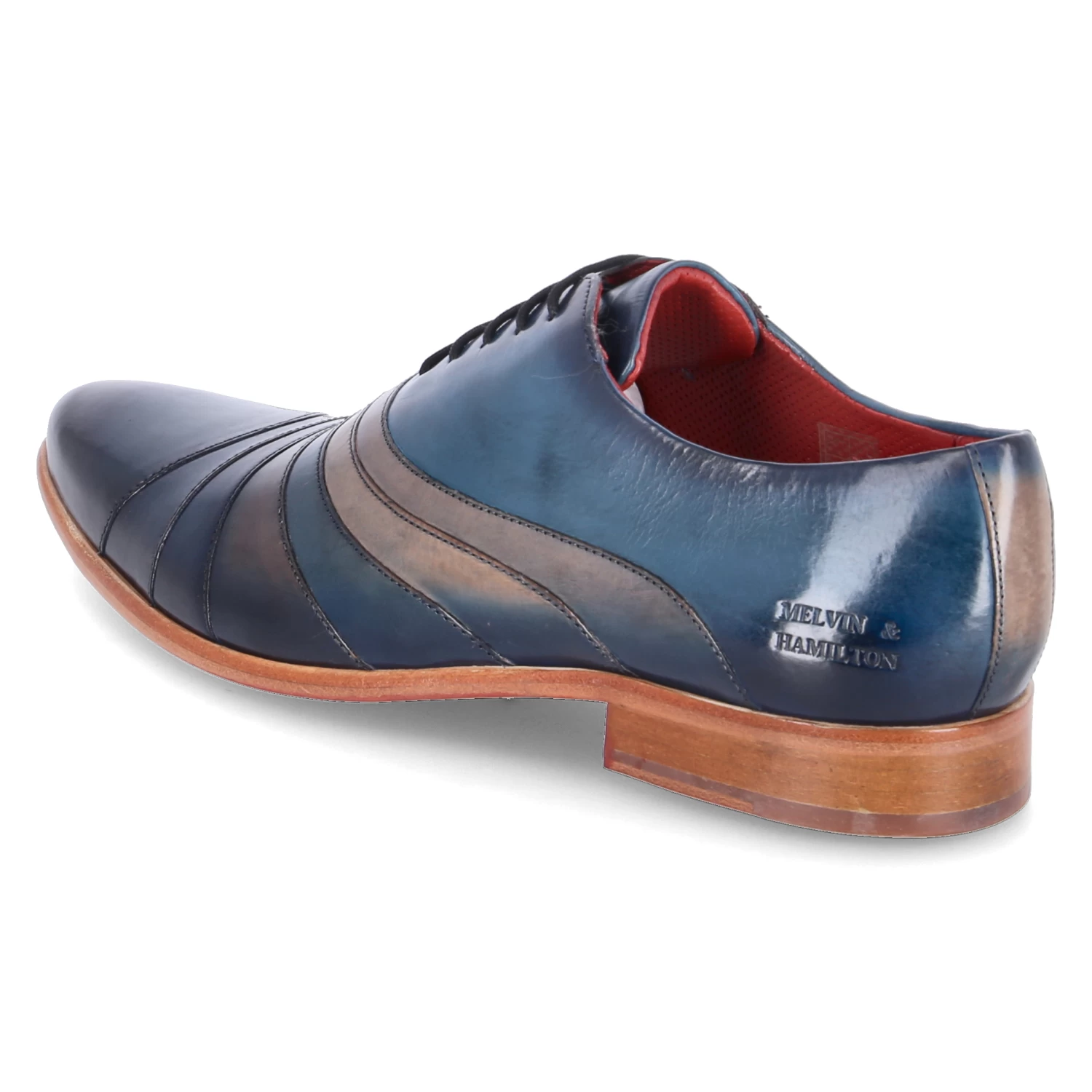 Melvin & Hamilton Herren Schnürschuhe/ Businessschuhe/ Halbschuhe TONI 43 Blau Glattleder – Teile in Lack – Schaftelemente mit Farbverlauf – verstärkte Ferse – Ziernähte – flexible Lederlaufsohle – Lederfutter – gepolsterte Lederdecksohle