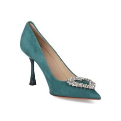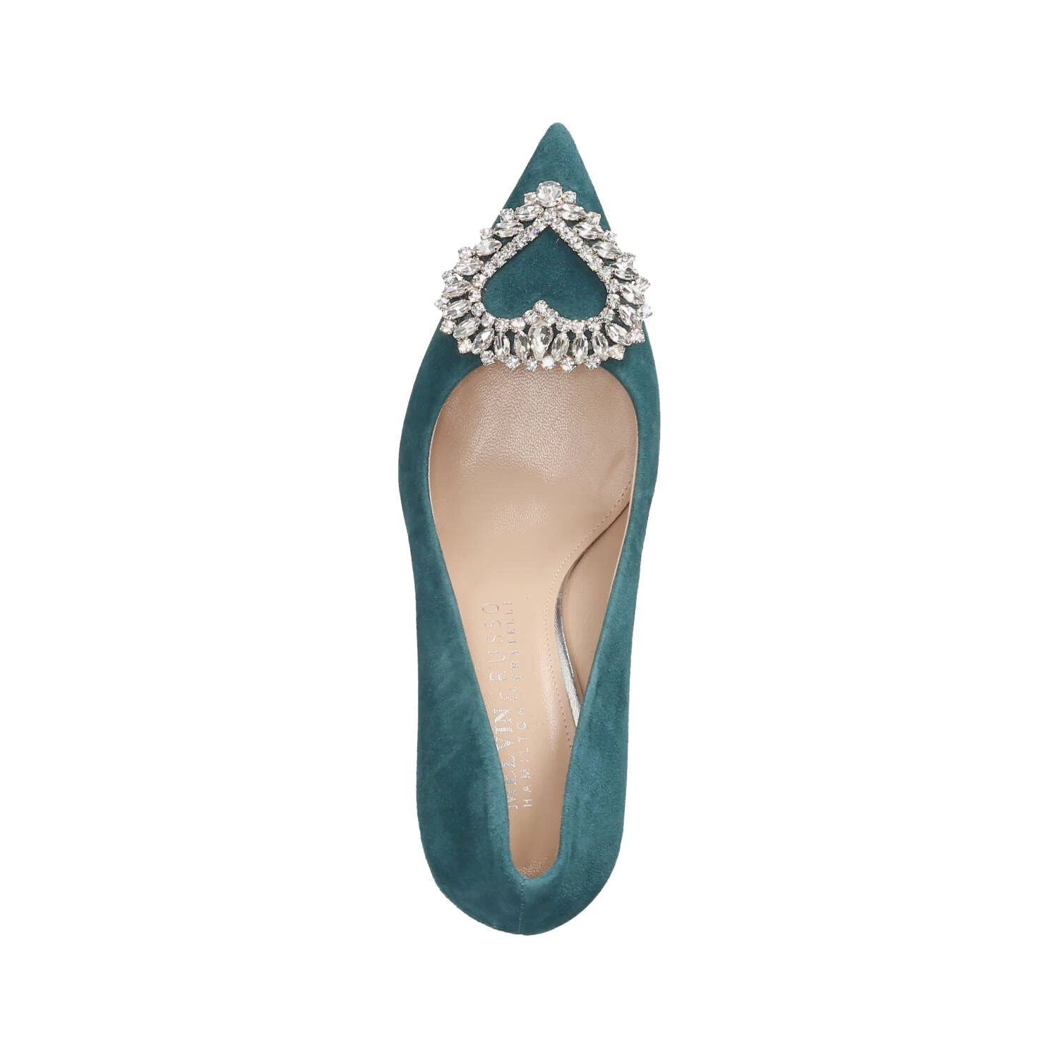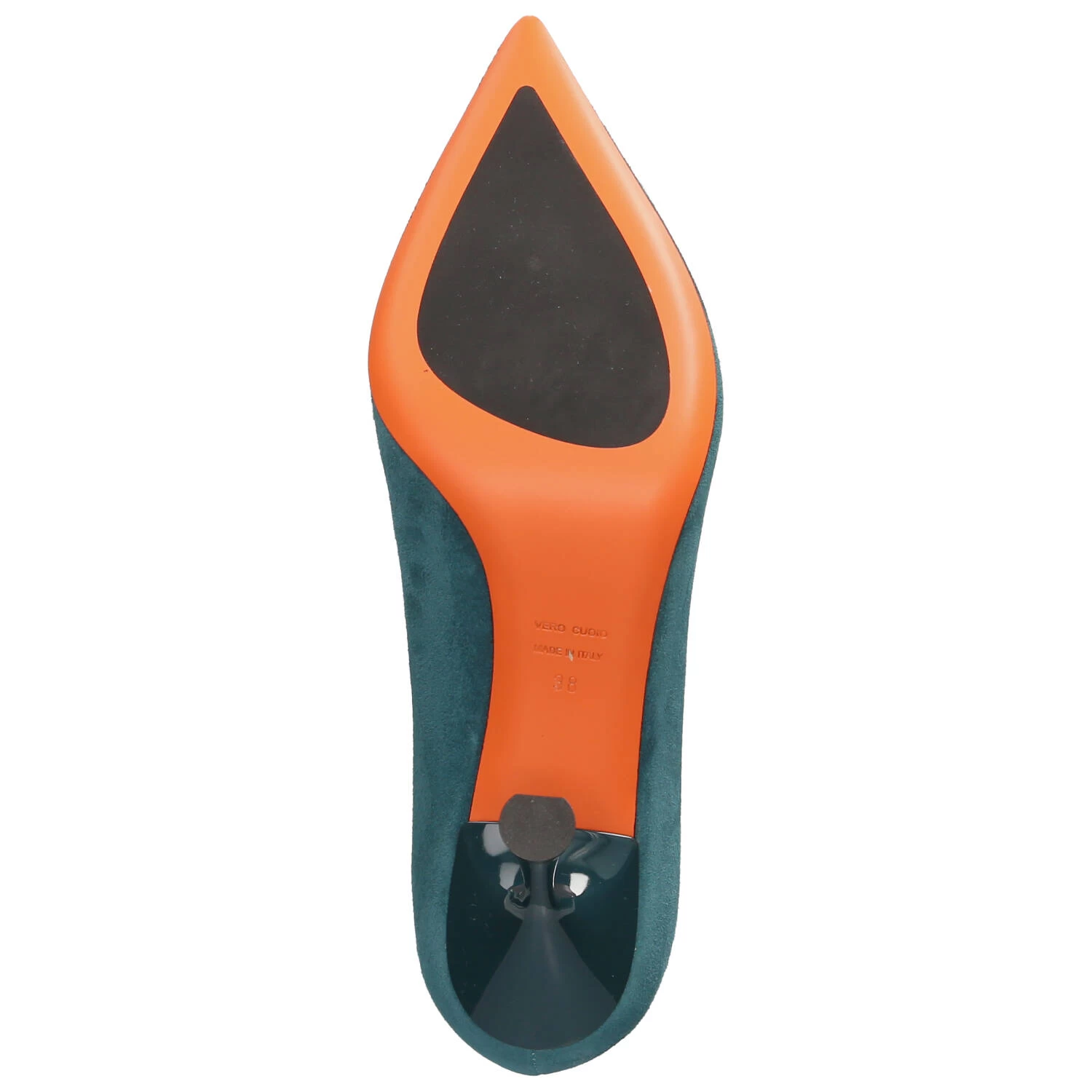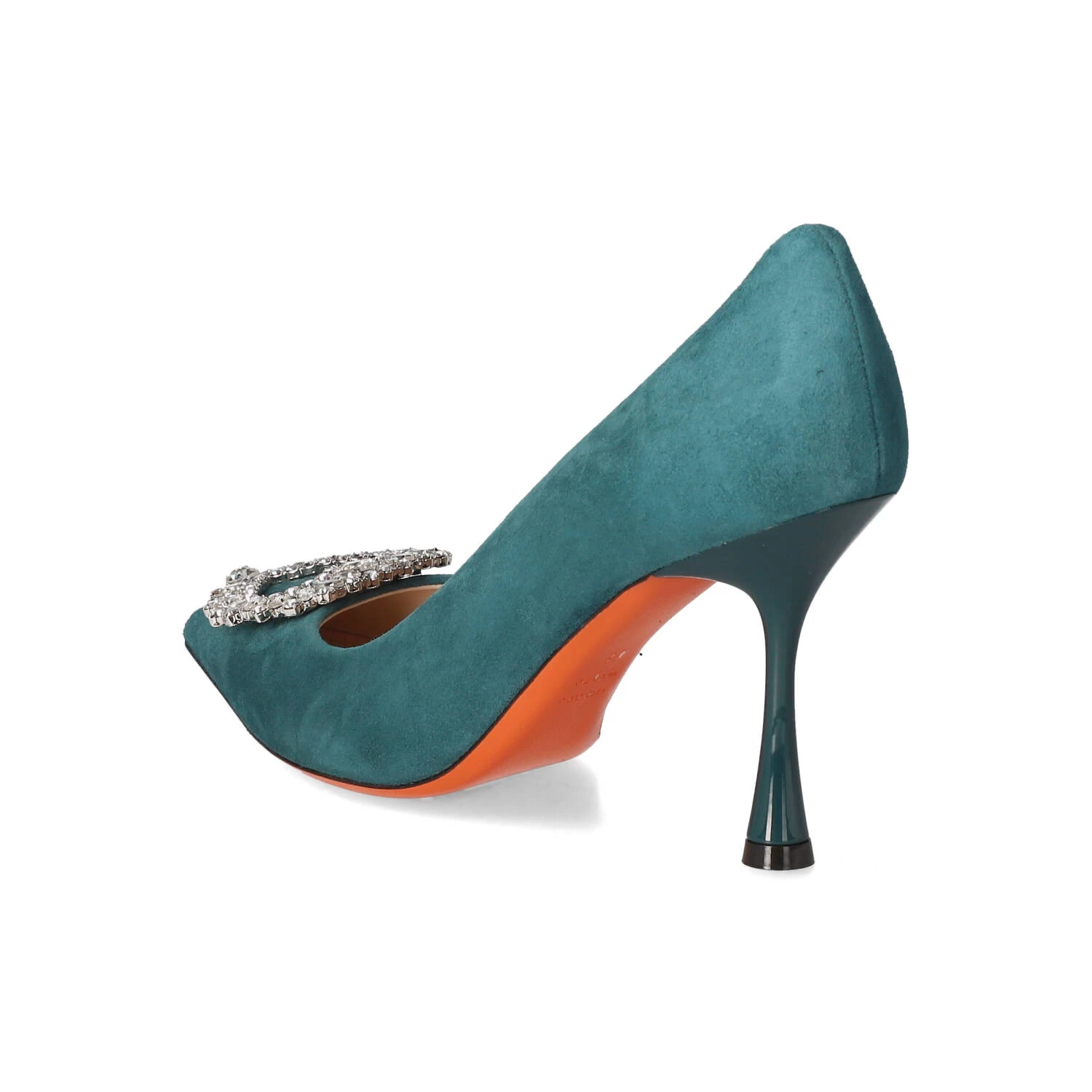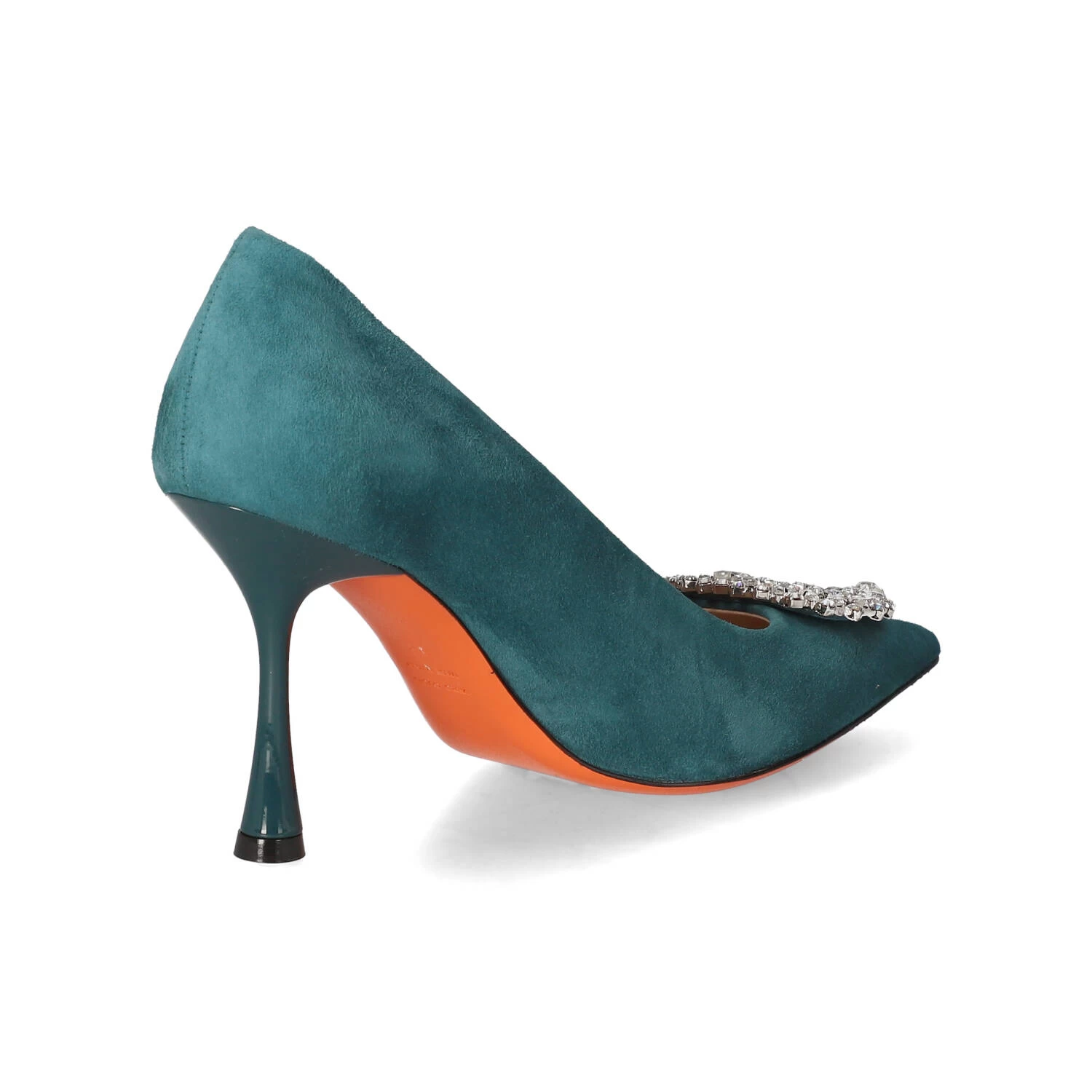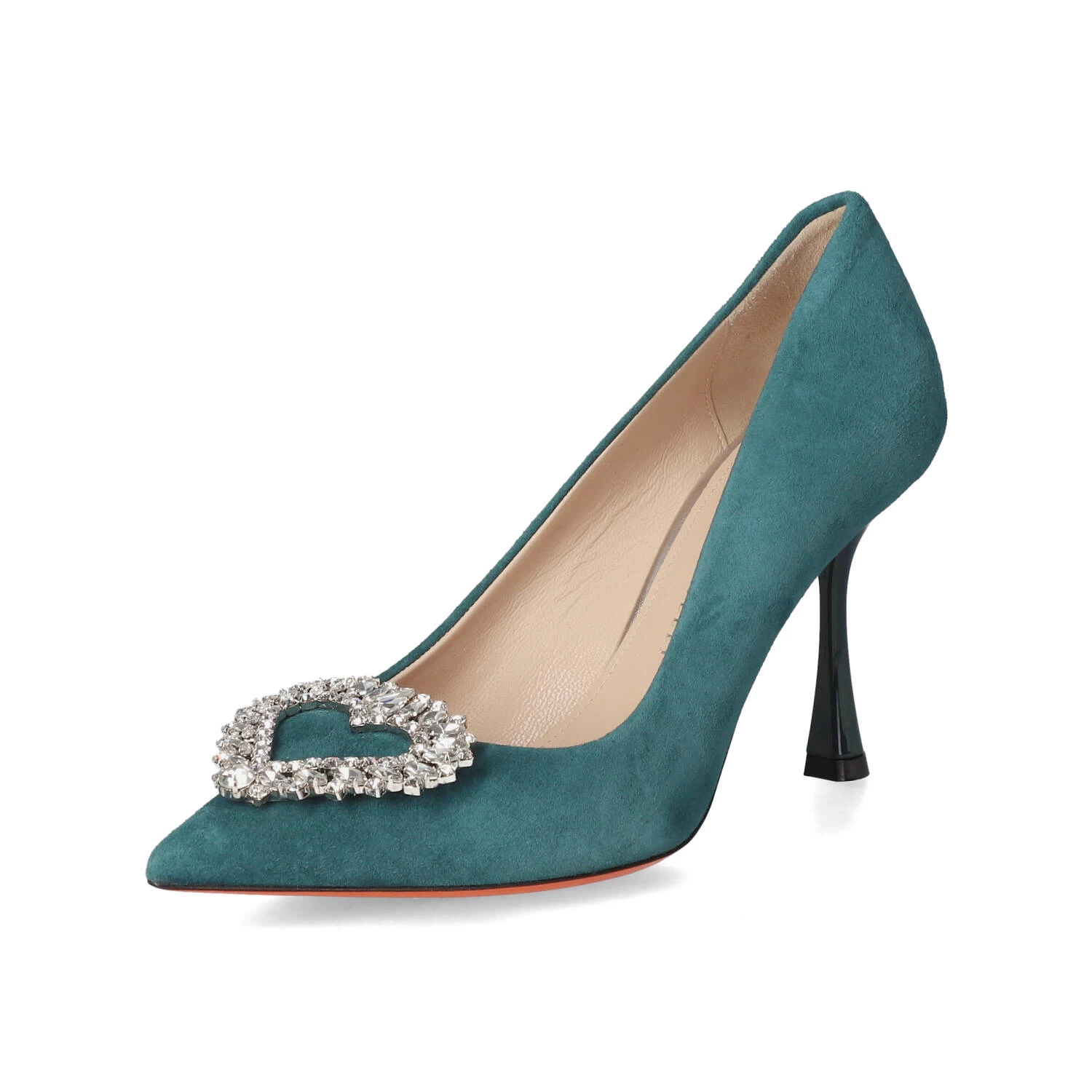 Melvin & Hamilton Damen Pumps ALENA 815 Petrol Rauleder – glitzernde Schmucksteine – verstärkte Ferse – angenehmes Lederfutter – dezent gepolsterte Lederdecksohle – flexible Laufsohle mit leichtem Profil – eleganter Sanduhr-Absatz