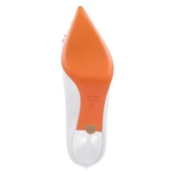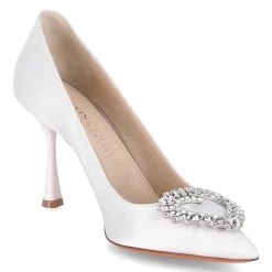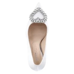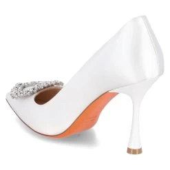 Malvin & Hamilton Damen Brautschuhe/ Pumps CHARLOTTE 1 WeiĂź Textil – seidige Oberfläche – Herzapplikation mit Glitzersteinen – geschwungener Trichterabsatz – gepolstertes LederfuĂźbett – Lederfutter – flexible Lederlaufsohle