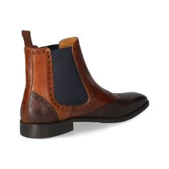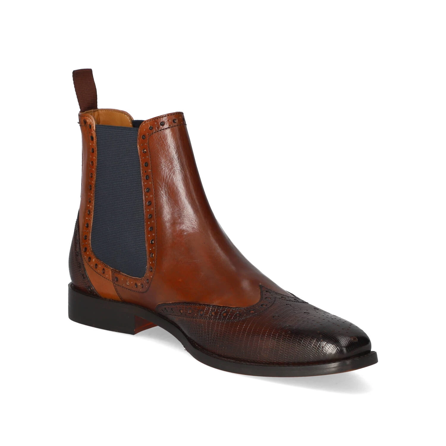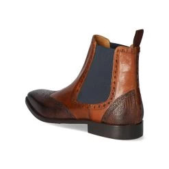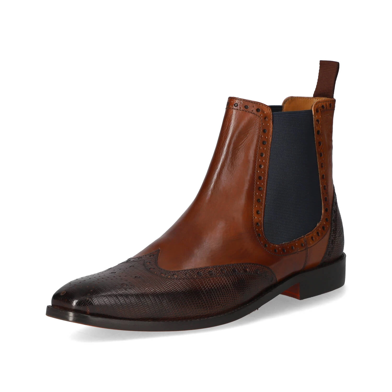 Melvin & Hamilton Herren Stiefeletten/ Chelsea Boots MARTIN 5 Braun Glattleder – Teile in Budapester Lochmuster und Reptiloptik – Elastikeinsätze am Schaft – angenehmes Lederfutter – gepolsterte Lederdecksohle – verstärkter Zehen- und Fersenbereich – flexible, rutschhemmende Profilsohle – flacher Blockabsatz