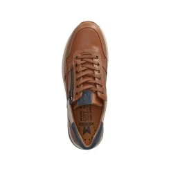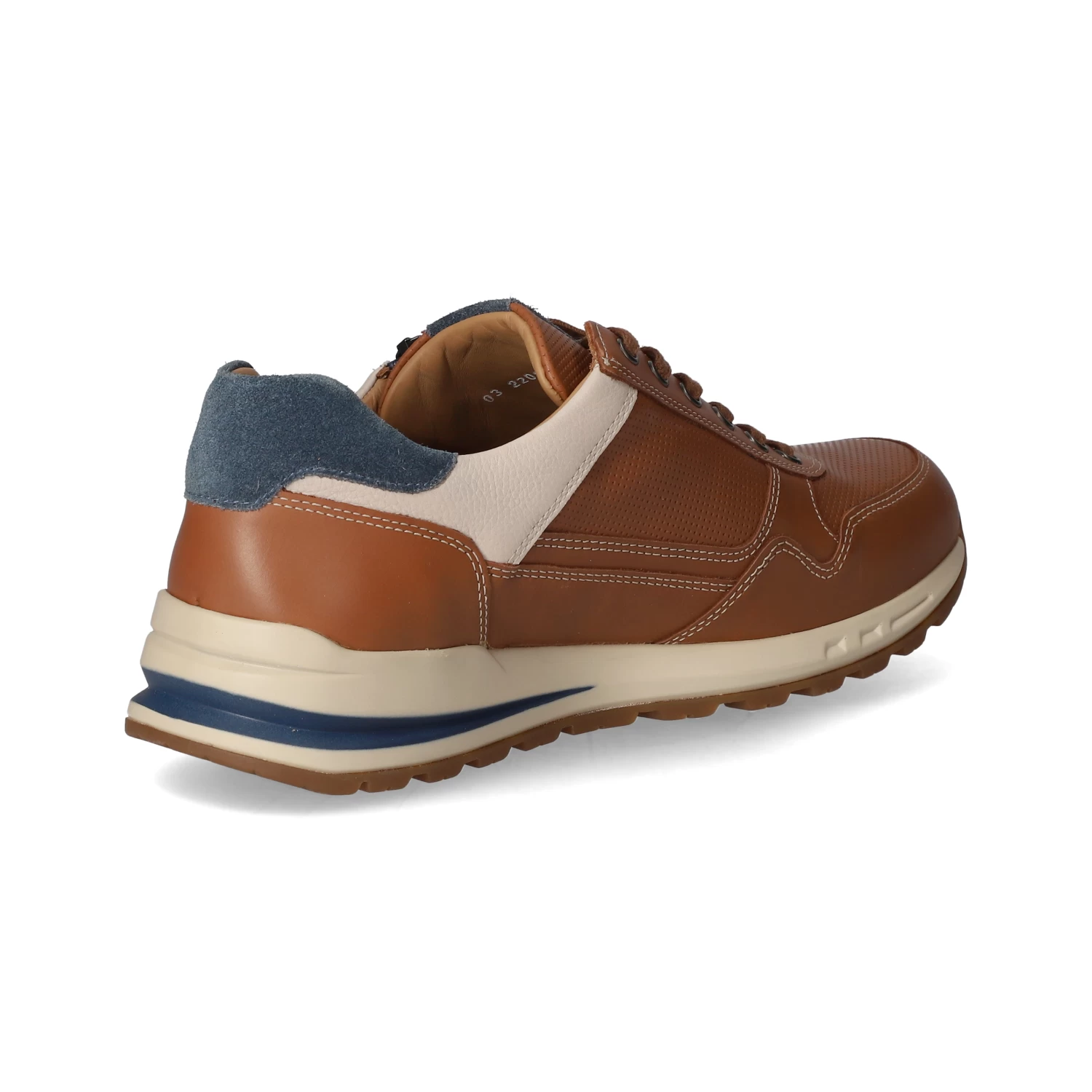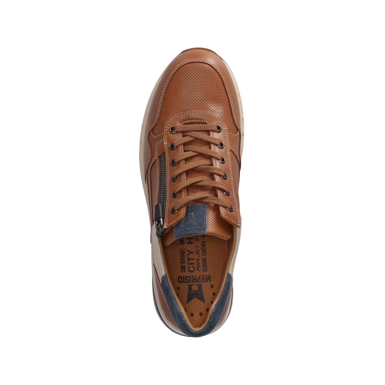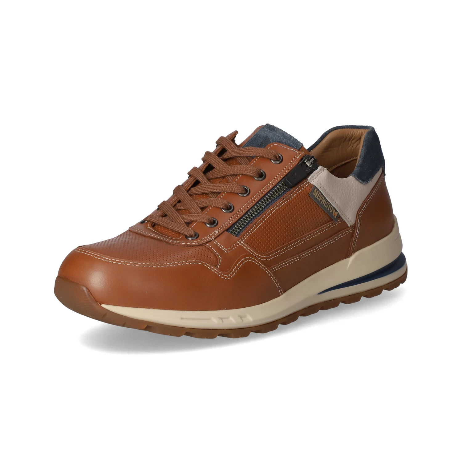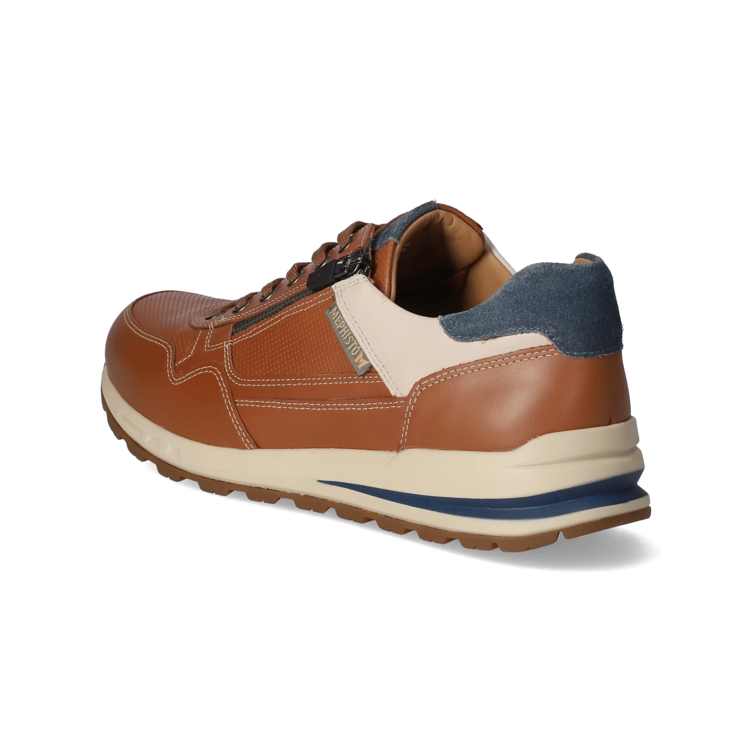 Mephisto Herren Low Sneaker BRADLEY Braun Leder – sportliches Design – dezente Markendetails – neige und blaue Highlights – SchnĂĽrung und ReiĂźverschluss – verstärkter Zehen- und Fersenbereich – gepolsterter Einstieg – leichtes Textil-Lederfutter – gepolsterte Wechseldecksohle – flexible, rutschhemmende Profilsohle