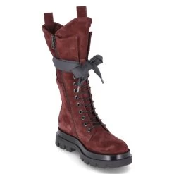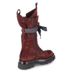 MJUS Damen Stiefel JUPPY Rot Rauleder – SchnĂĽrung und ReiĂźverschluss – Zierschleife umlaufend aus Textil – verstärkter Zehen- und Fersenbereich – flexible, rutschhemmende Laufsohle – ca. 4,5 cm hoher Blockabsatz