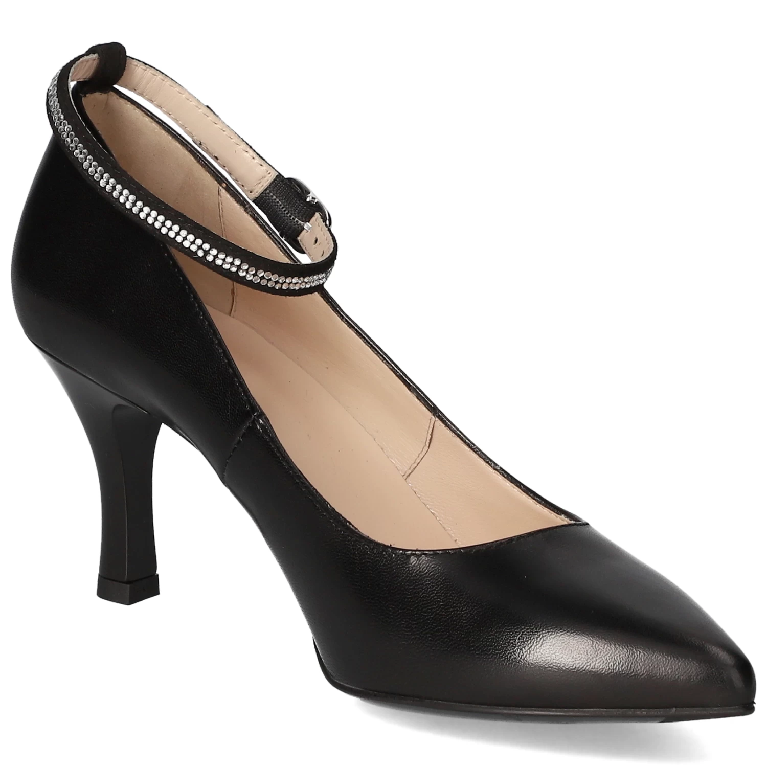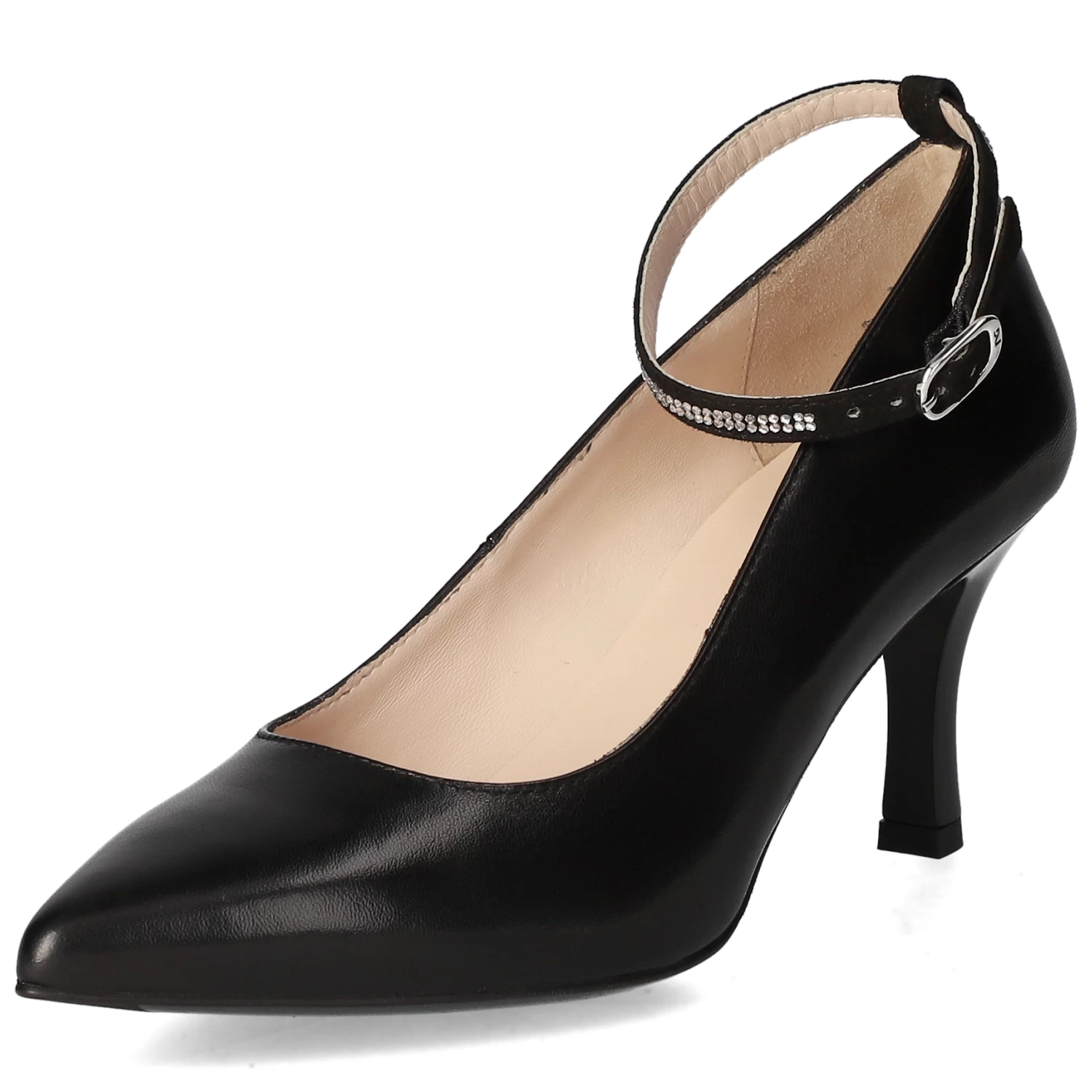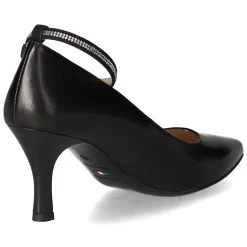 NeroGiardini Damen Pumps Schwarz Glattleder – Riemen mit Glitzersteinen – Schnalle mit elastischem Band – verstärkte Ferse – leicht gepolsterte Lederdecksohle – ca. 8 cm Stilettoabsatz