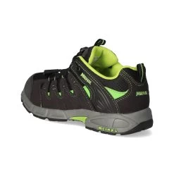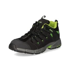Meindl Kinder Outdoorschuhe/ Wanderschuhe RESPOND Schwarz Textil – grĂĽne Akzente – SchnĂĽrsenkel mit Schnellverschluss – zwei Anziehlaschen – flexible, rutschhemmende Profilsohle – gepolsterter Einstieg – verstärkter Knöchel-, Zehen- und Fersenbereich – gepolsterte und herausnehmbare Decksohle – wasserfest und atmungsaktiv