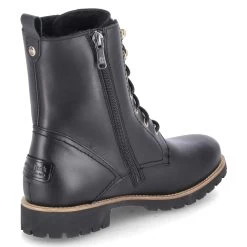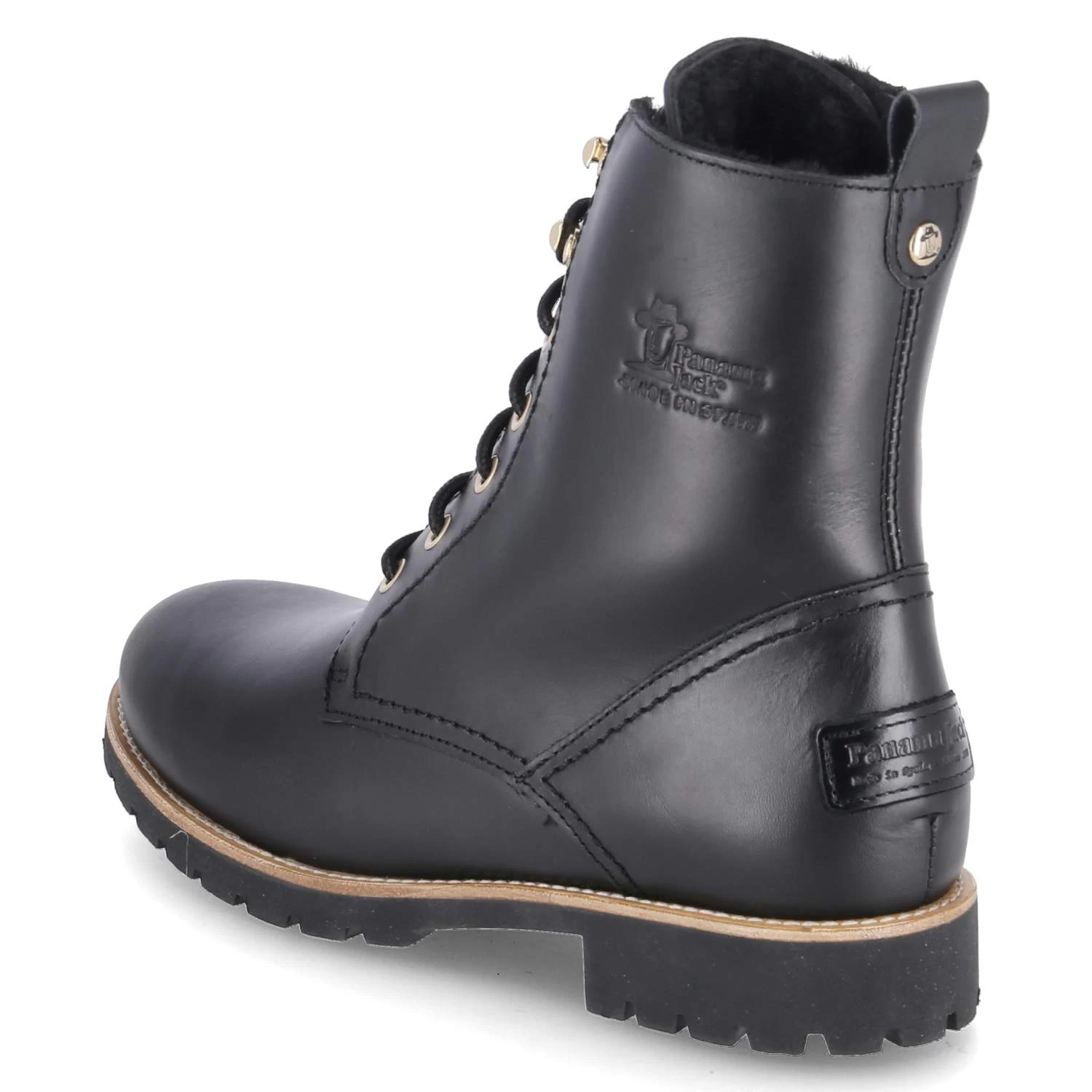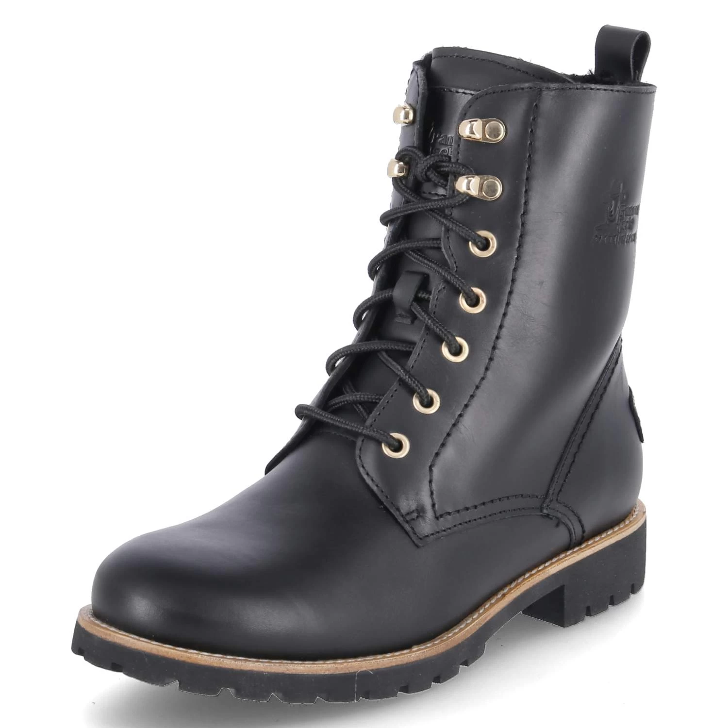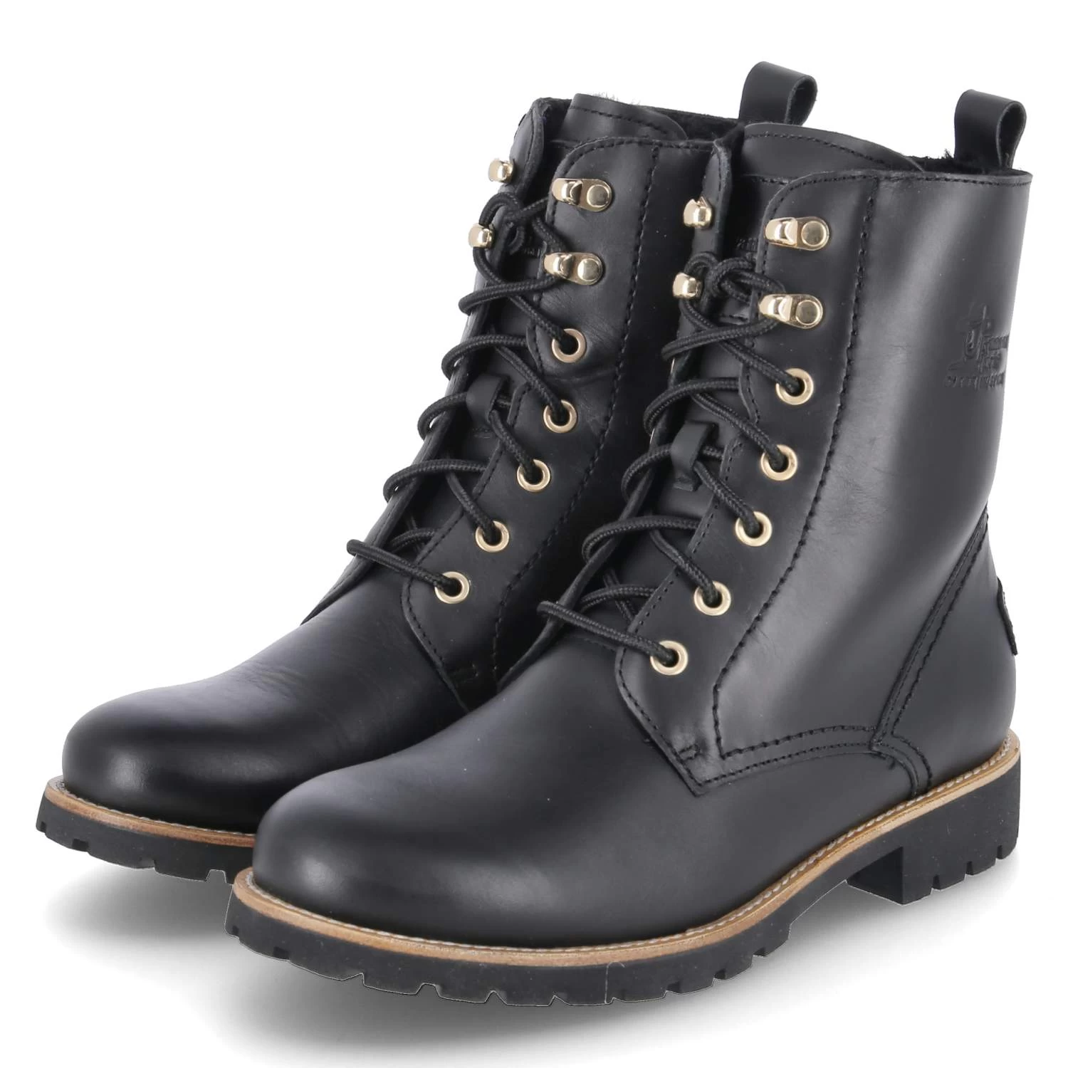 Panama Jack Damen Schnürboots/ Winter-Stiefeletten FARA IGLOO TRAV B1 Schwarz Glattleder – wasserfest – Schnürung und Reißverschluss – Anziehlasche – gelabelt – verstärkte Ferse – flexible, rutschhemmende Profilsohle – warmes Lammfellfutter – herausnehmbare Decksohle