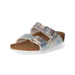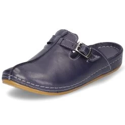 Beliana Damen Pantoletten Beige Glattleder – zwei Klettverschlussriemen mit Zierschnalle – vorgeformtes Kork-TieffuĂźbett mit Lederbezug – Profilsohle