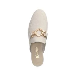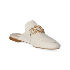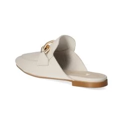 Kaerlek Damen Pantoletten VENERE Beige Glattleder – zierende Kettenelemente – leicht gepolstertes Lederdecksohle – flexible, rutschhemmende Laufsohle mit leichtem Profil