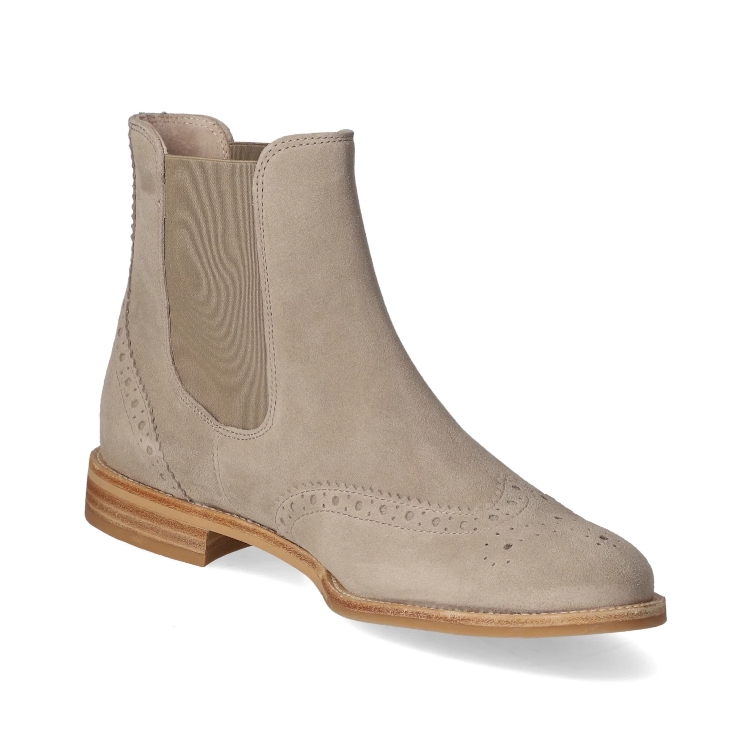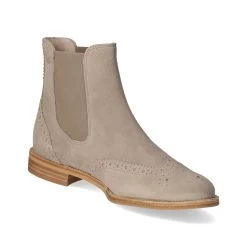 Paul Green Damen Chelsea Boots/ Stiefeletten Grau Rauleder – natĂĽrlicher Look – seitliche Elastikeinsätze am Schaft – modisches Budapester Lochmuster – angenehmes Lederfutter – leicht gepolsterte Decksohle – flexible und rutschhemmende Profilsohle