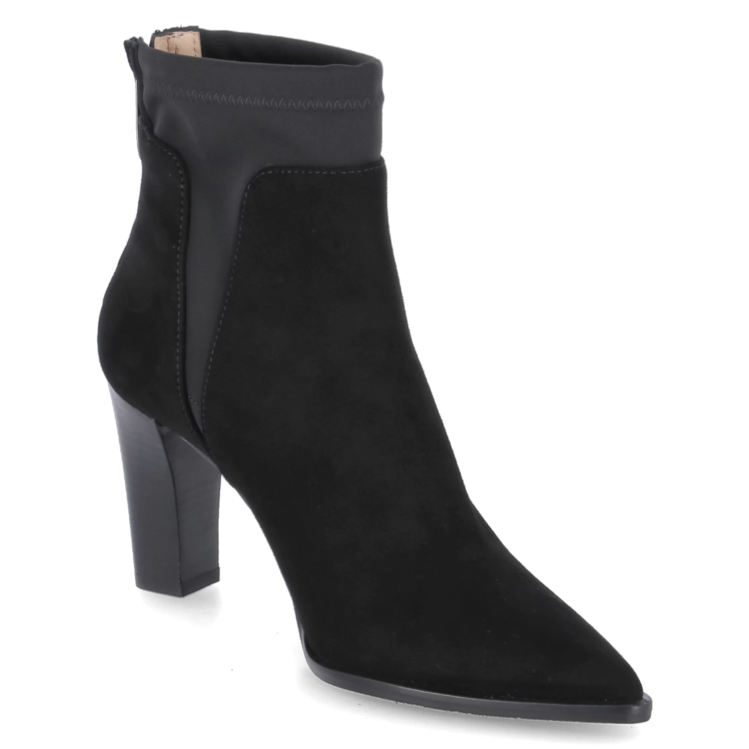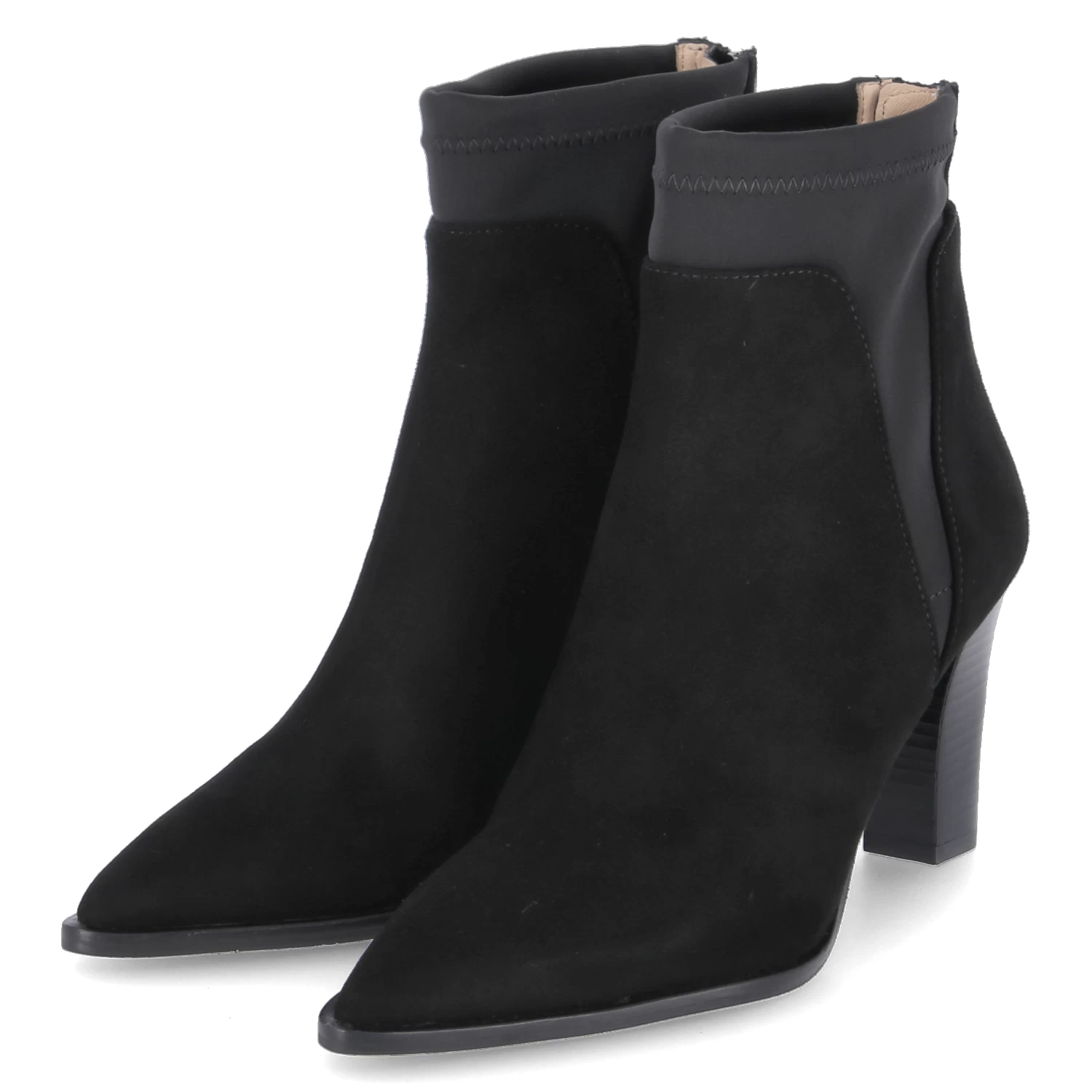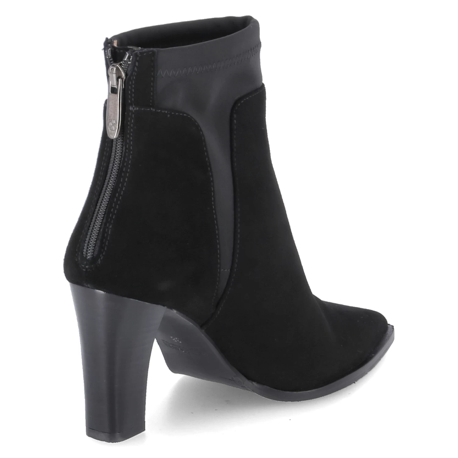 Peter Kaiser Damen Stiefeletten AILIA Schwarz Leder-Textil-Mix – Reißverschluss an der Ferse – Ziernähte – samtige Oberfläche – gepolsterte Lederdecksohle – verstärkter Fersenbereich – flexible Laufsohle – ca. 8 cm Blockabsatz