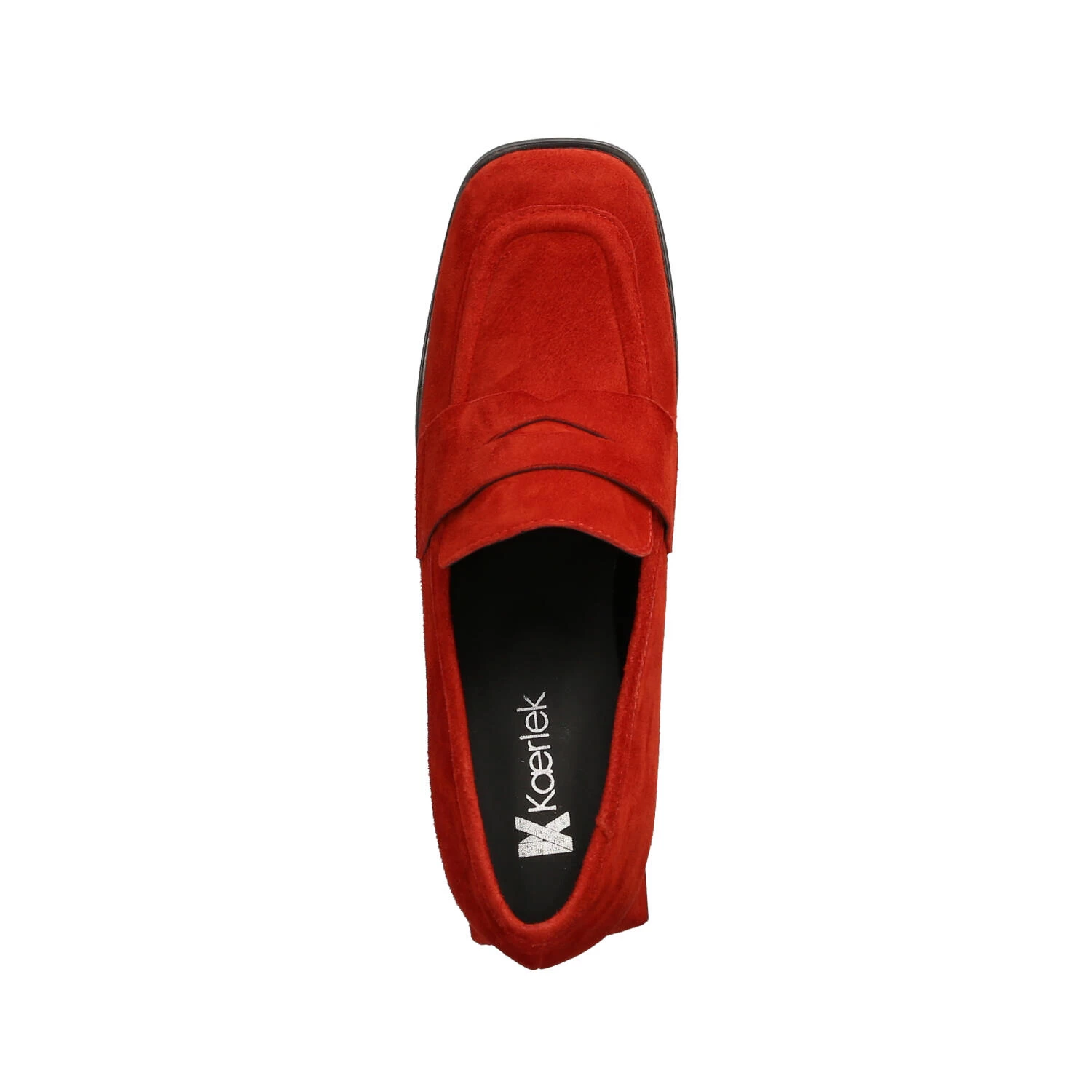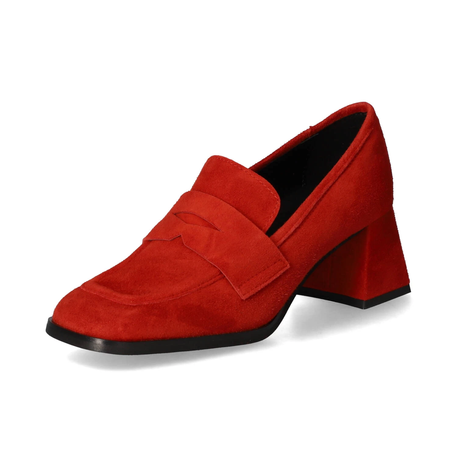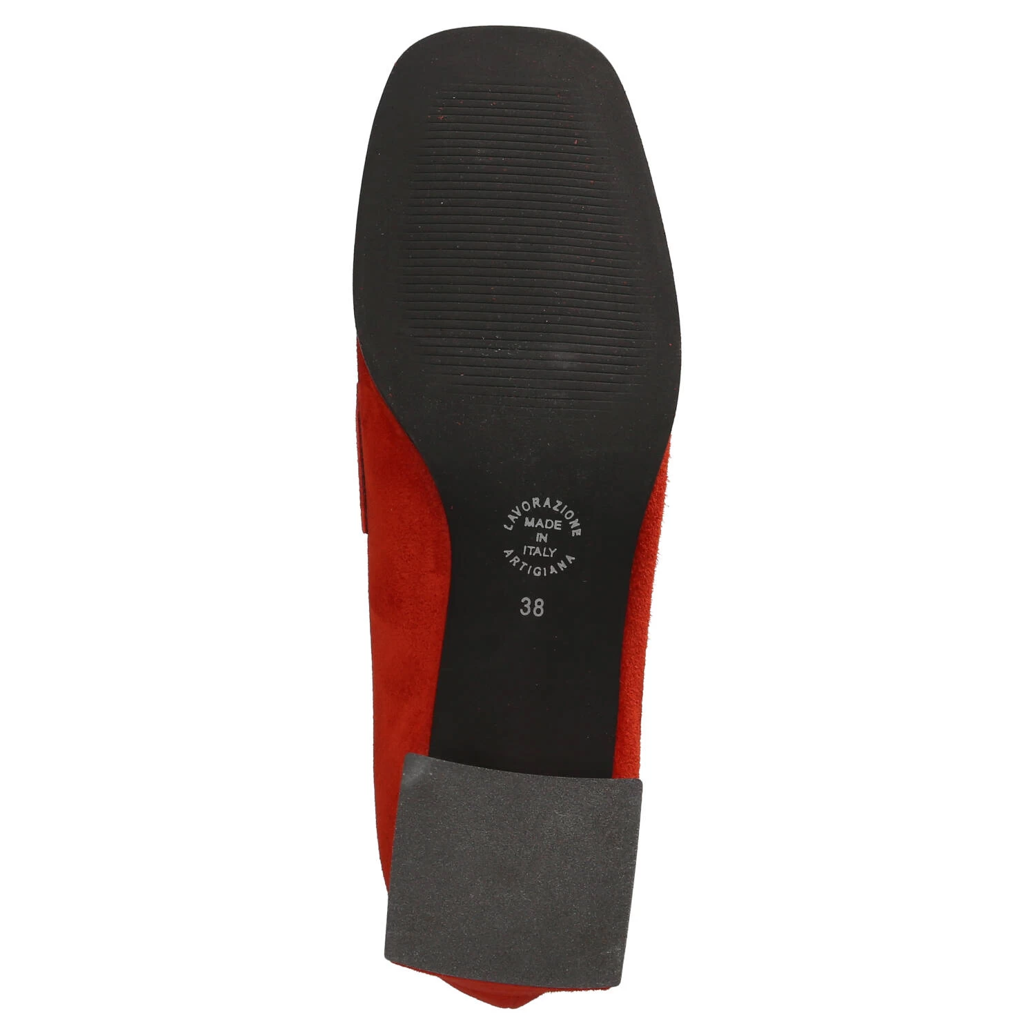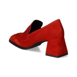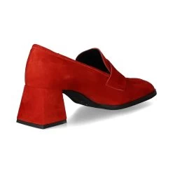 Kaerlek Damen Pumps/ Hochfrontpumps BILLY Rot Rauleder – klassischer Zierriemen – modische Wulstnaht – verstärkter Zehen- und Fersenbereich – leichtes Leder-Synthetikfutter – leicht gepolsterte Decksohle – flexible, rutschhemmende Laufsohle mit leichtem Profil – uniquer Blockabsatz