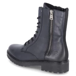 Remonte Damen Schnürstiefeletten/ Combat Boots Blau Glattleder – Schnürung und Reißverschluss – Teddyfutter – herausnehmbare Decksohle – flexible und rutschhemmende Laufsohle – verstärkte Ferse mit Anziehlasche – Farbe kann schwarz wirken