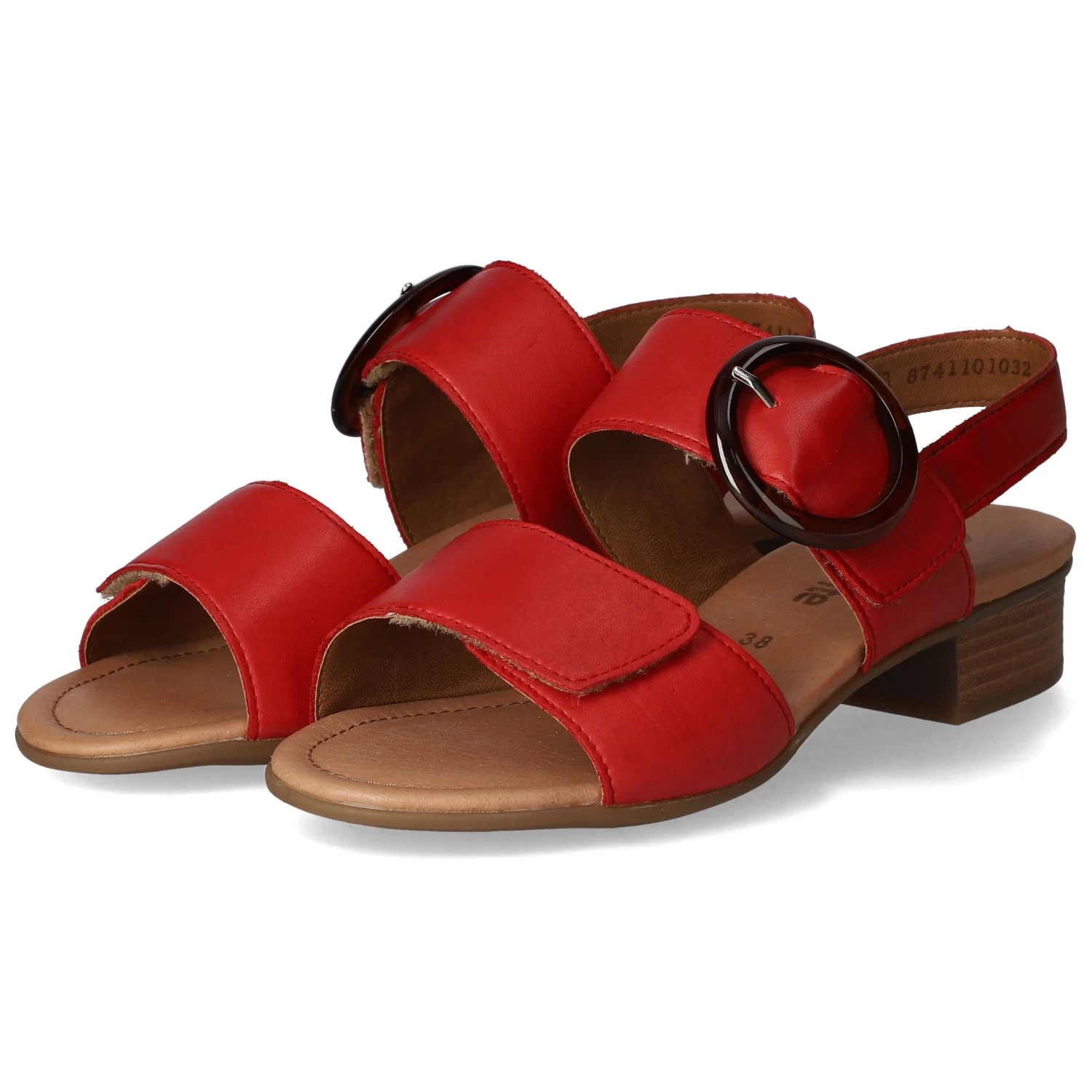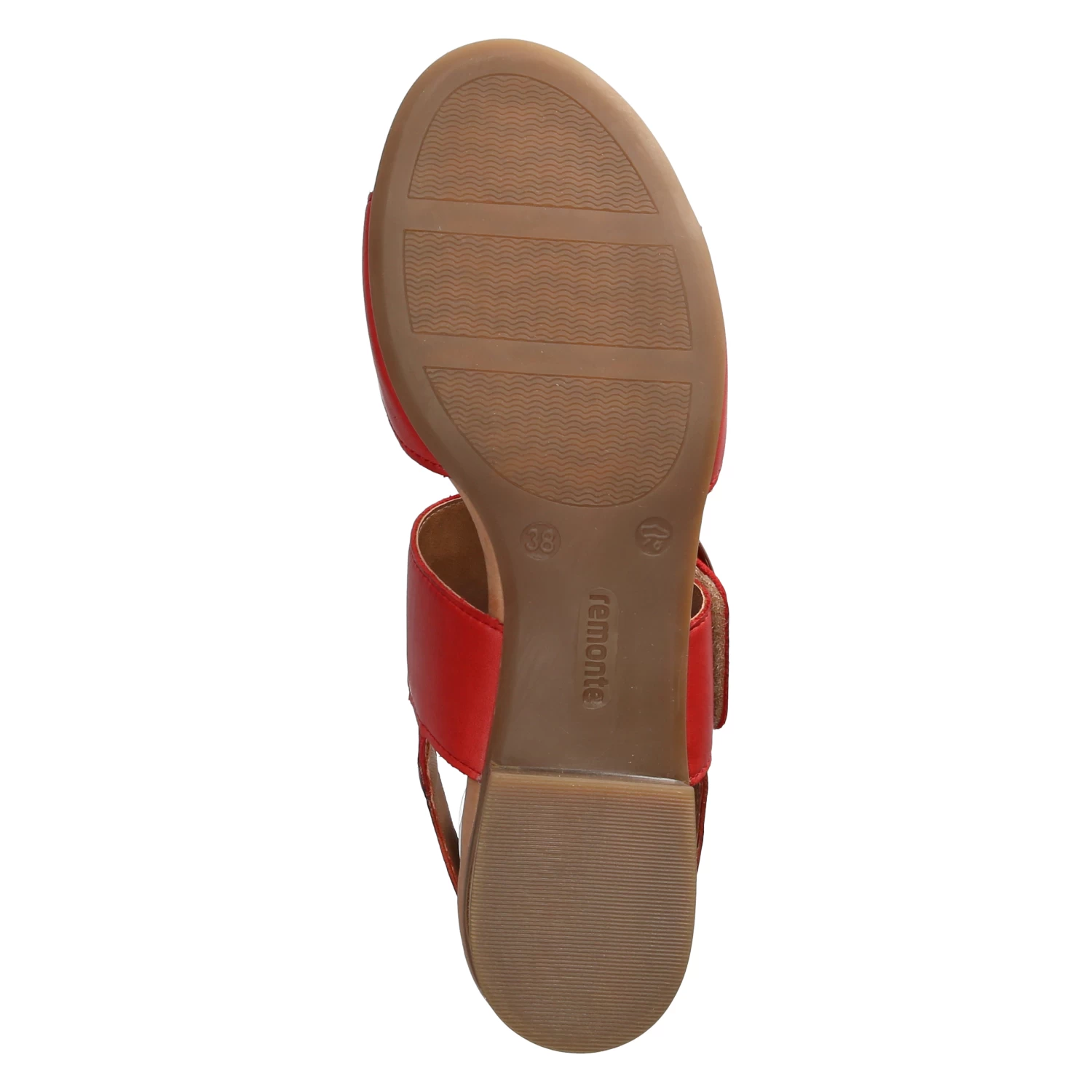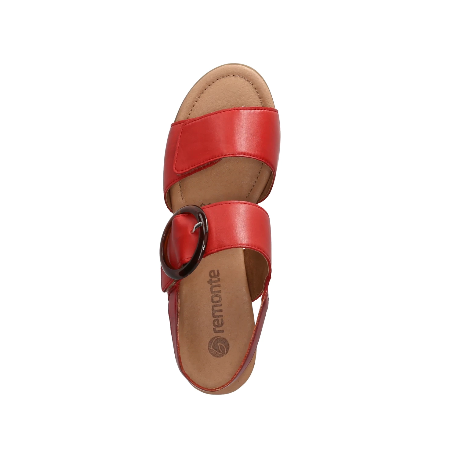 Remonte Damen Sandalen Rote Glattleder – praktische Klettriemen – moderne Zierschnalle – gepolsterte Lederdecksohle – flexible, rutschhemmende Laufsohle mit leichtem Profil