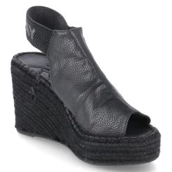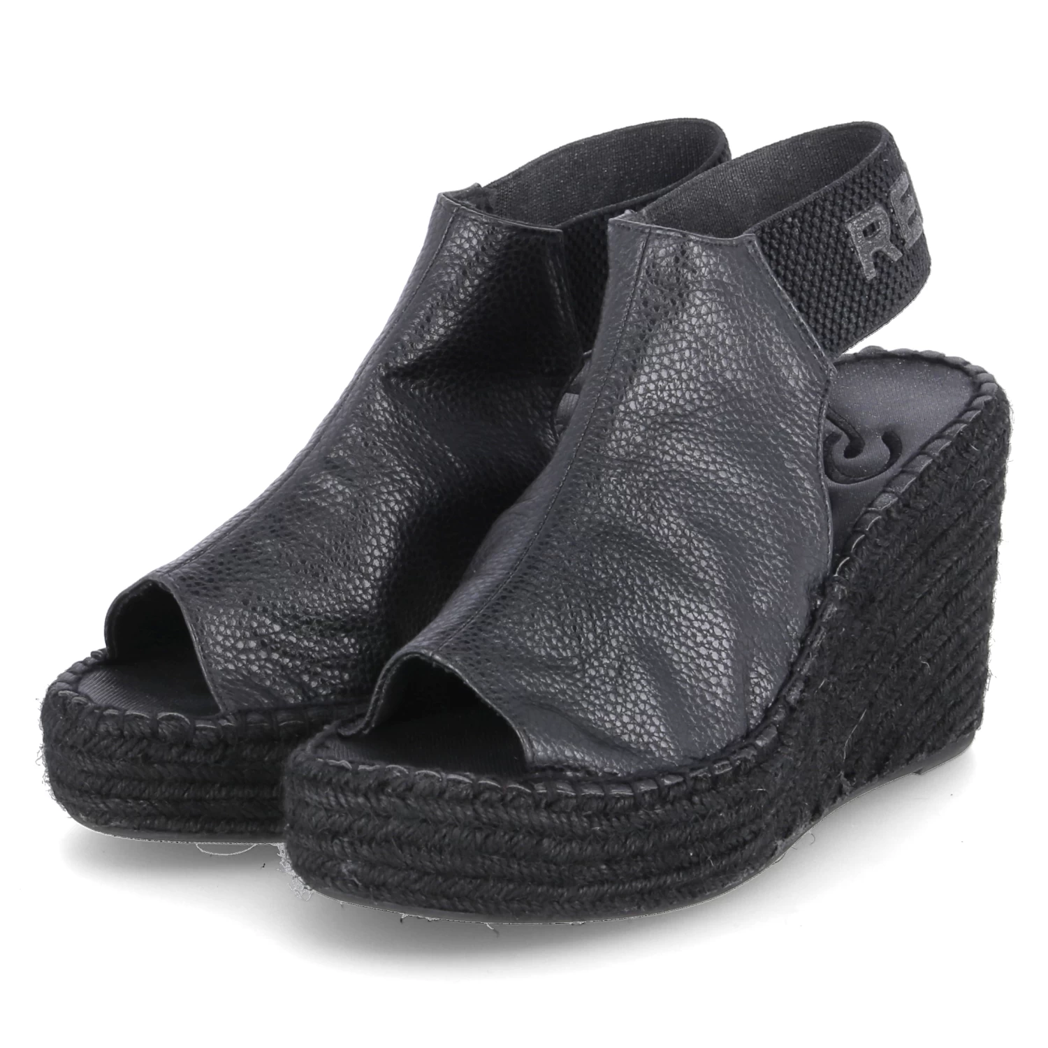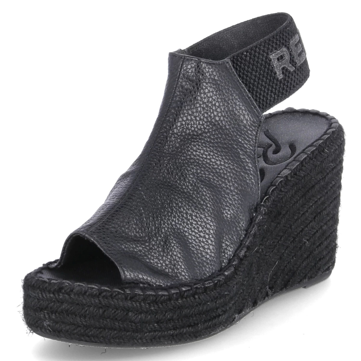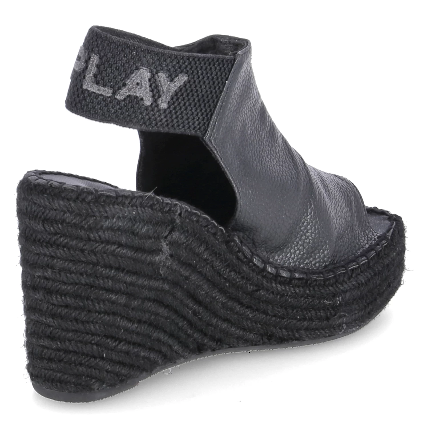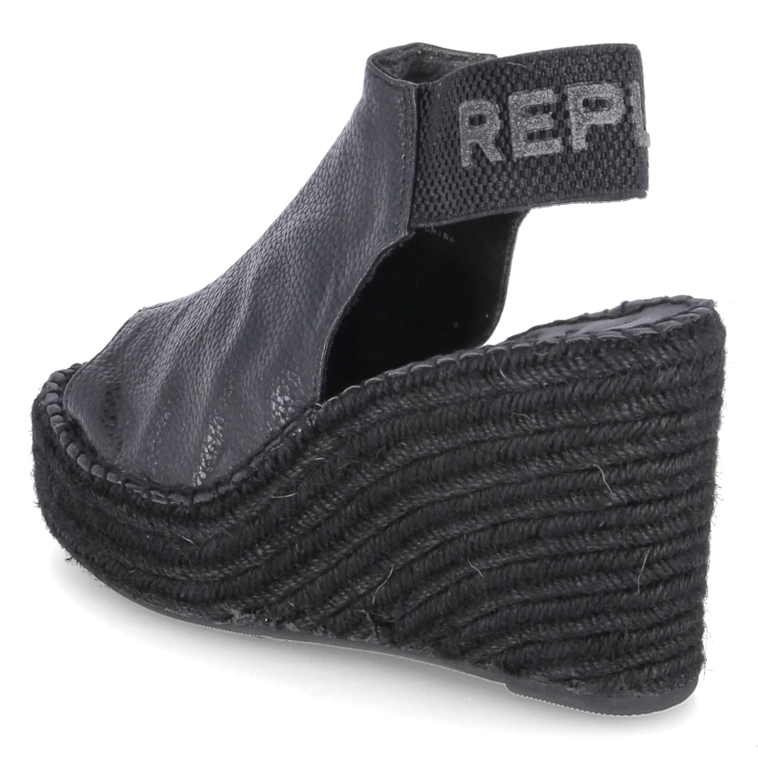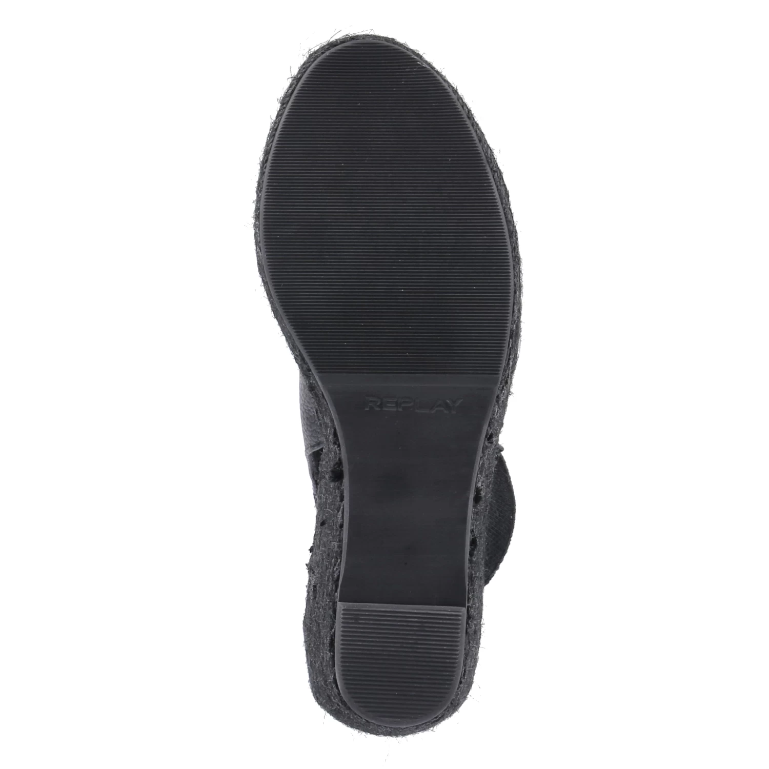 Replay Damen Keilsandaletten TYNE Schwarz Kunstleder – elastischer Riemen mit Markenprint – rutschhemmende Laufsohle – geflochtener Sohlenrahmen