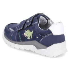 Ricosta Jungen Halbschuhe/ Klettschuhe BOBI Blau Leder-Synthetik-Mix -seitliche, blinkende LEDs und Saurierprint – zwei Klettriemen – gepolsterter Einstieg – verstärkter Zehen- und Fersenbereich – flexible, rutschhemmende Laufsohle – reflektierendes Frontelement – Wechselfußbett