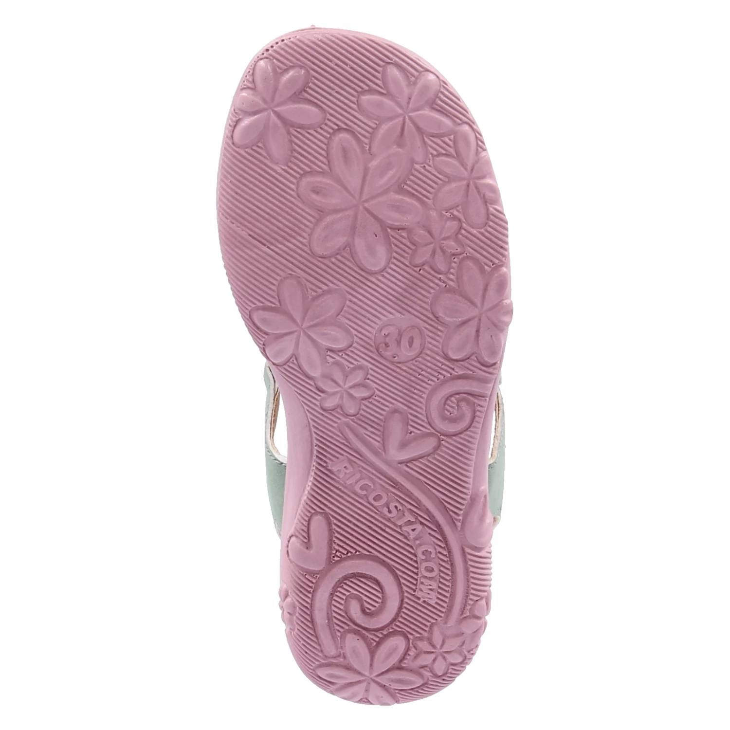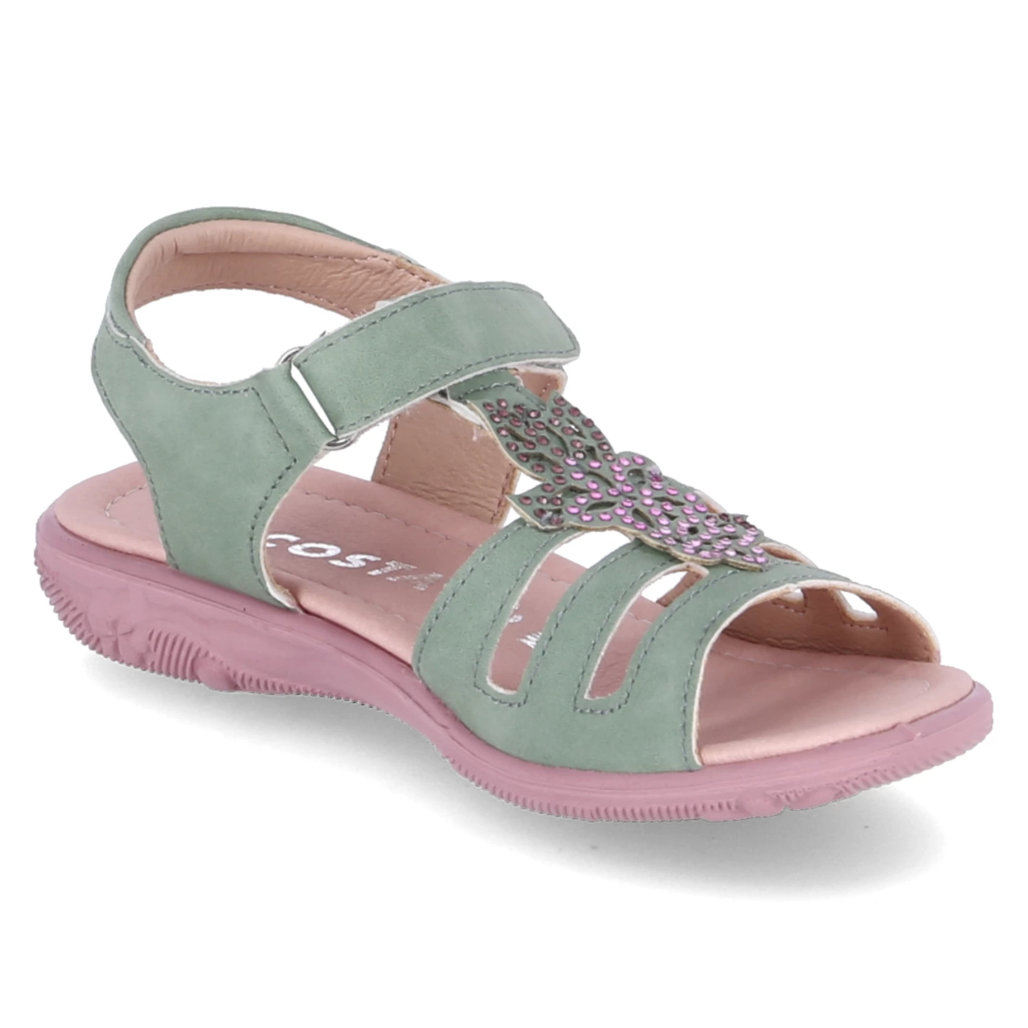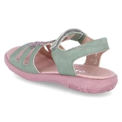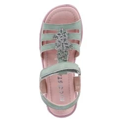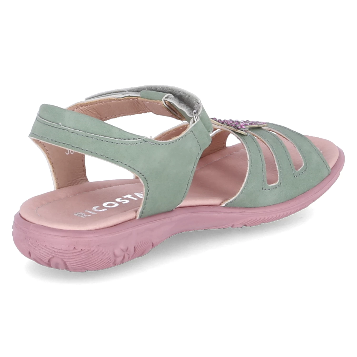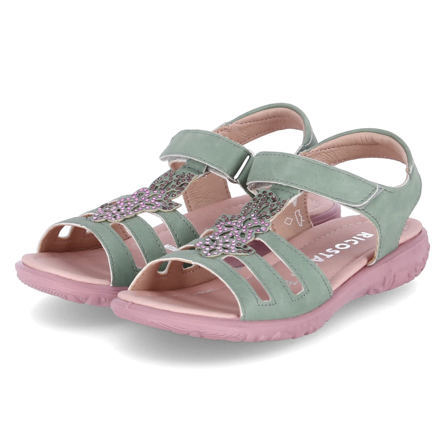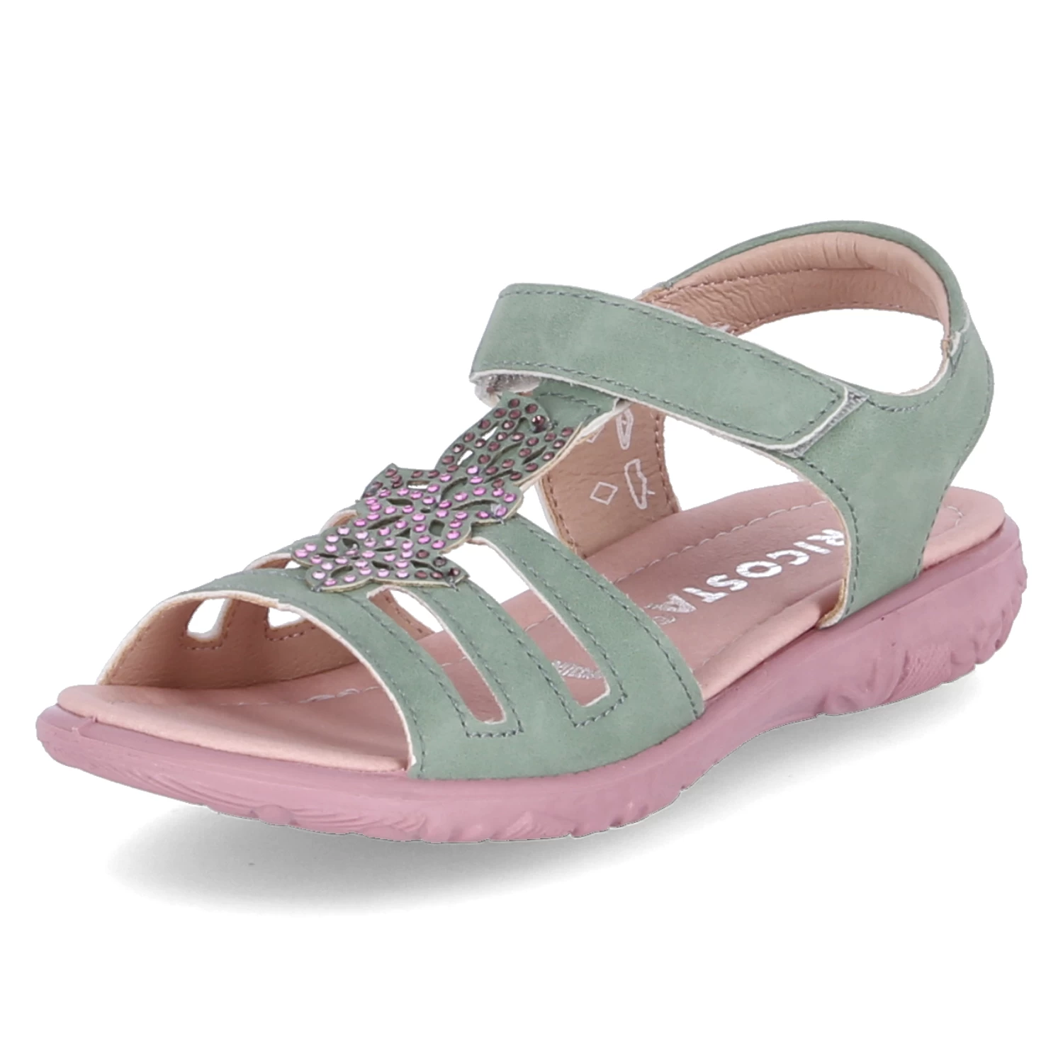 Ricosta Mädchen Sandaletten/ Sandalen CELINA GrĂĽn Kunstleder – Klettverschlussriemen – Steg mit rosa Glitzersteinen – Riemen mit kleinem Fersenpolster – gepolsterte Decksohle – flexible, rutschhemmende Laufsohle