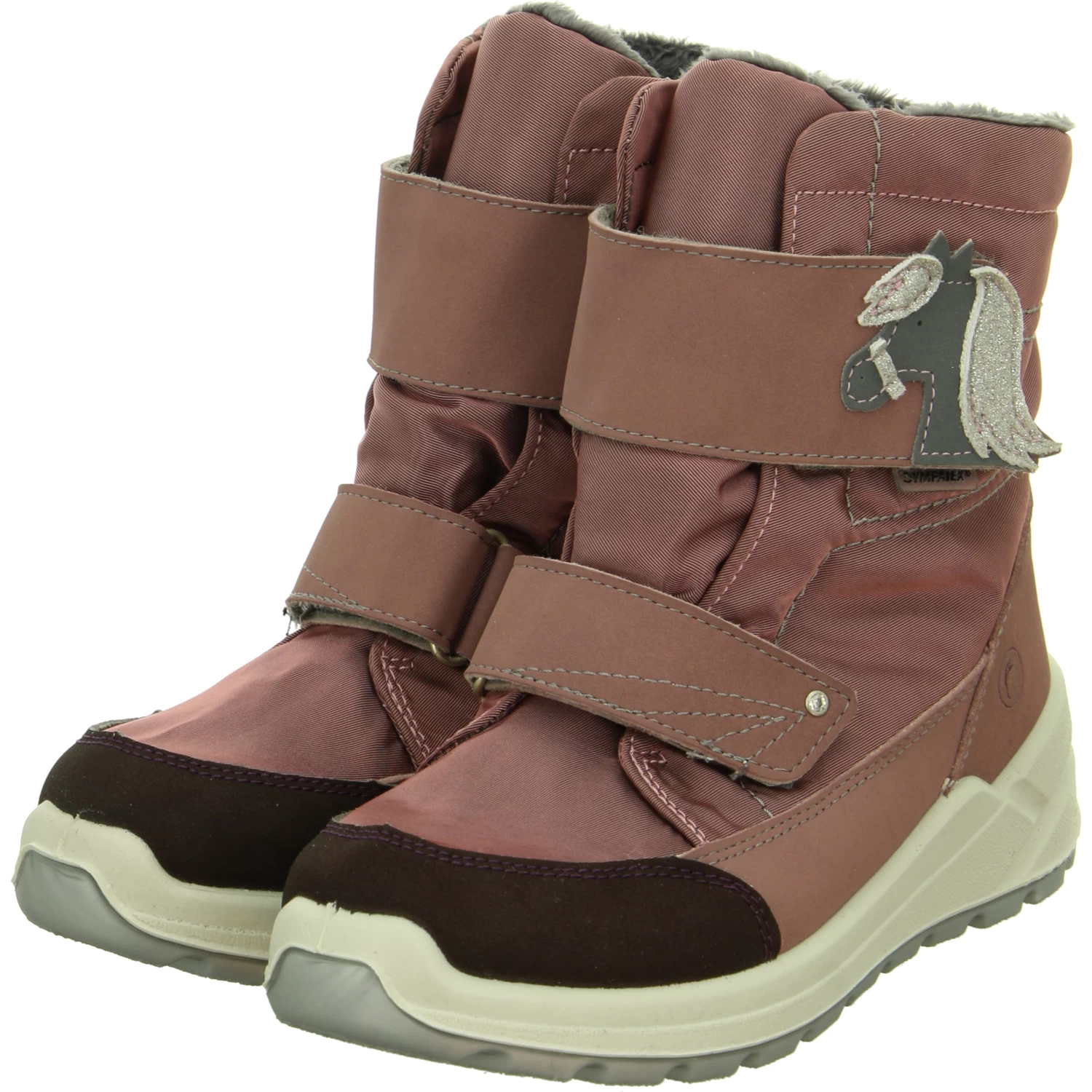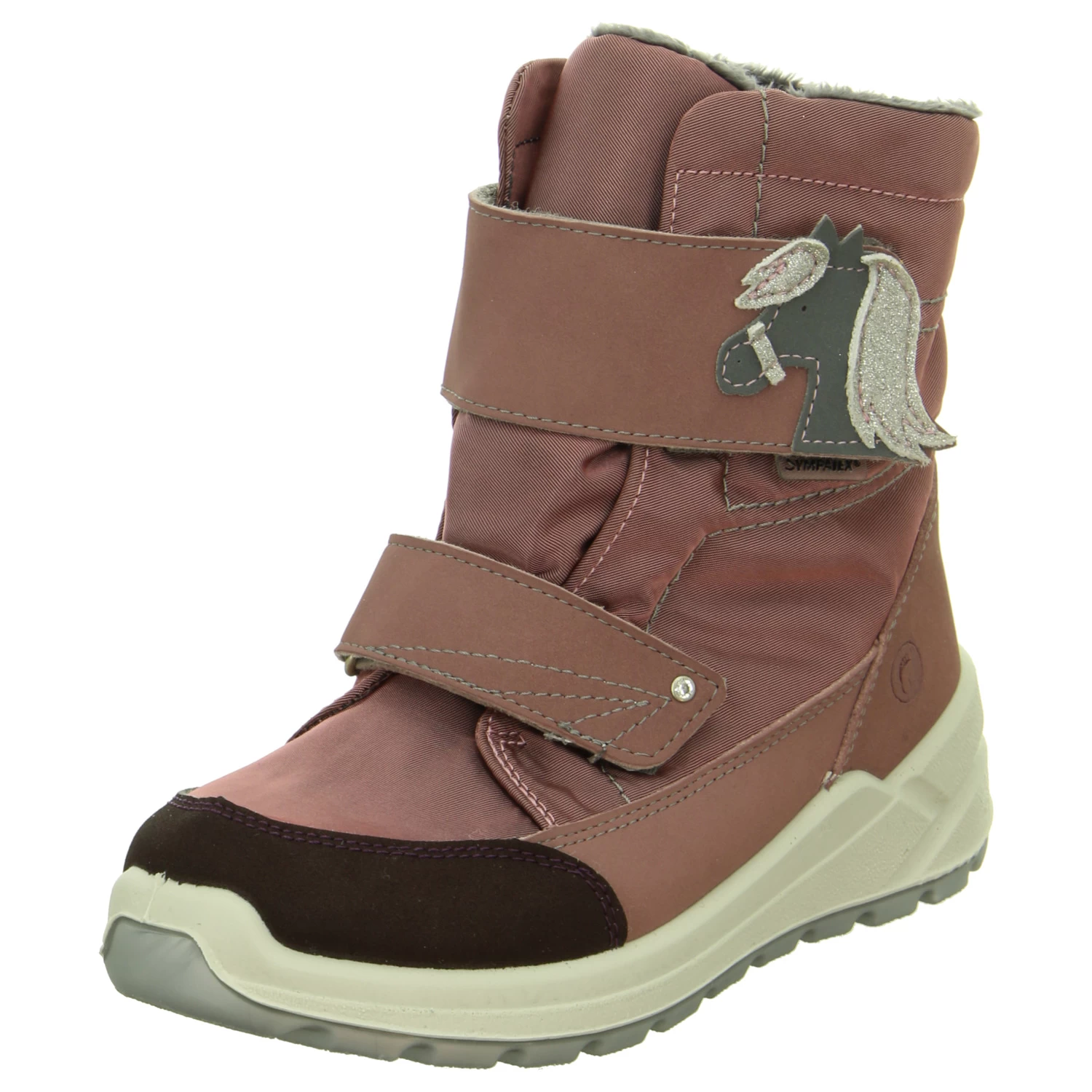 Ricosta Kinder Stiefeletten/ Winterstiefeletten GAREI Rosa Textil-Synthetik-Mix – zwei KlettverschlĂĽsse – Ziernähte – gelabelt – Pferdedetail, glitzernd am oderen Riemen – Warmfutter – gepolstertes WechselfuĂźbett – verstärkter Zehen- und Fersenbereich – flexible, rutschhemmende Laufsohle – SympaTex (wasserfest, winddicht, atmungsaktiv) – zum Teil aus recycelten Materialien – waschbar