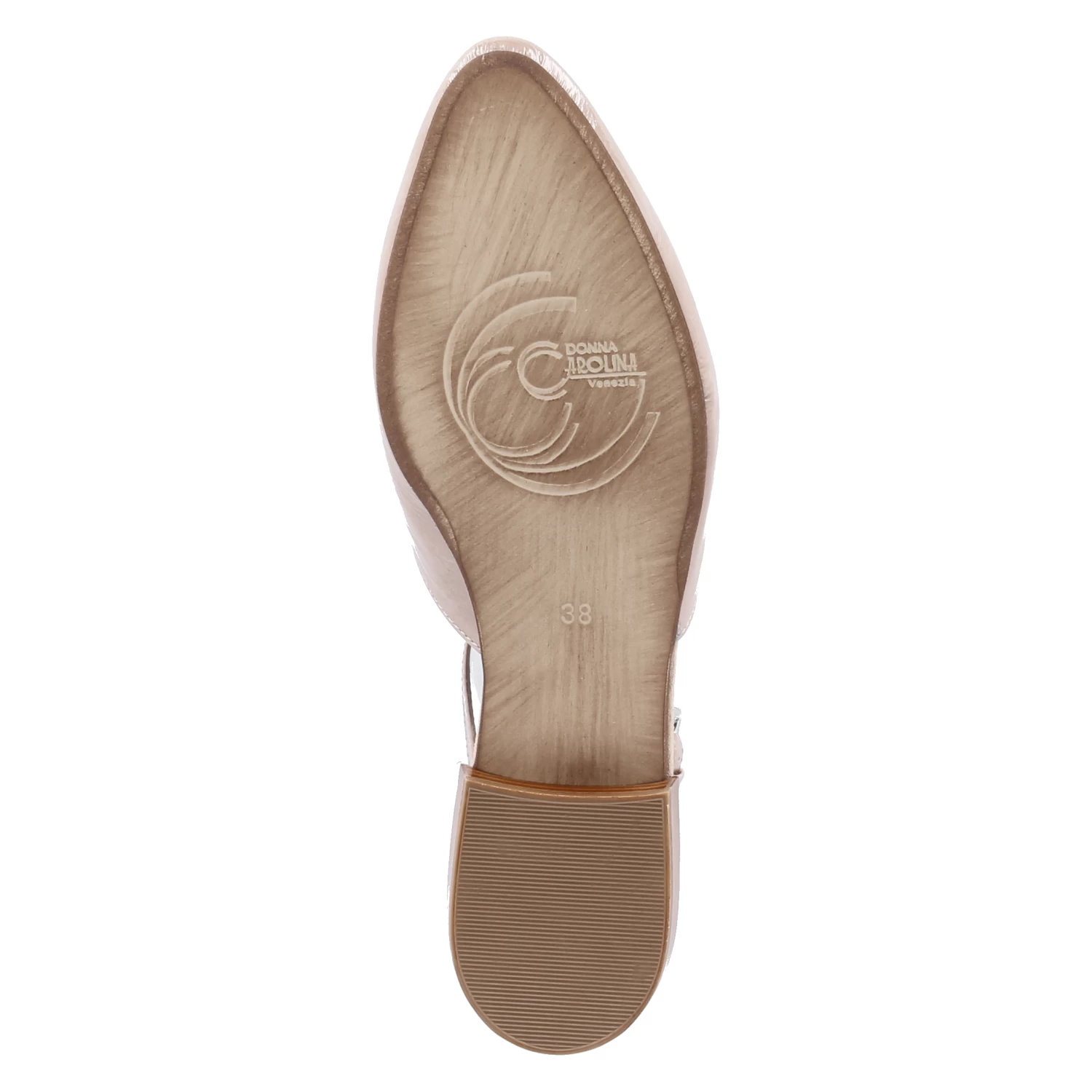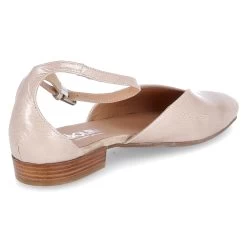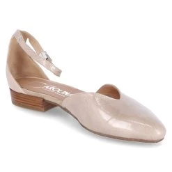 Donna Carolina Damen Ballerinas/ Riemchenballerinas CRIS Beige Lackleder – elegantes Design – Knöchelriemen mit Dornverschluss – verstärkte Ferse – leicht gepolsterte Lederdecksohle – flexible, rutschhemmende Laufsohle