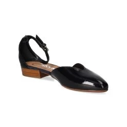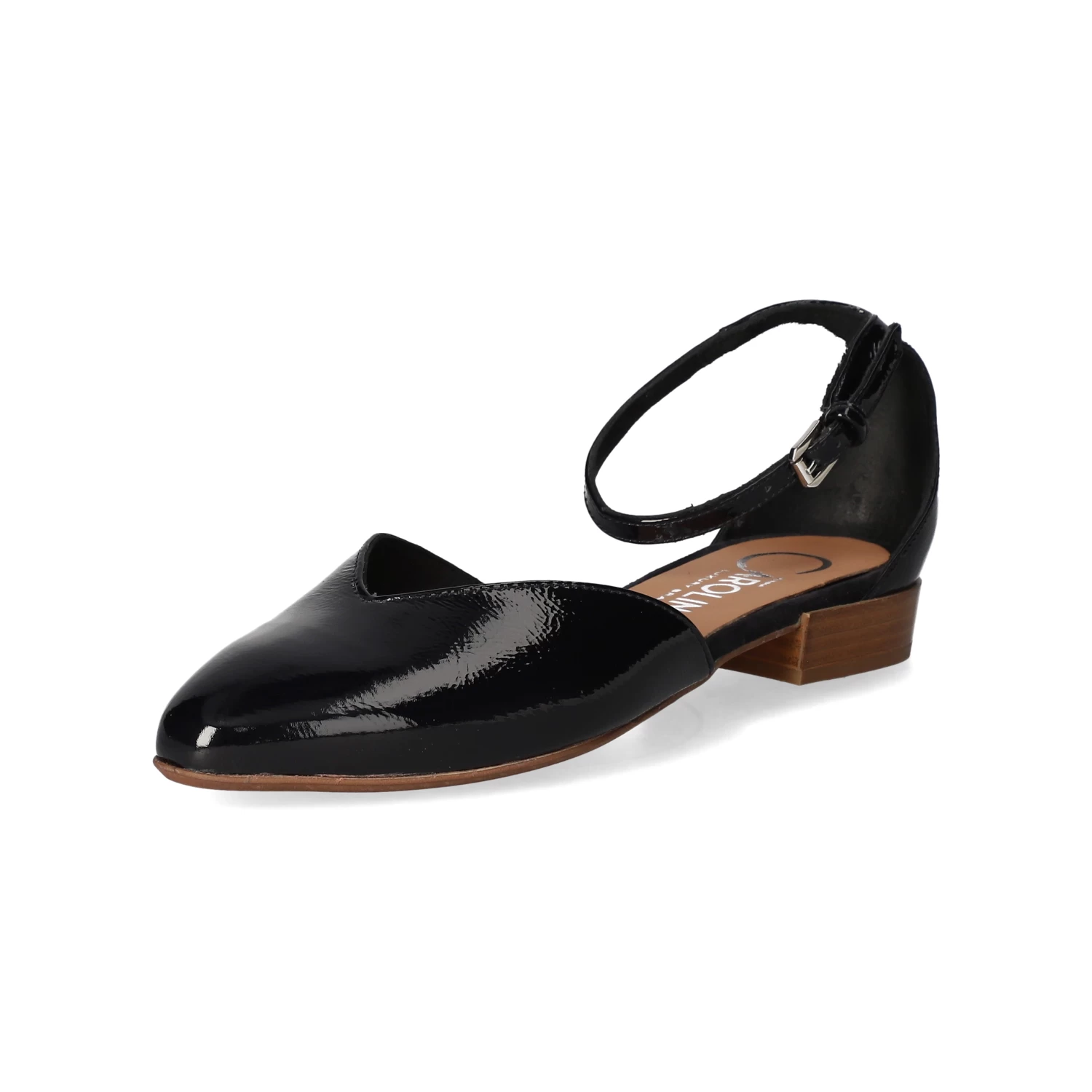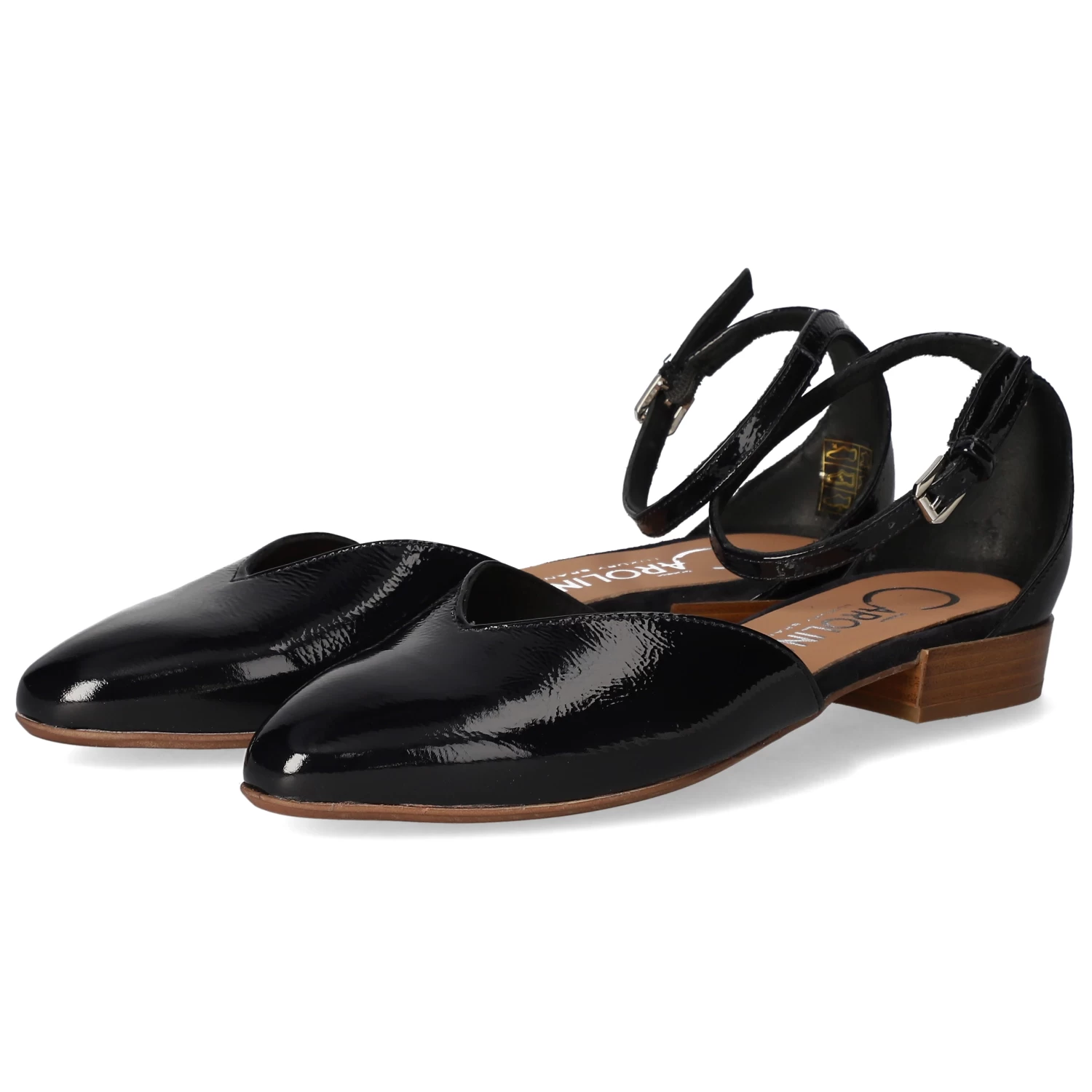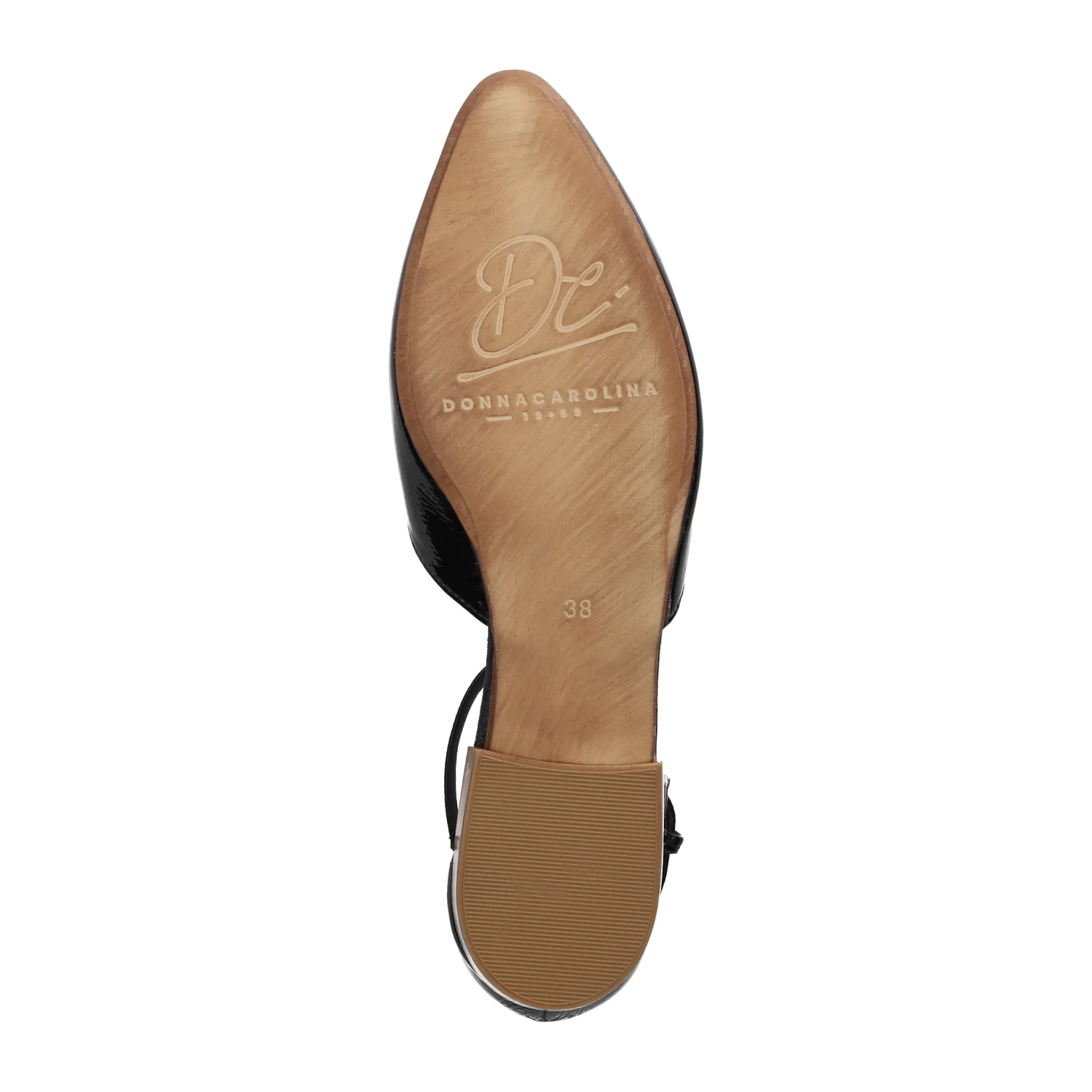 Donna Carolina Damen Ballerinas/ Riemchenballerinas CRIS Blau Lackleder – elegantes Design – Knöchelriemen mit Dornverschluss – verstärkte Ferse – leicht gepolsterte Lederdecksohle – flexible, rutschhemmende Laufsohle