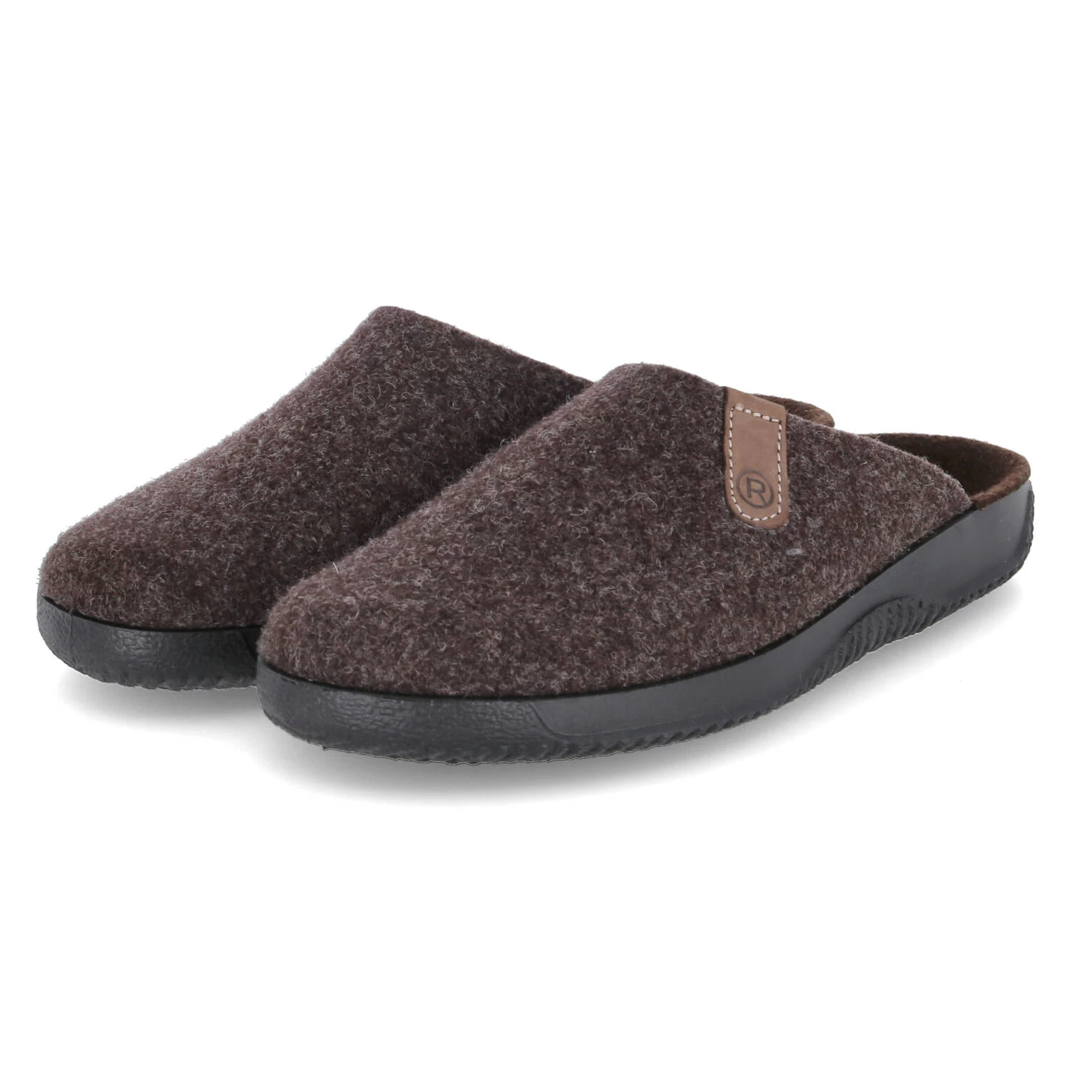 Rohde Herren Hausschuhe/ Pantoffeln SOLTAU Braun Filz – Markenpatch – leicht vorgeformtes, weiches TieffuĂźbett – flexible, rutschhemmende Laufsohle