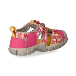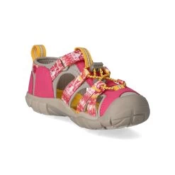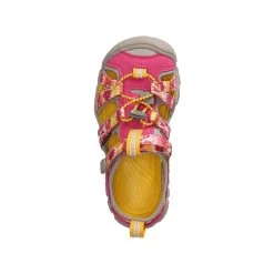 Keen Mädchen Outdoor Sandalen/ Sandalen Gelb/ Pink Textil-Synthetik-Mix – geschlossener Zehenbereich – Teile in modernem Batikmuster – Fersenriemen mit Klettverschluss – Schnellverschluss – leicht vorgeformtes TieffuĂźbett – flexible, rutschhemmende Profilsohle