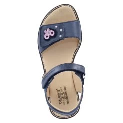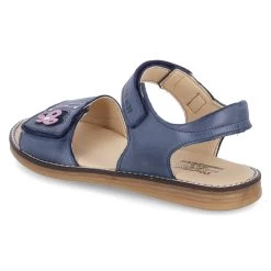Däumling Mädchen Sandalen VERONIKA Blau Glattleder – zwei Riemen mit Klettverschluss – Fersenpolster – gepolsterte Lederdecksohle – flexible, rutschhemmende Laufsohle – rosa Schmetterlingsapplikation mit Glitzersteinen