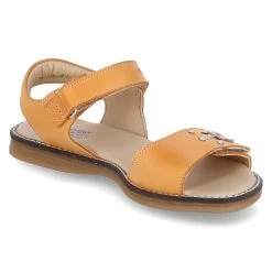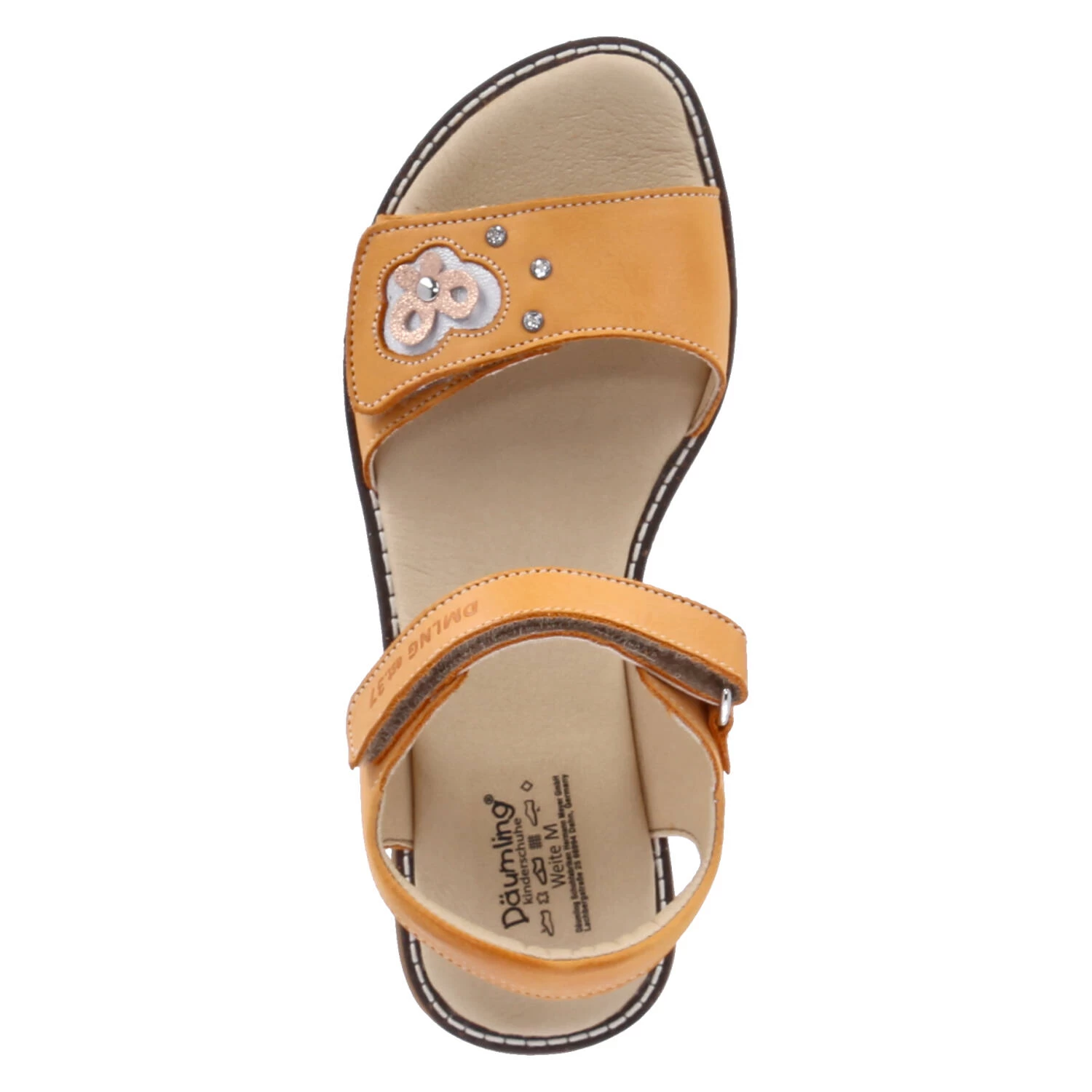 Däumling Mädchen Sandalen VERONIKA Orange Glattleder – zwei Riemen mit Klettverschluss – Fersenpolster – gepolsterte Lederdecksohle – flexible, rutschhemmende Laufsohle – Schmetterlingsapplikation mit Glitzersteinen