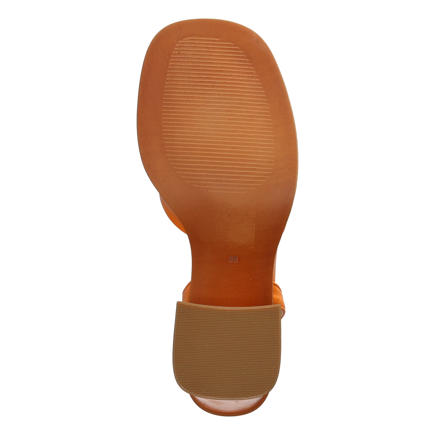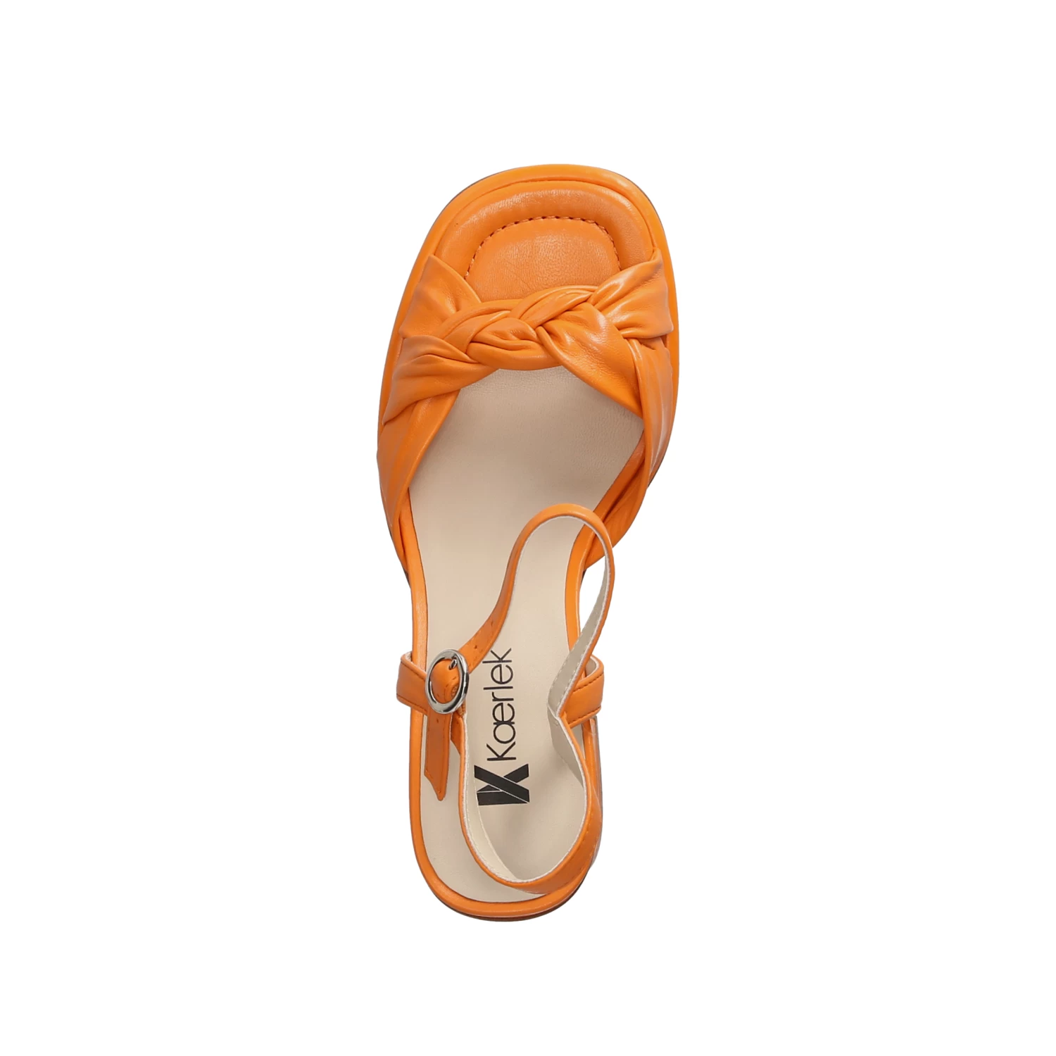 Kaerlek Damen Sandaletten/ Riemchensandaletten PERLA Orange Glattleder – elegantes Design – modisch geflochtene Riemen – Knöchelriemen mit Schnalle und Dornverschluss – gepolsterte Decksohle – flexible, rutschhemmende Laufsohle mit leichtem Profil – stabiler Blockabsatz