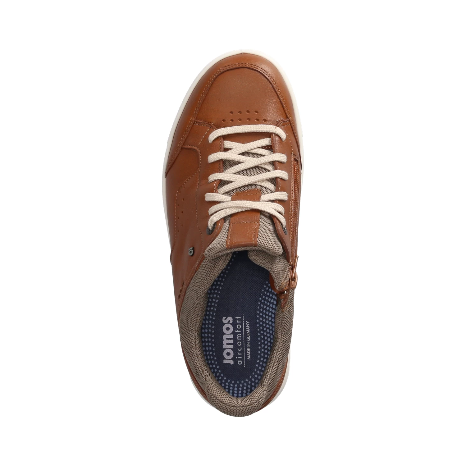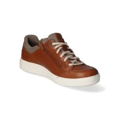 Jomos Herren Schnürschuhe/ sportliche Halbschuhe Braun Leder-Textil-Mix – sportliches Design – helle Highlights – Schnürung und Reißverschluss – verstärkter Zehen- und Fersenbereich – gepolsterter Einstieg – leichtes Textilfutter – gepolsterte Wechseldecksohle – flexible, rutschhemmende Profilsohle