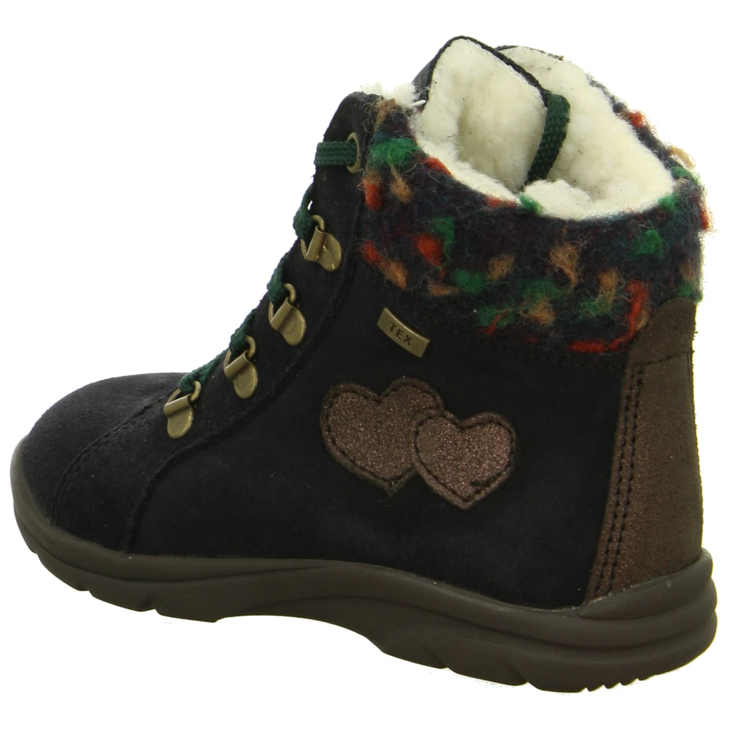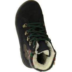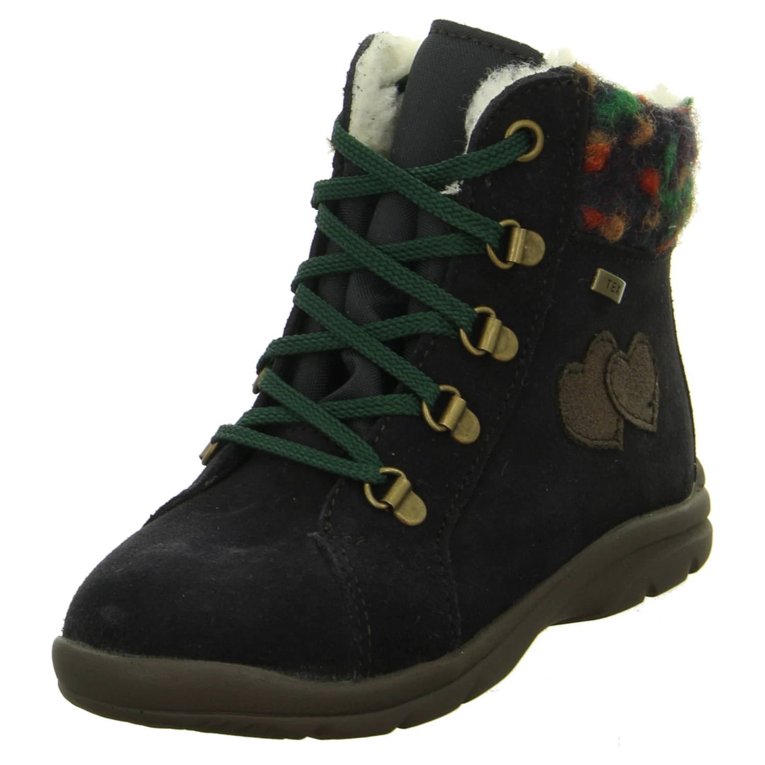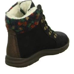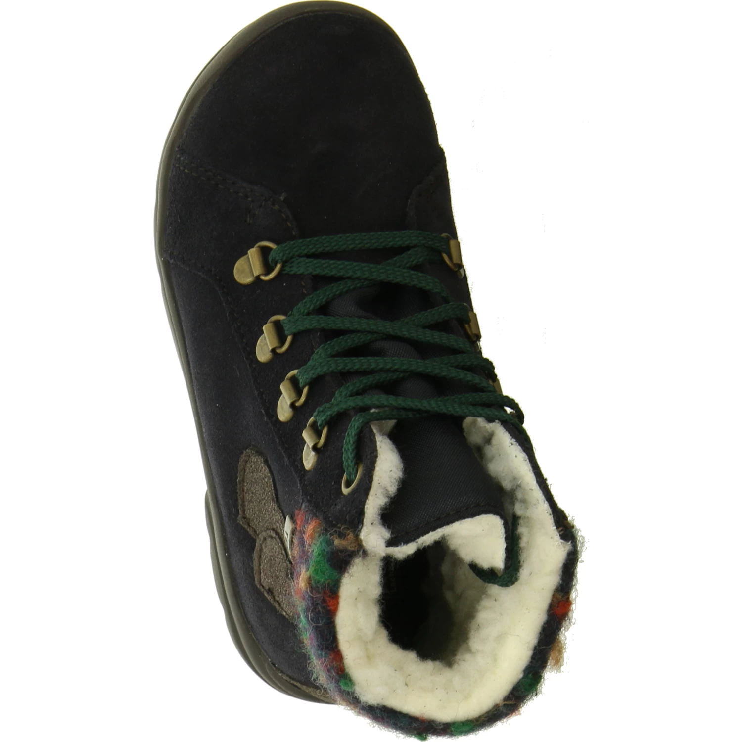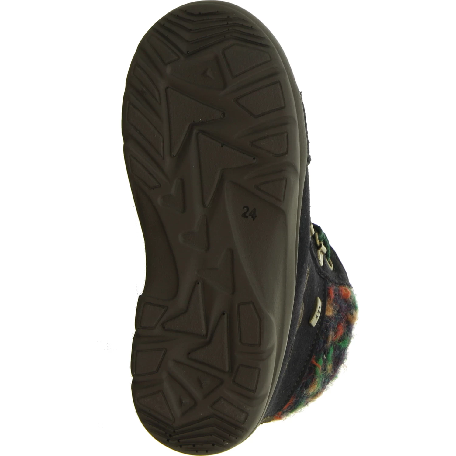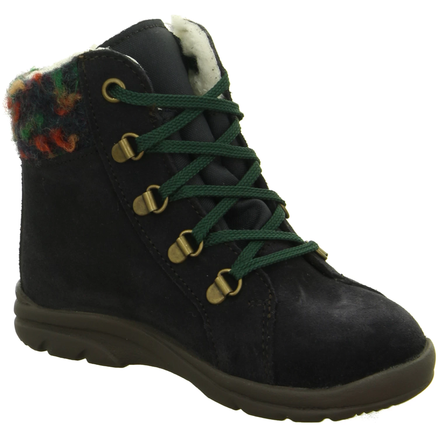 Däumling Kinder Stiefeletten/ Schnürstiefeletten Blau Rauleder – Schnürungen in grün – Warmfutter – gepolsterter Einstieg aus buntem Filz – verstärkter Zehen- und Fersenbereich – flexible Laufsohle mit rutschhemmenden Eigenschaften