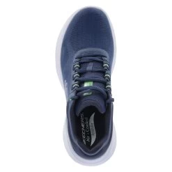 Skechers Herren SchnĂĽrschuhe/ Low Sneaker INFINITY Blau Textil-Synthetik-Mix – vegan – verstärkter Zehen- und Fersenbereich – Teile in luftigem Mesh – gepolsterter Einstieg – gelabelt – gepolstertes Memory Foam FuĂźbett – flexible, rutschhemmende Laufsohle
