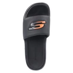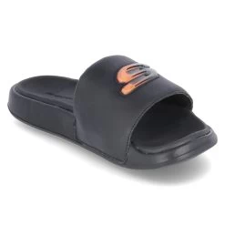Skechers Herren Badelatschen UTOPO Blau Synthetik – weich gepolsterter Riemen mit groĂźem Frontlogo – weicher Riemen leicht vorgeformtes TieffuĂźbett – gepolsterte Decksohle – flexible Laufsohle – Maschinen waschbar