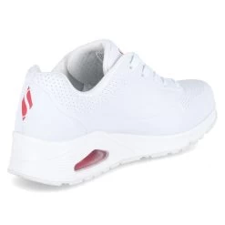 Skechers Damen sportliche Halbschuhe/ Low Sneaker DRIPPING IN LOVE WeiĂź Synthetik – SchnĂĽrung – zum Teil gelocht – seitlicher Herzenprint in Rot – sportliche Prägungen – leicht gepolsterter Einstieg – gepolsterte Decksohle – flexible, rutschhemmende Laufsohle